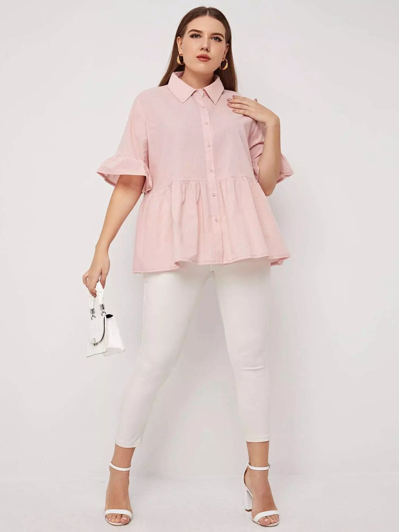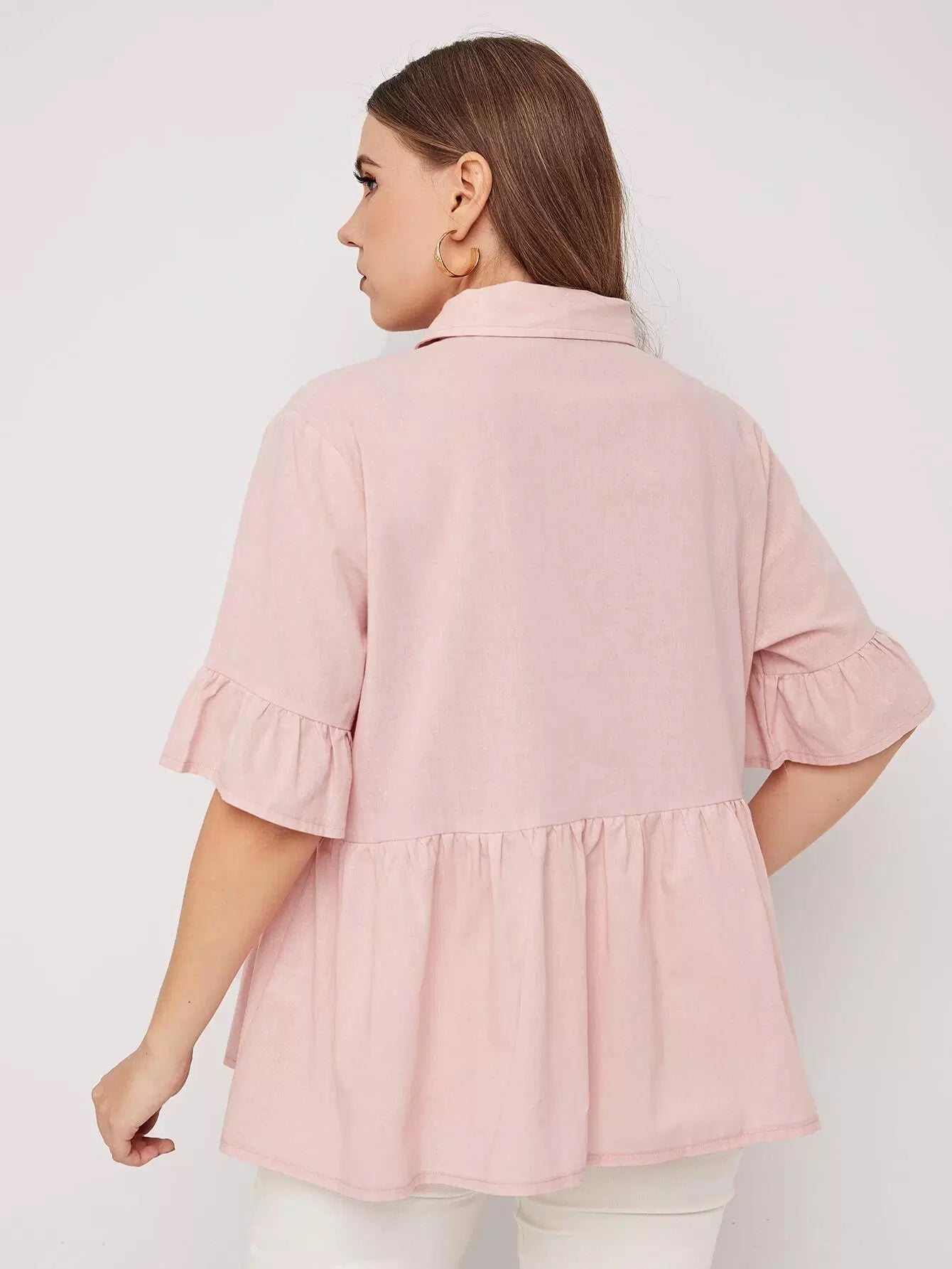 Women - Plus Solid Button Through Babydoll Blouse