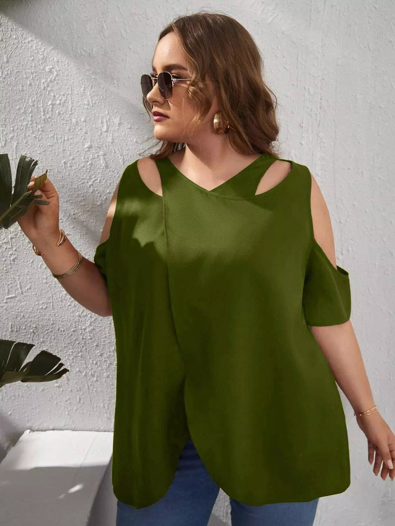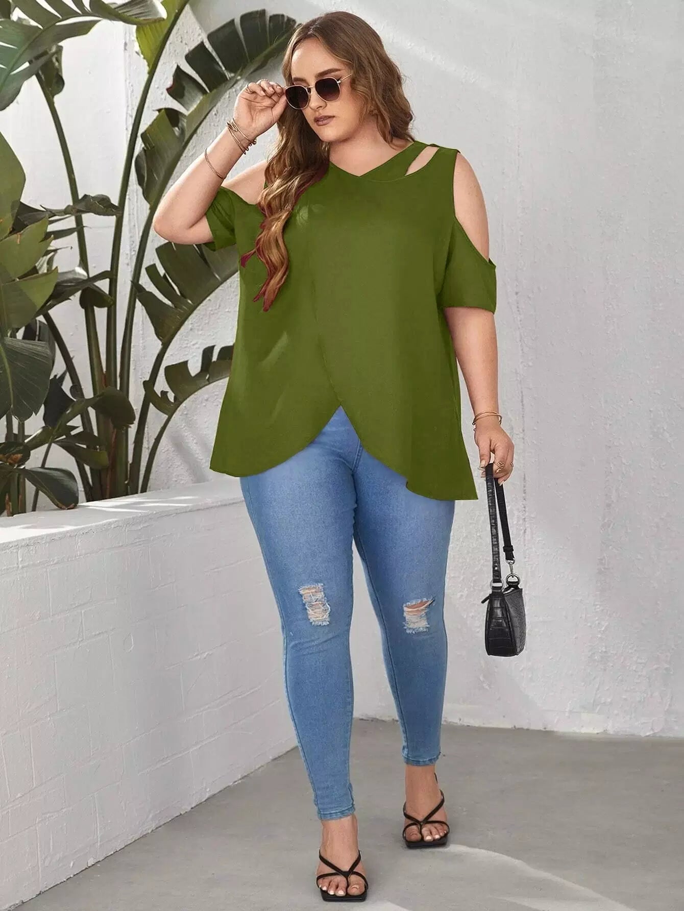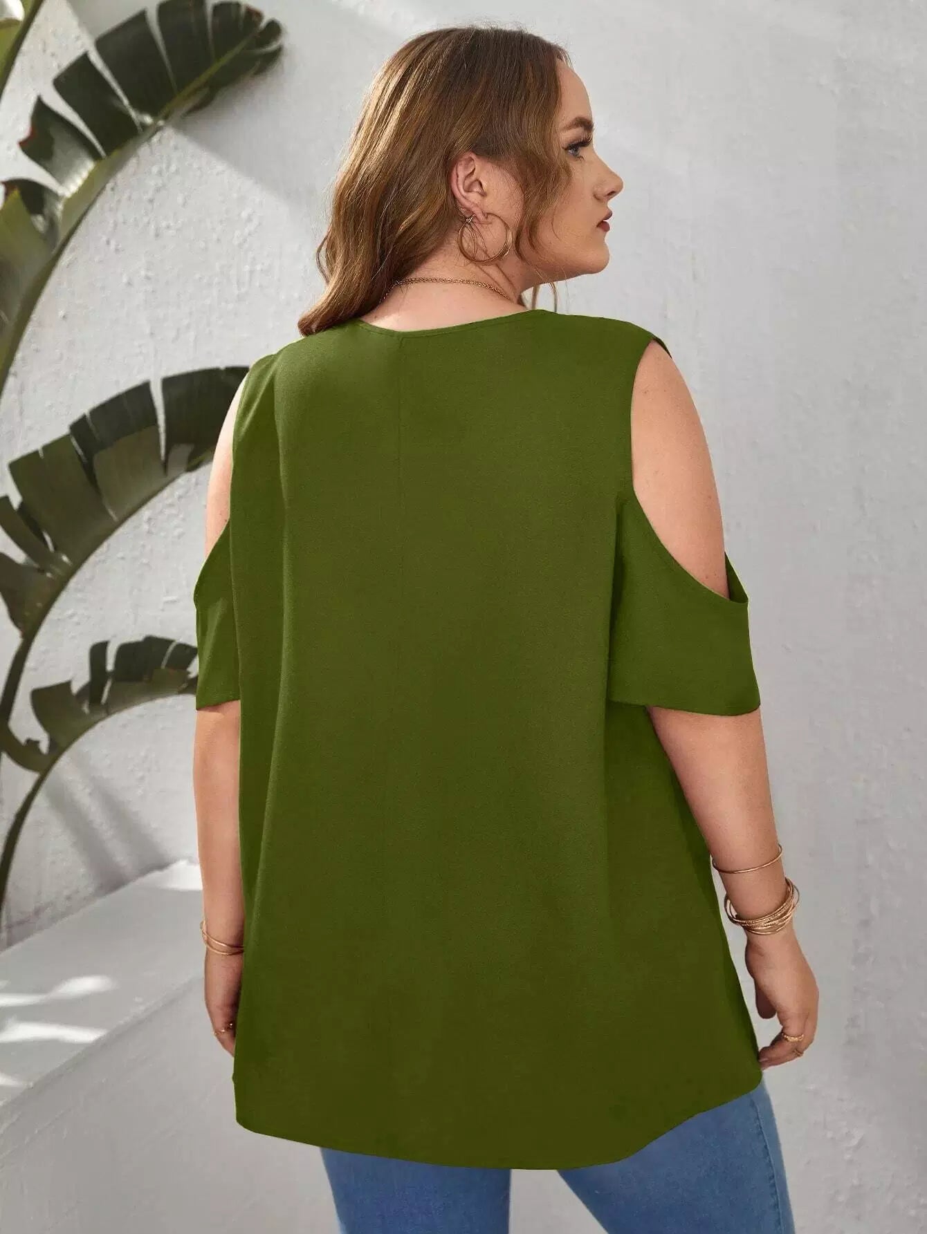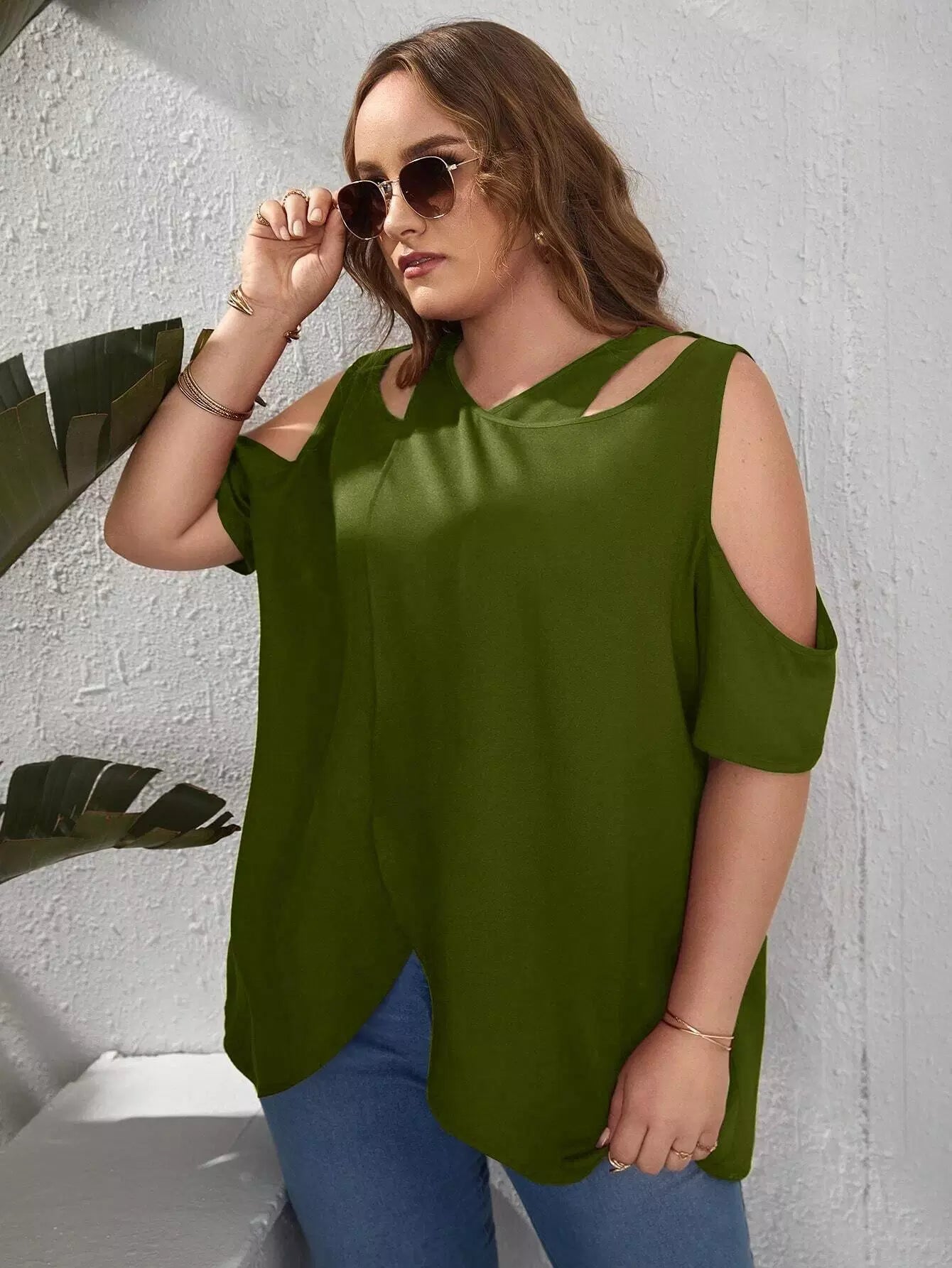 Plus Solid Cold Shoulder Tulip Hem Blouse