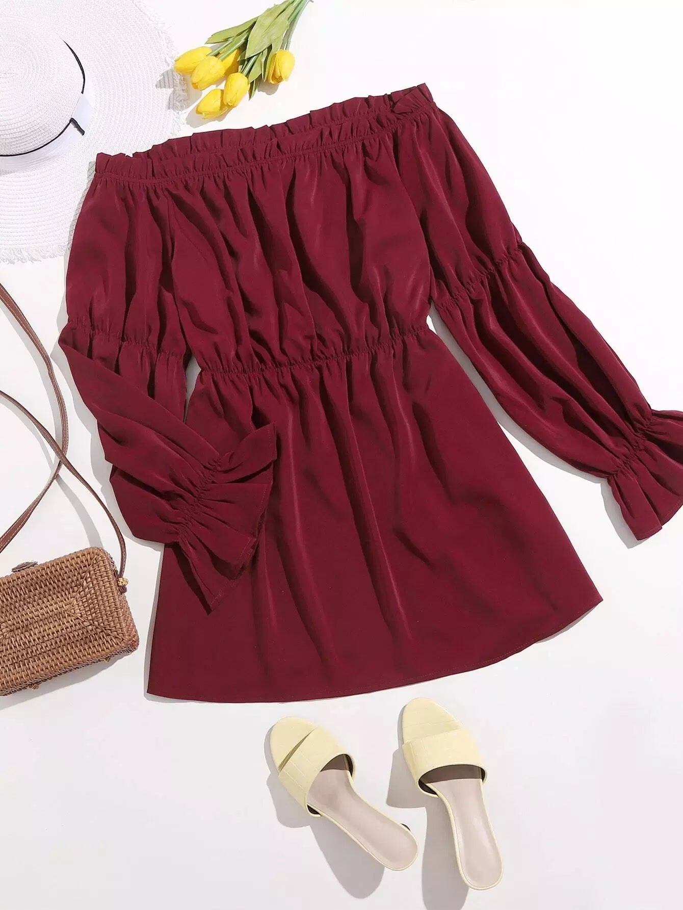 Plus Solid Frill Trim Babydoll Blouse