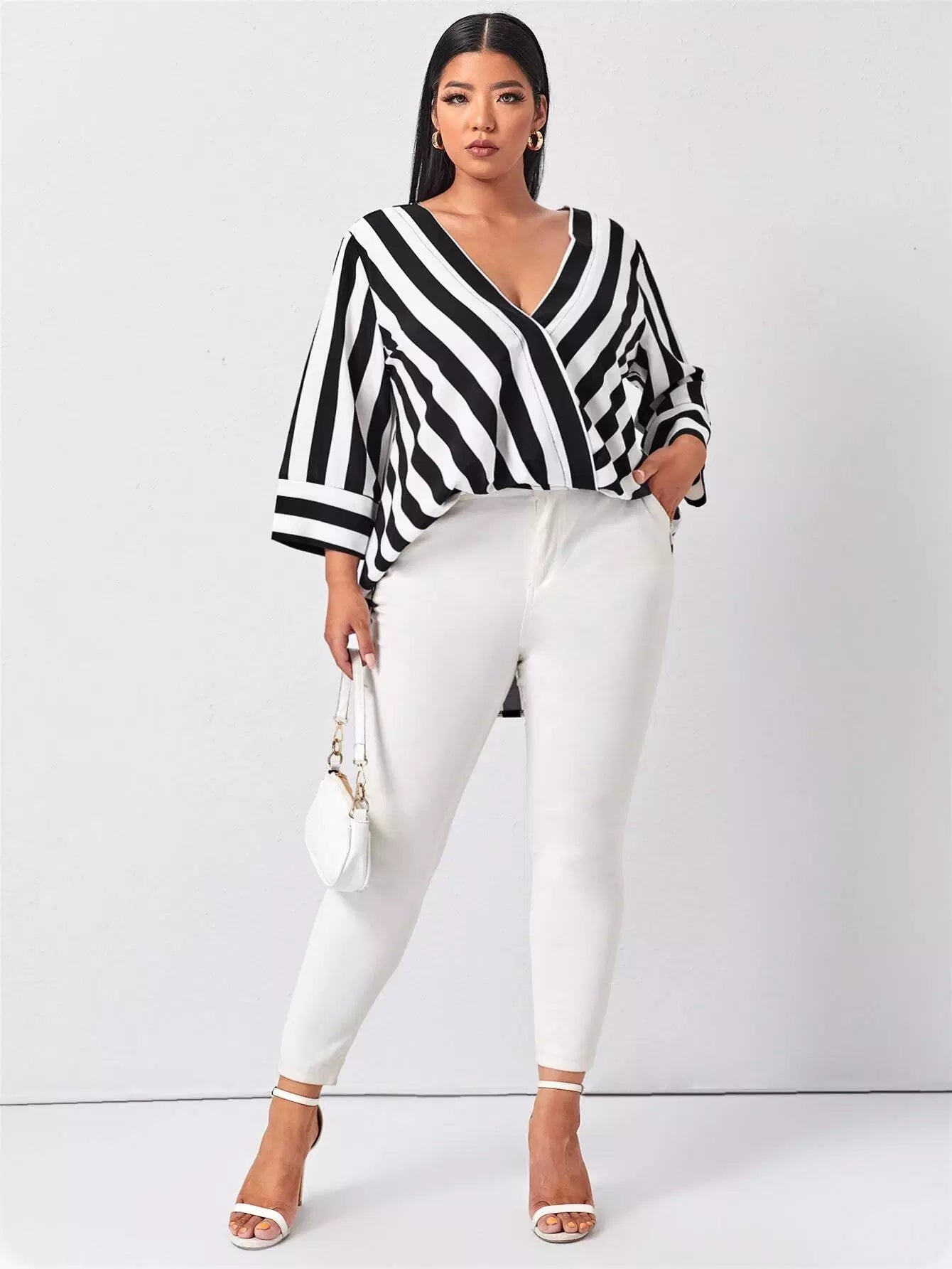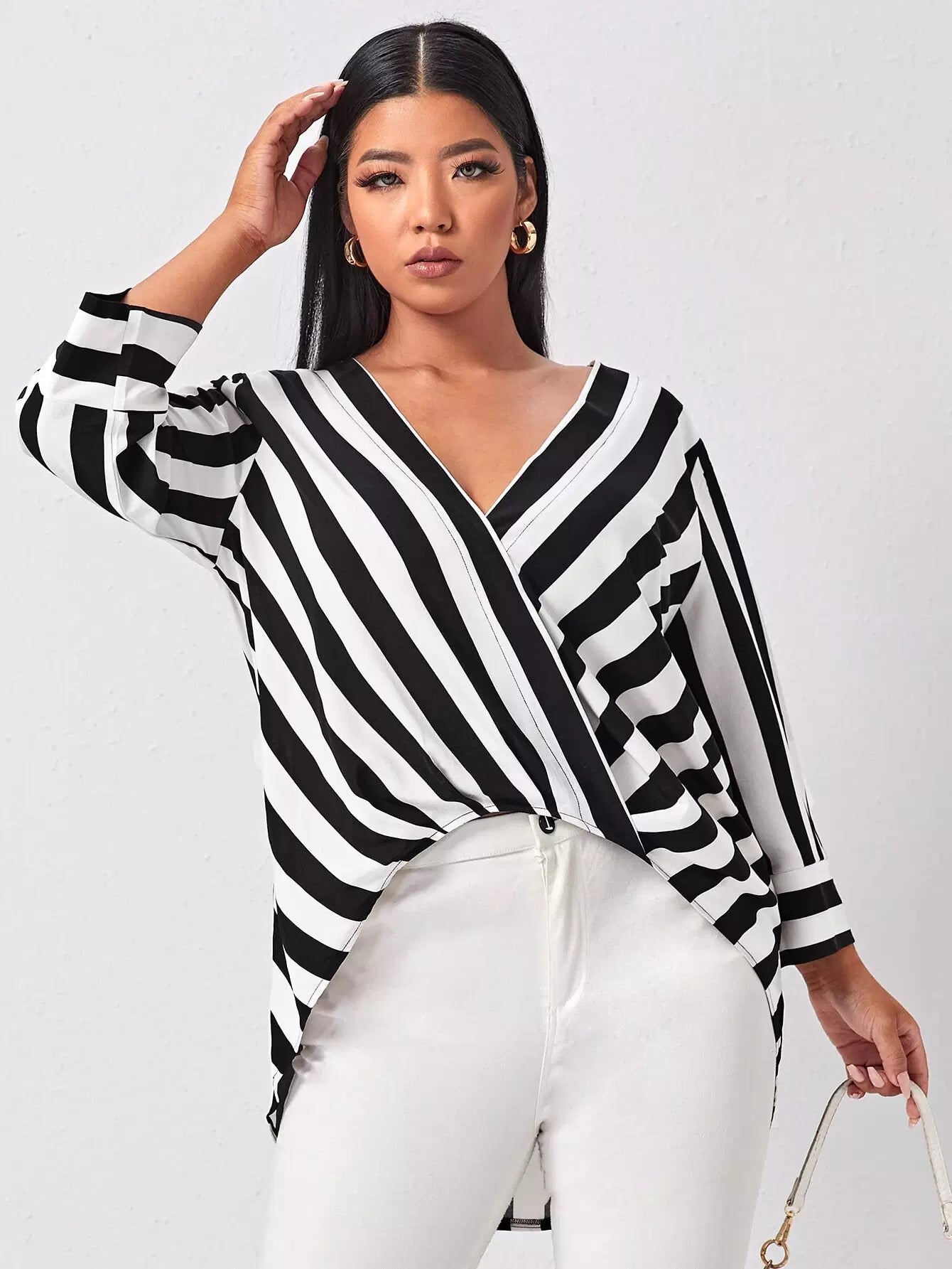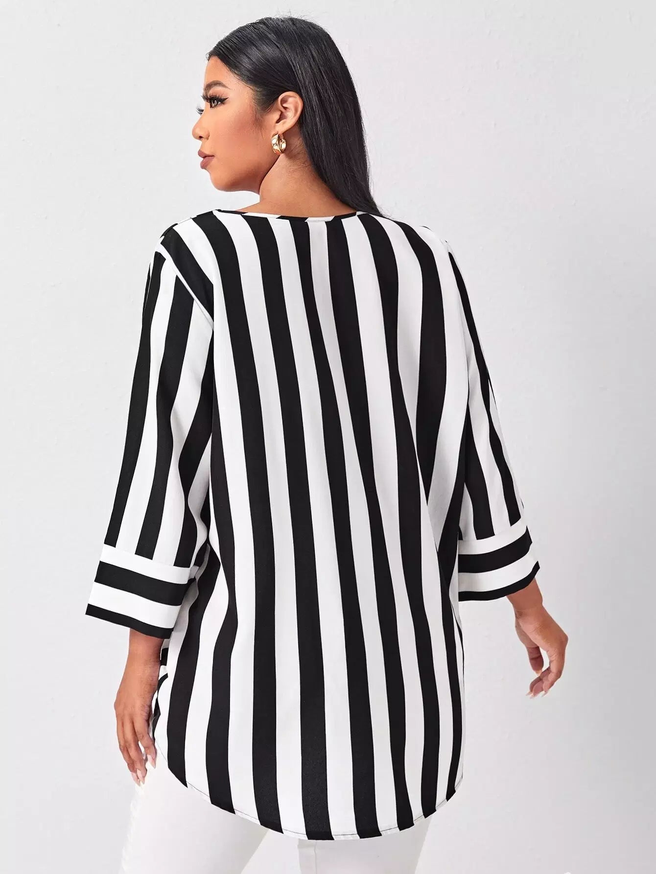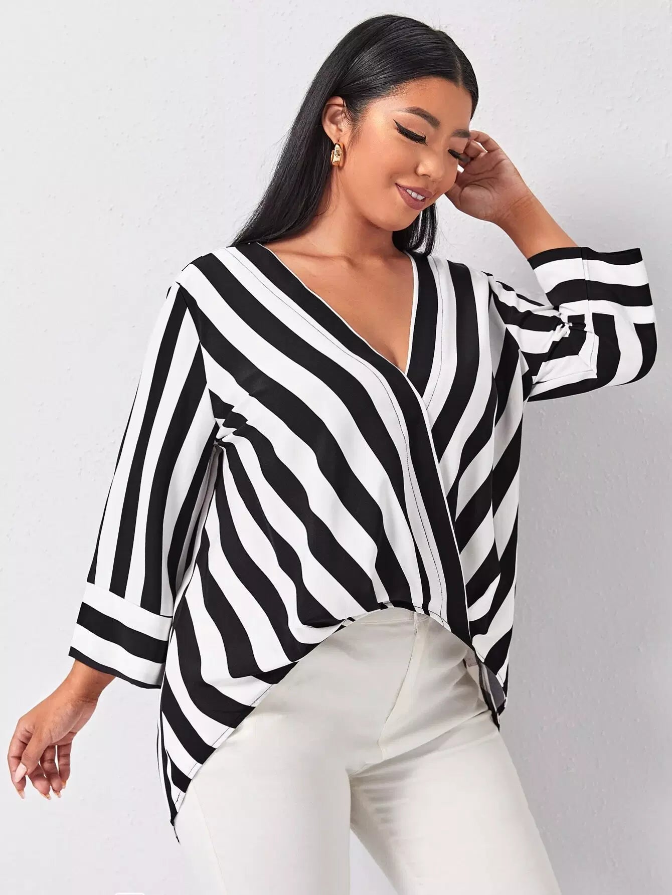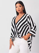 Plus Striped V Neck Blouse