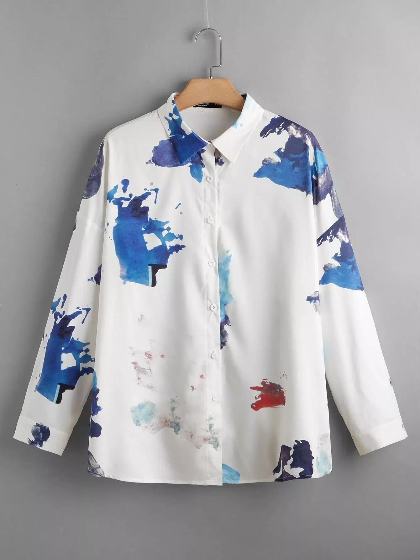 Women - Plus Tie Dye Button Up Drop Shoulder Blouse
