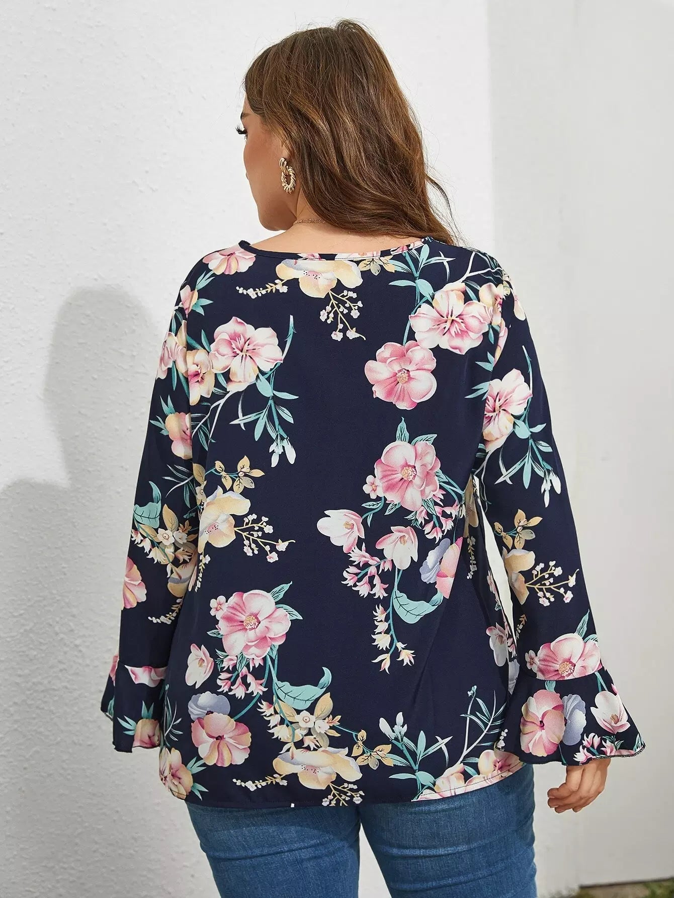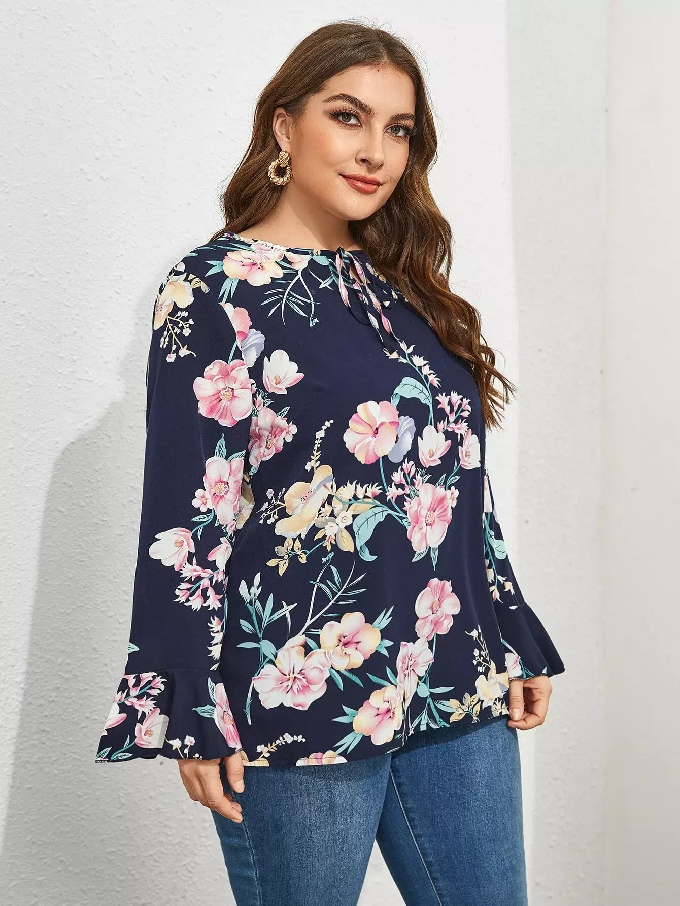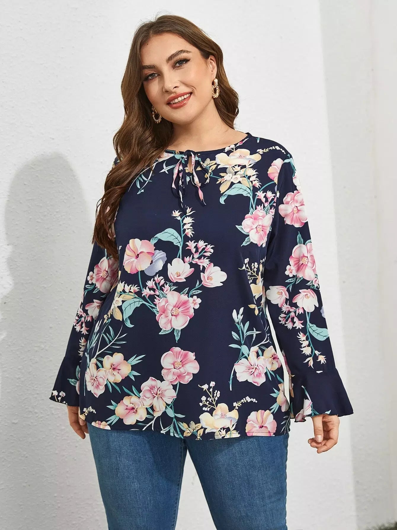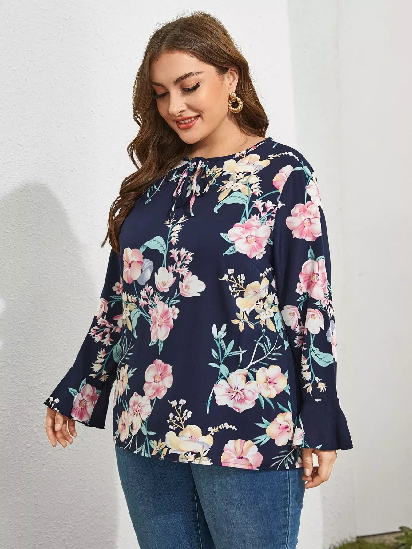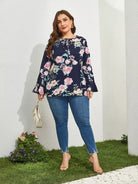 Plus Tie Neck Floral Print Blouse