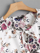 Plus Tie Neck Floral Print Top