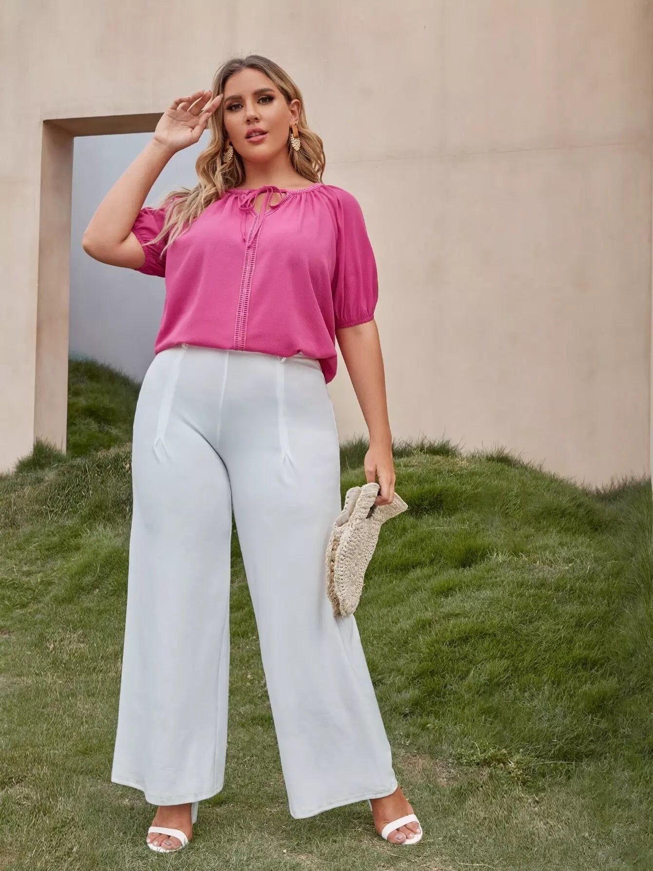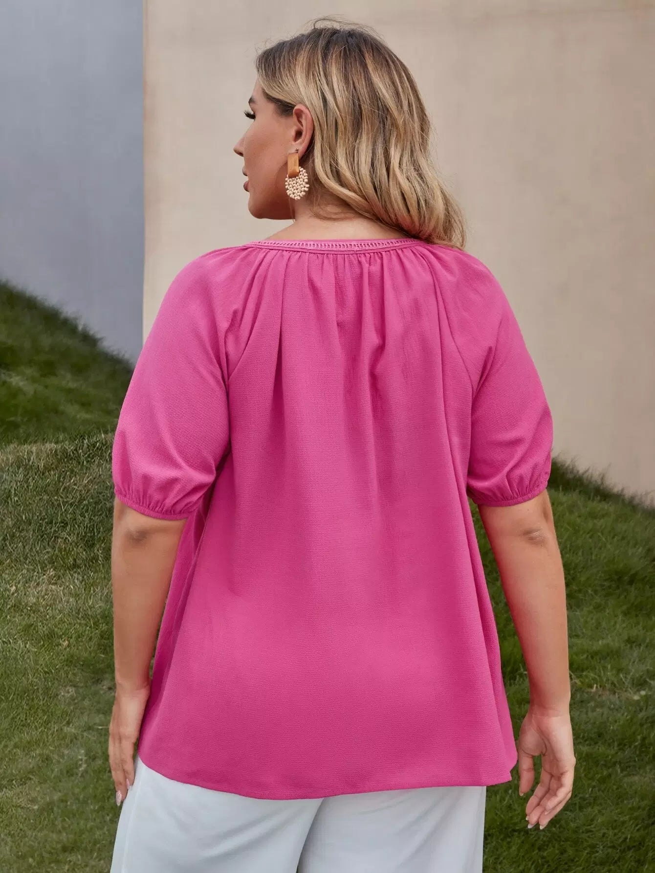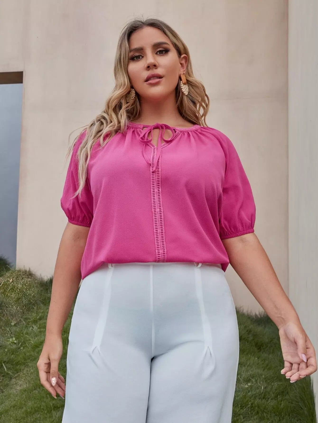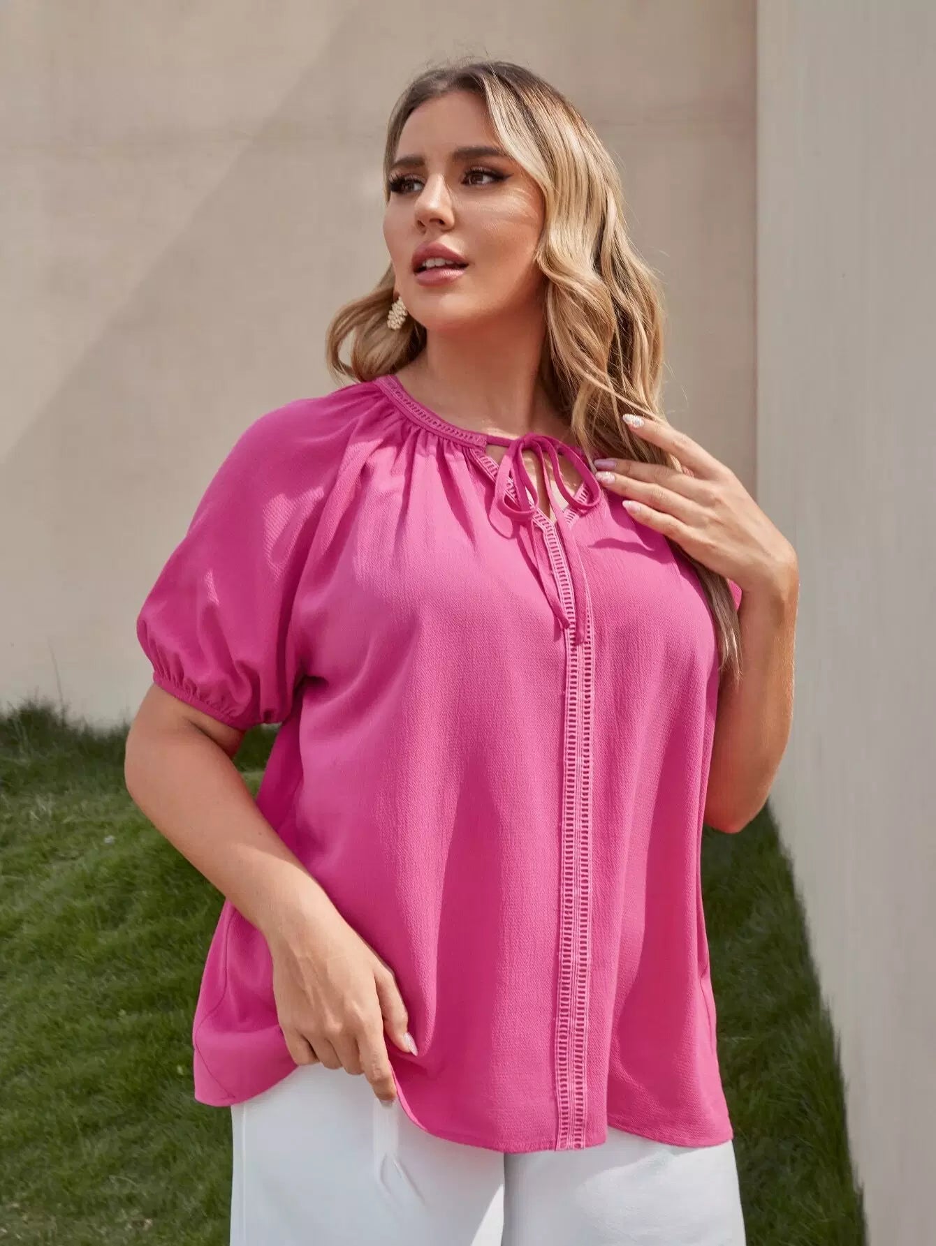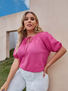 Plus Tie Neck Puff Sleeve Top