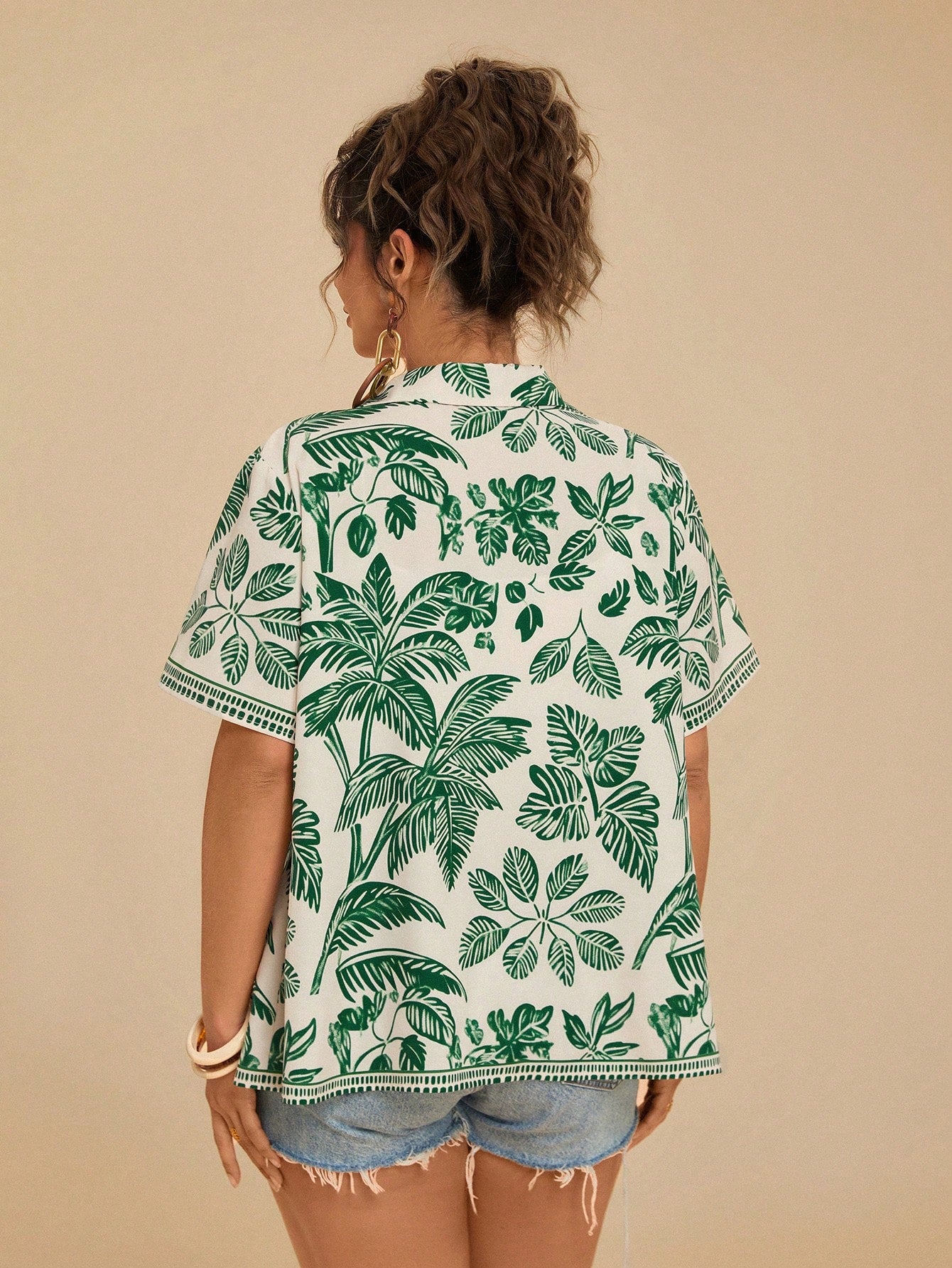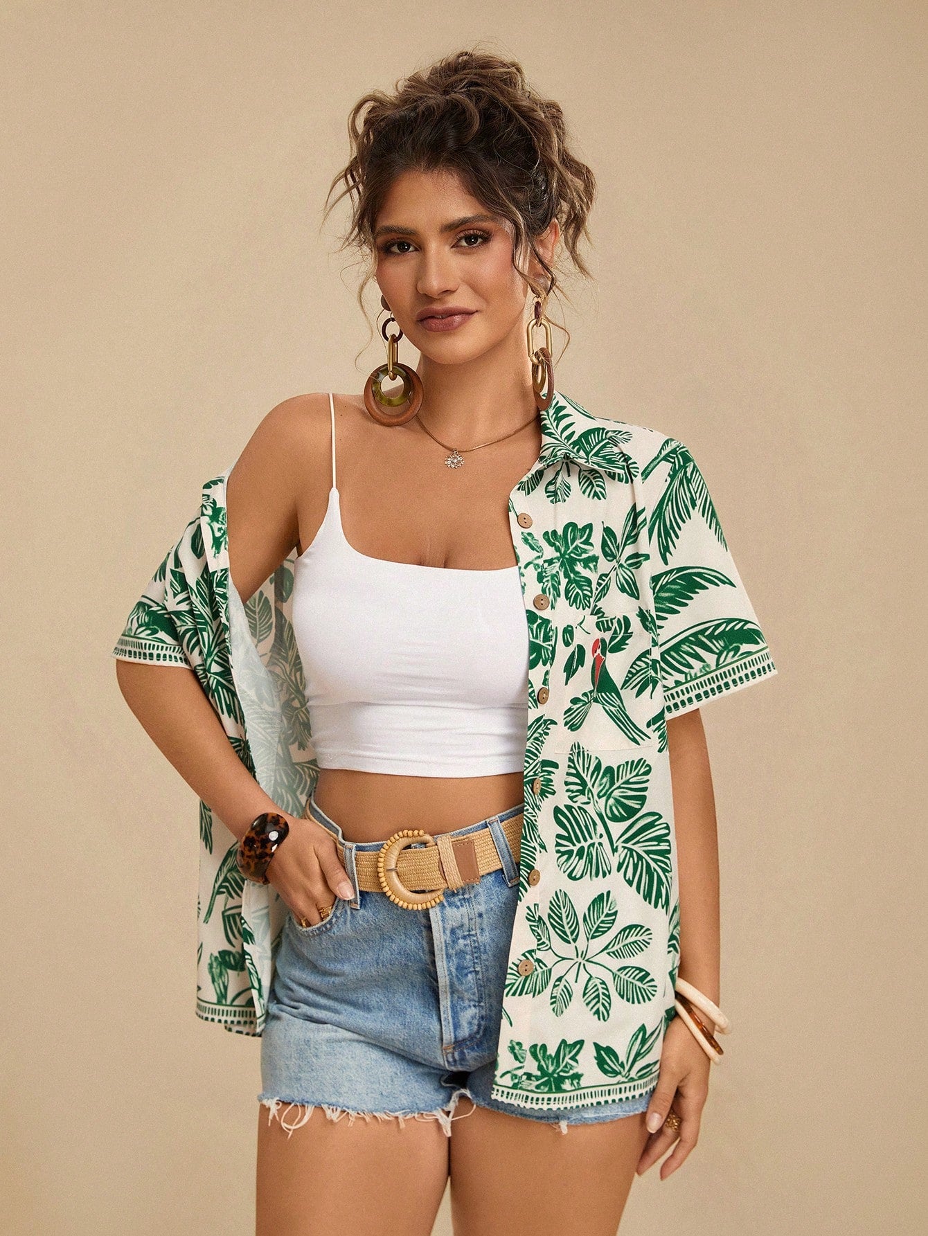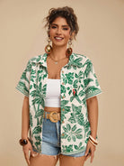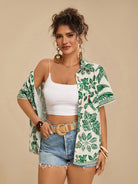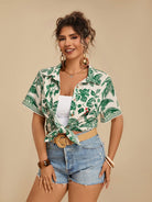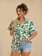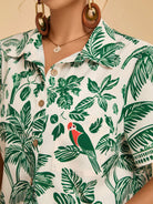Travachic Plus Size Women's Tropical Leaf & Parrot Print Pocket Short Sleeve Casual Beach Shirt