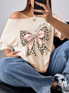 INAWLY Plus Size Women's Butterfly Print Oblique Shoulder Short Sleeve T-Shirt