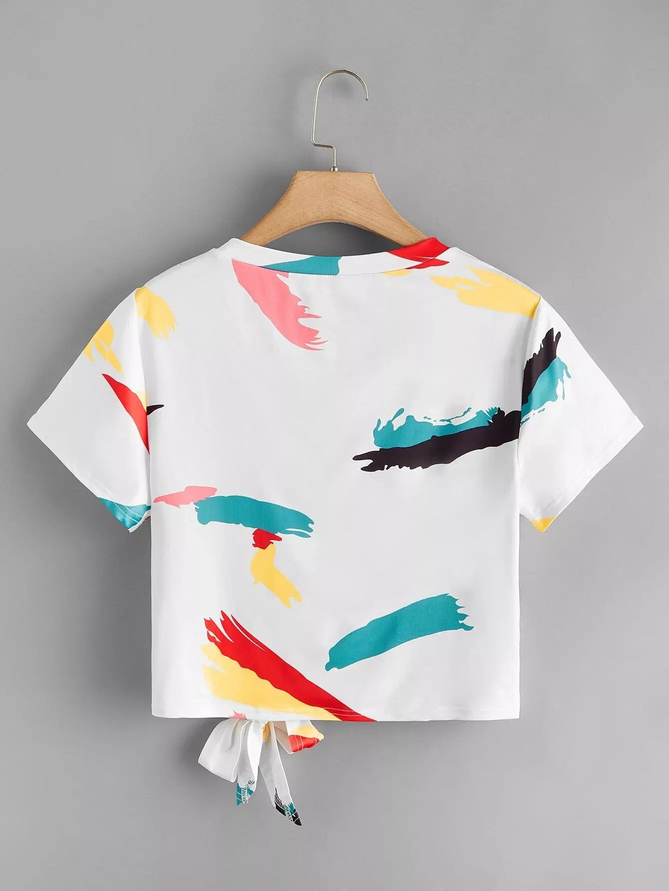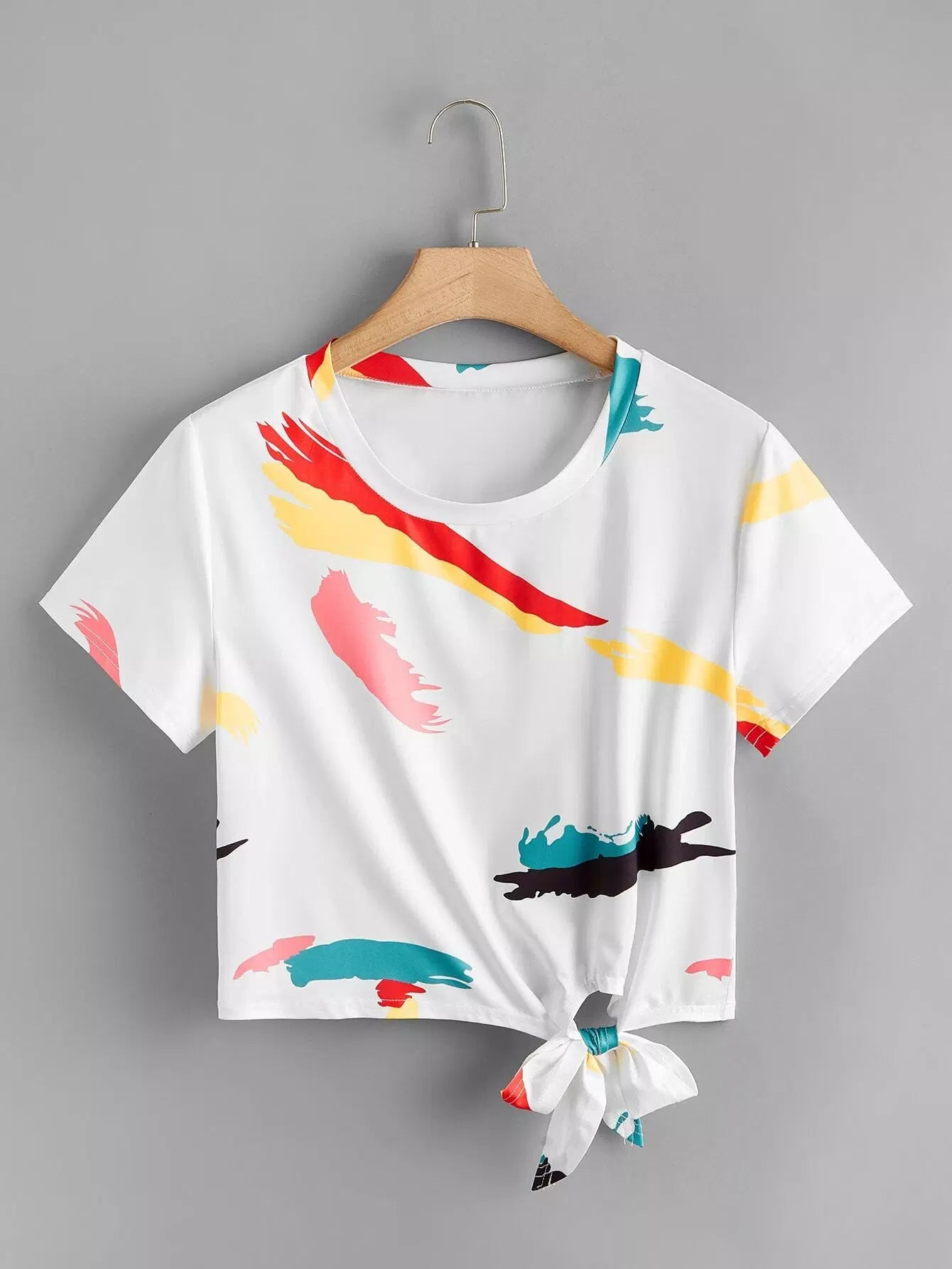 Plus Brush Print Knot Hem Crop Tee