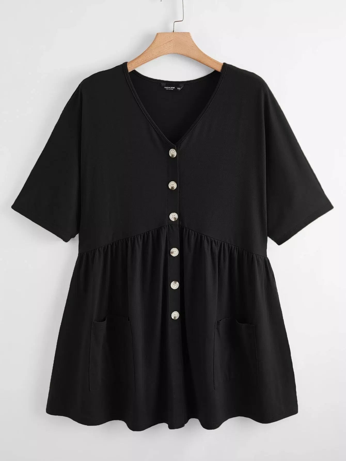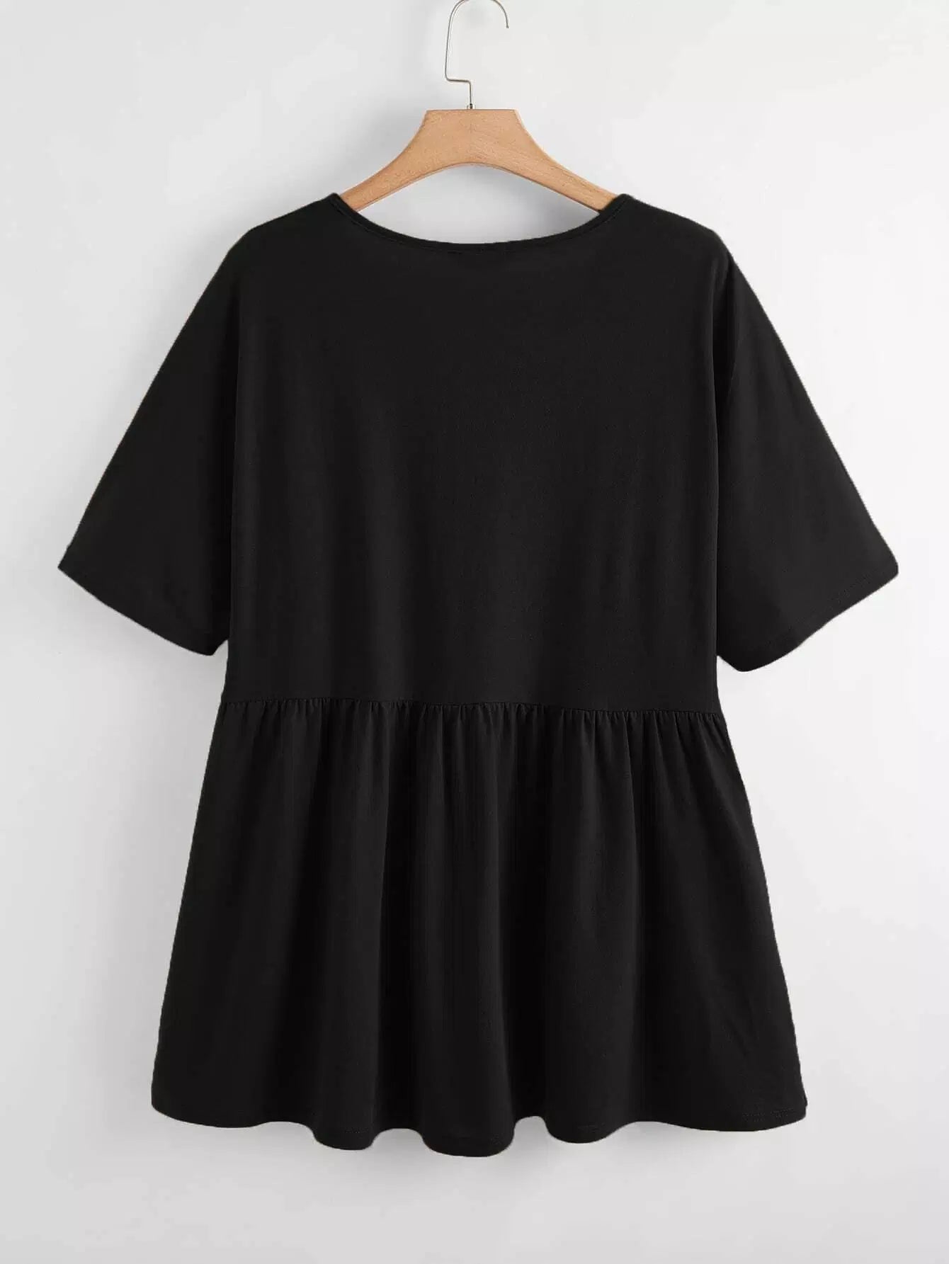 Plus Button Front Ruffle Hem Top
