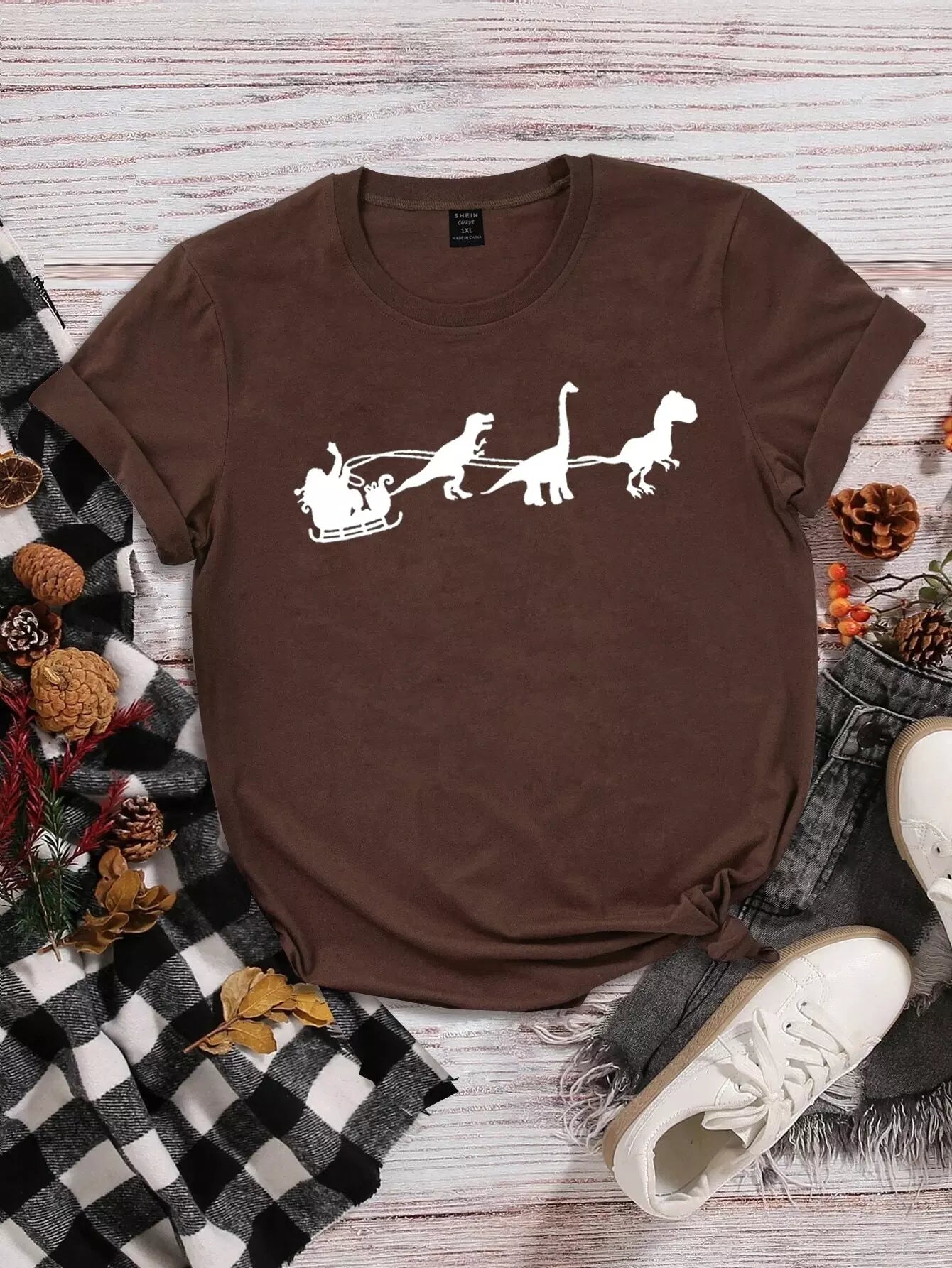 Women - Plus Christmas Dinosaur Print Tee