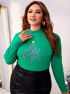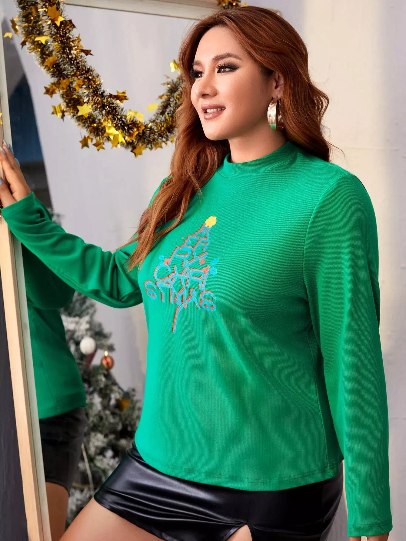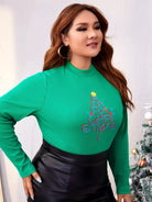 Women - Plus Christmas Graphic Print Mock Neck Tee