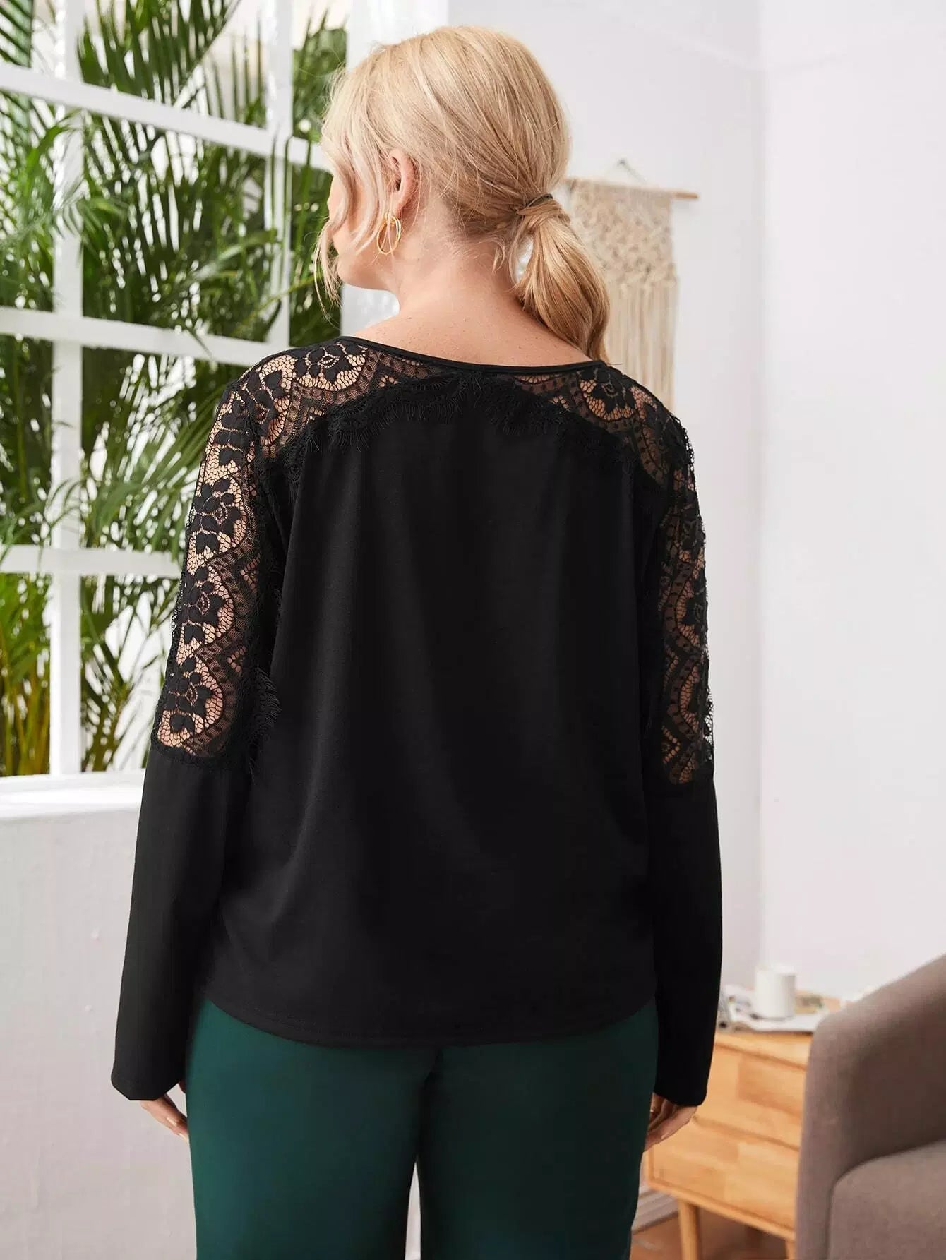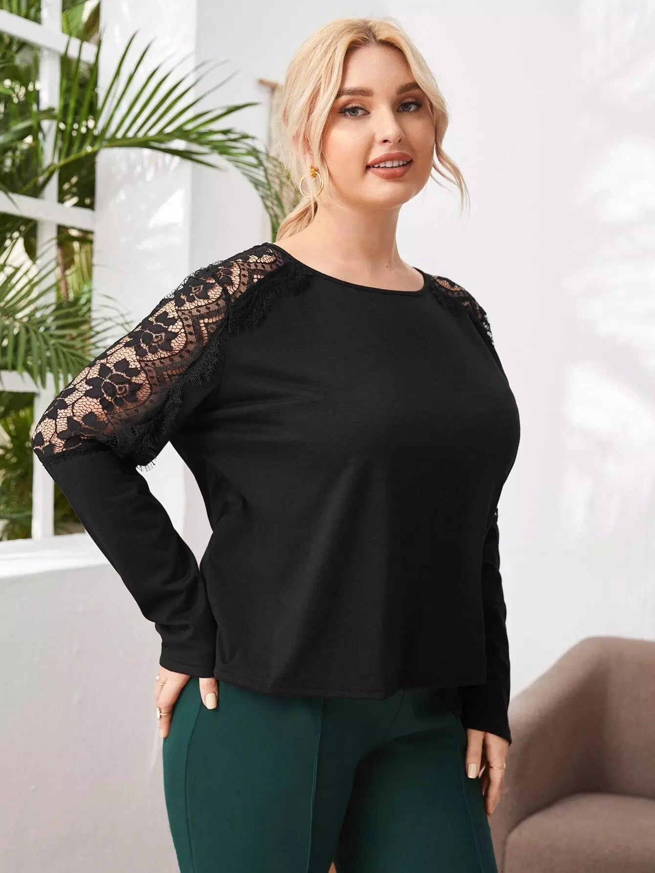 Plus Contrast Lace Solid Tee
