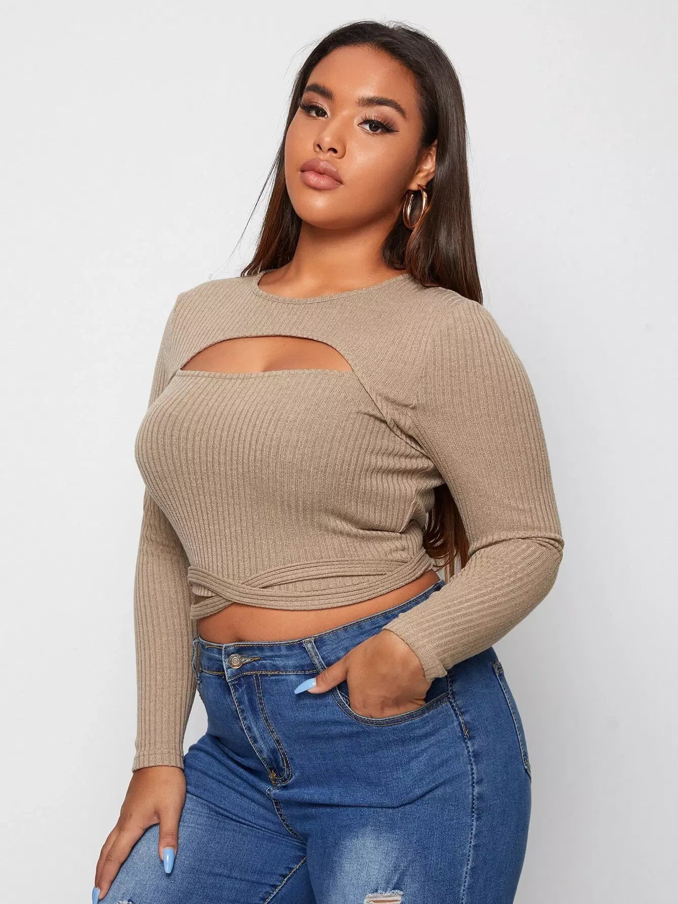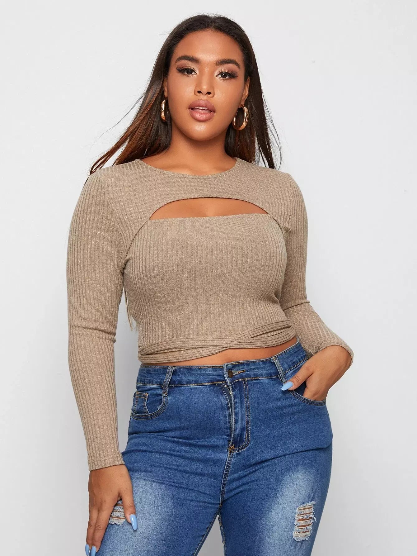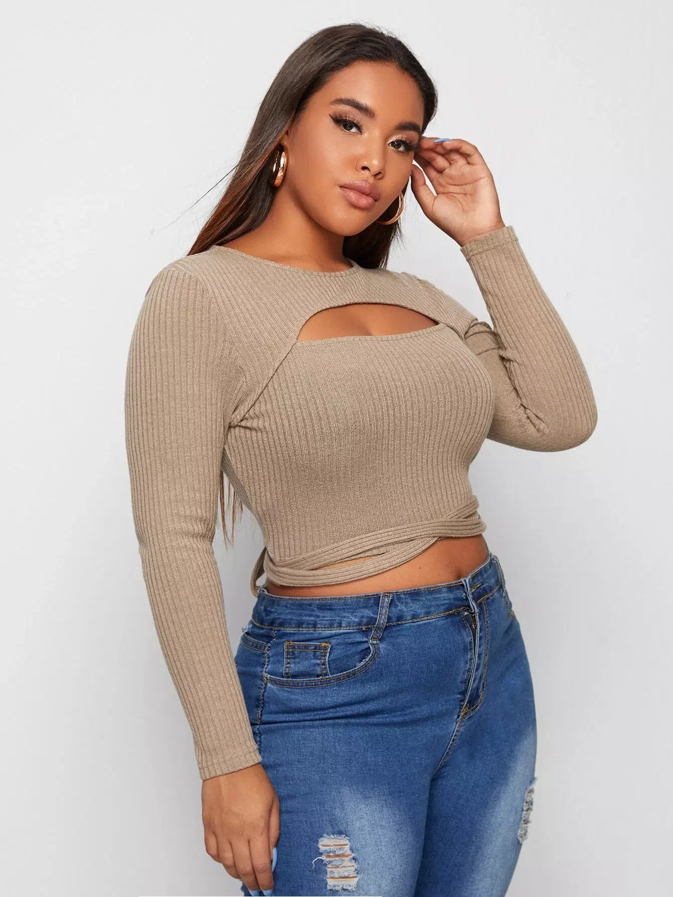 Plus Cutout Detail Crisscross Tie Back Crop Tee