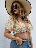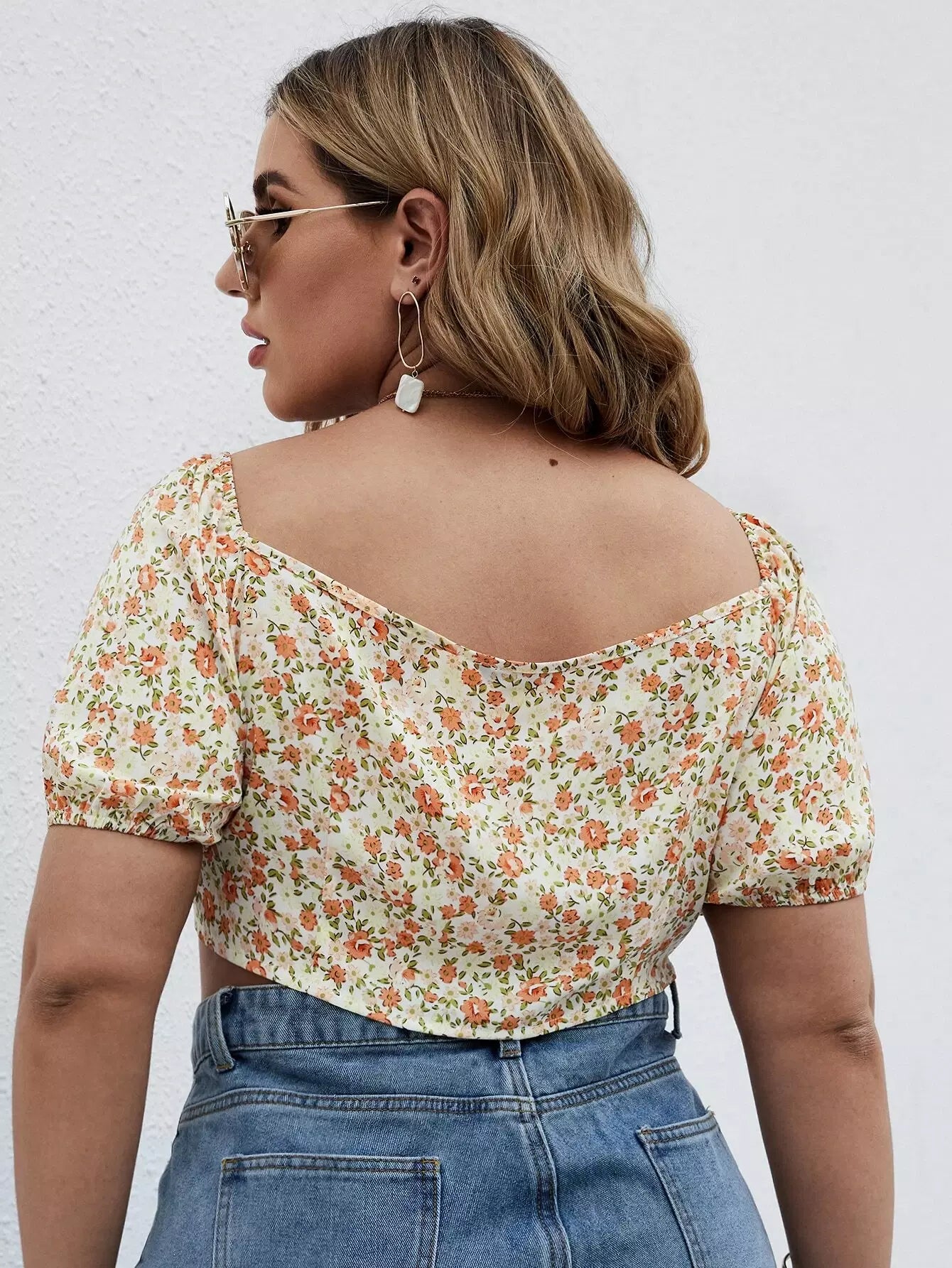 Plus Ditsy Floral Puff Sleeve Crop Top