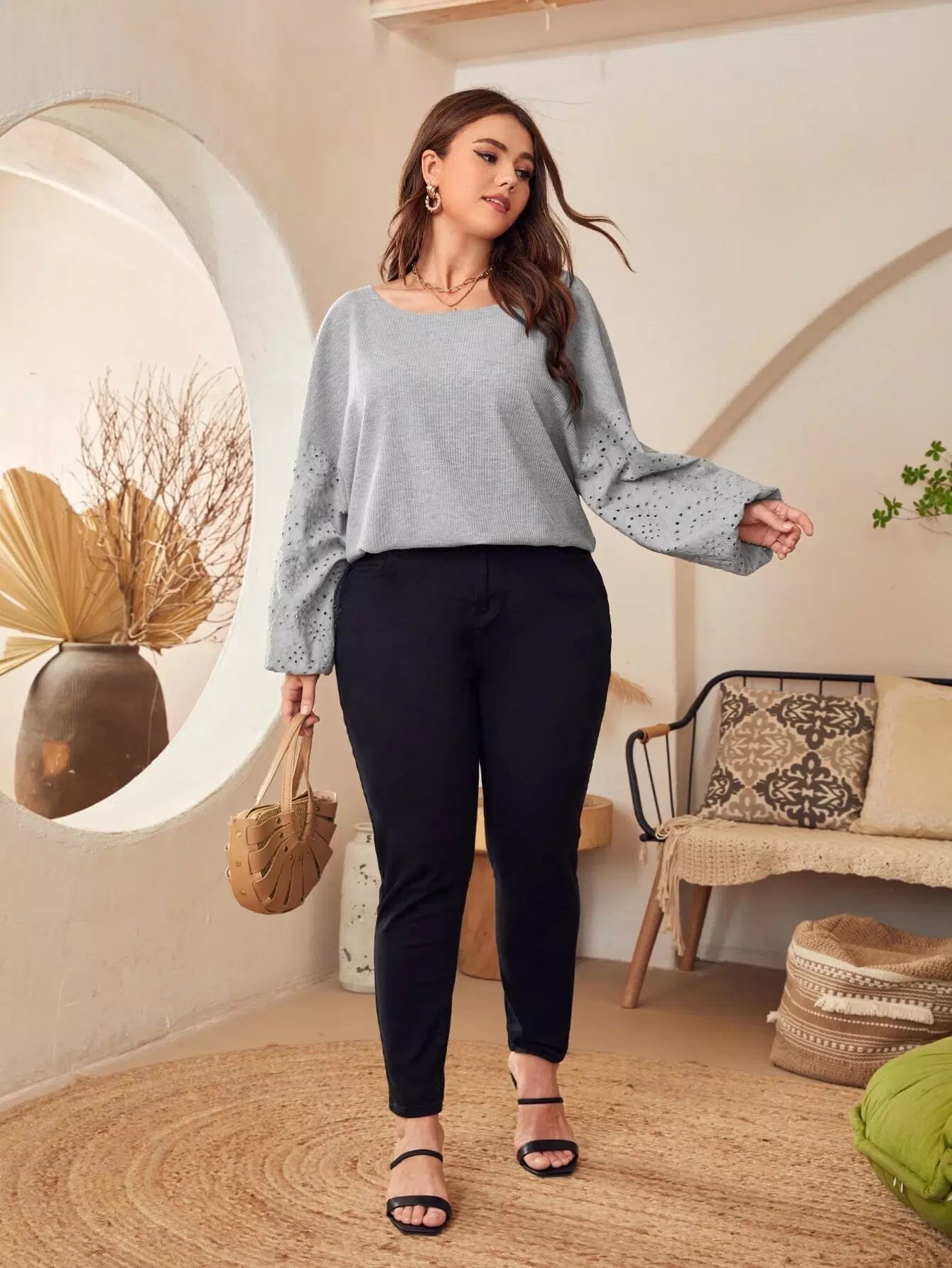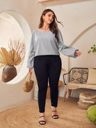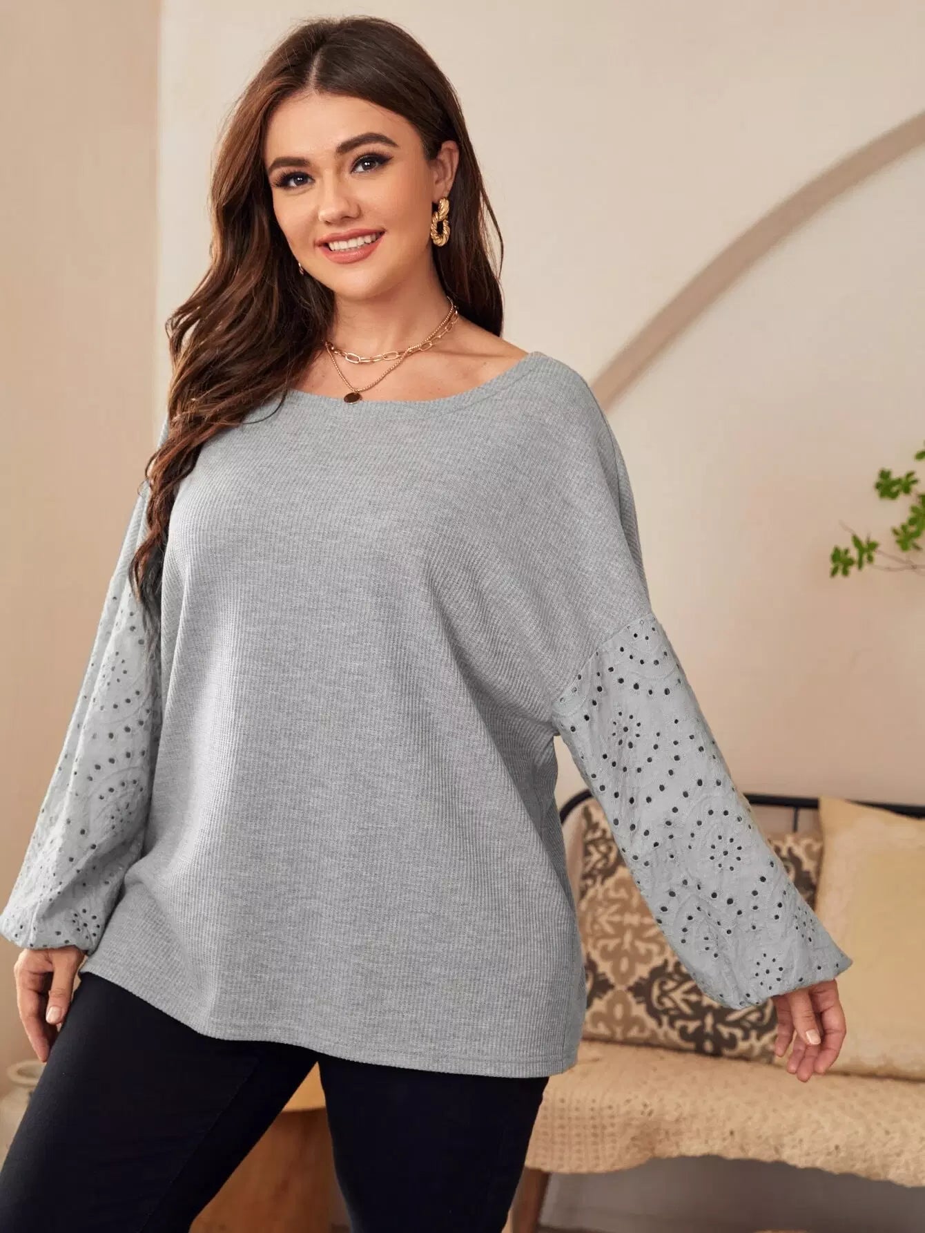 Plus Drop Shoulder Eyelet Embroidered Tee