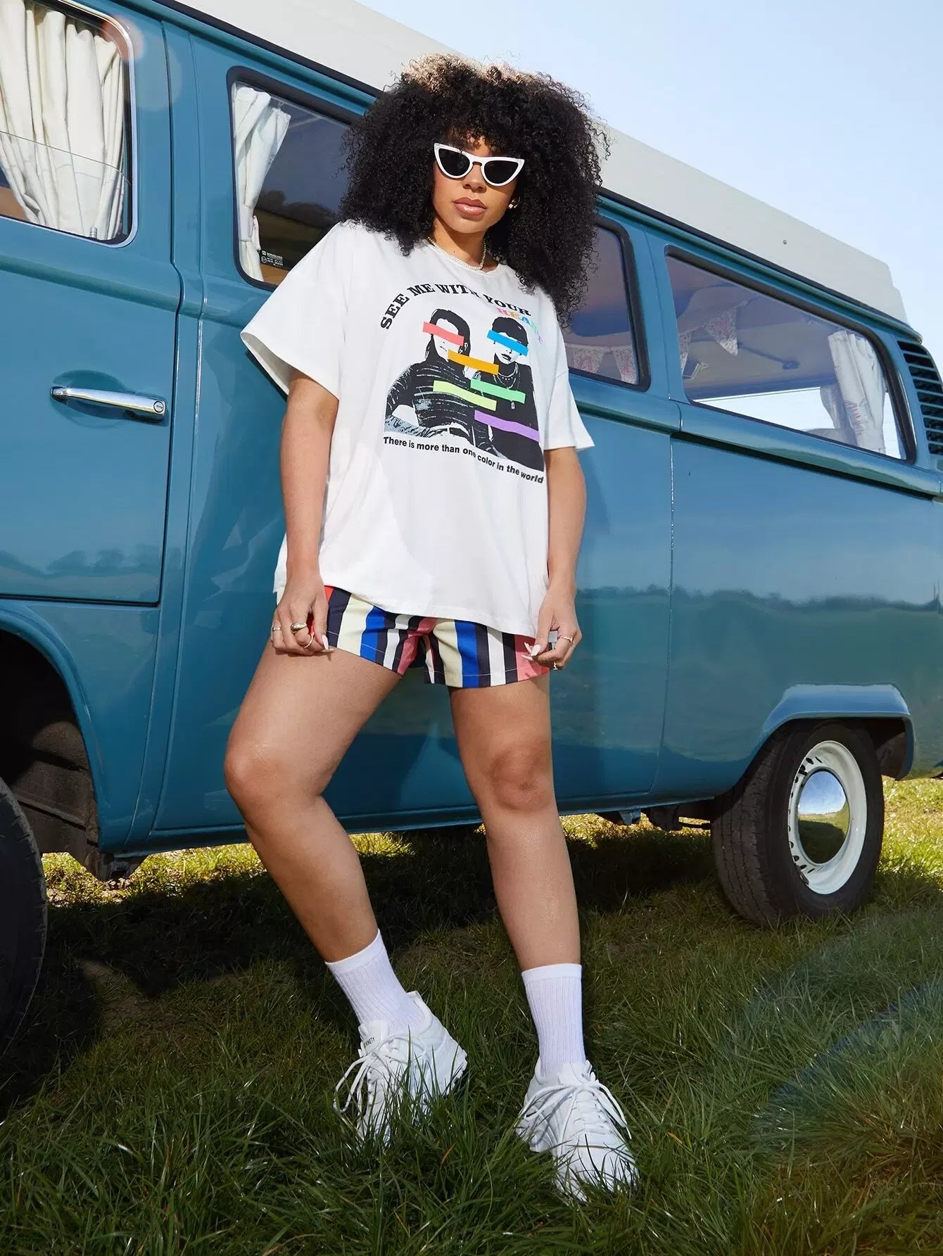 Plus Drop Shoulder Figure & Slogan Graphic Tee