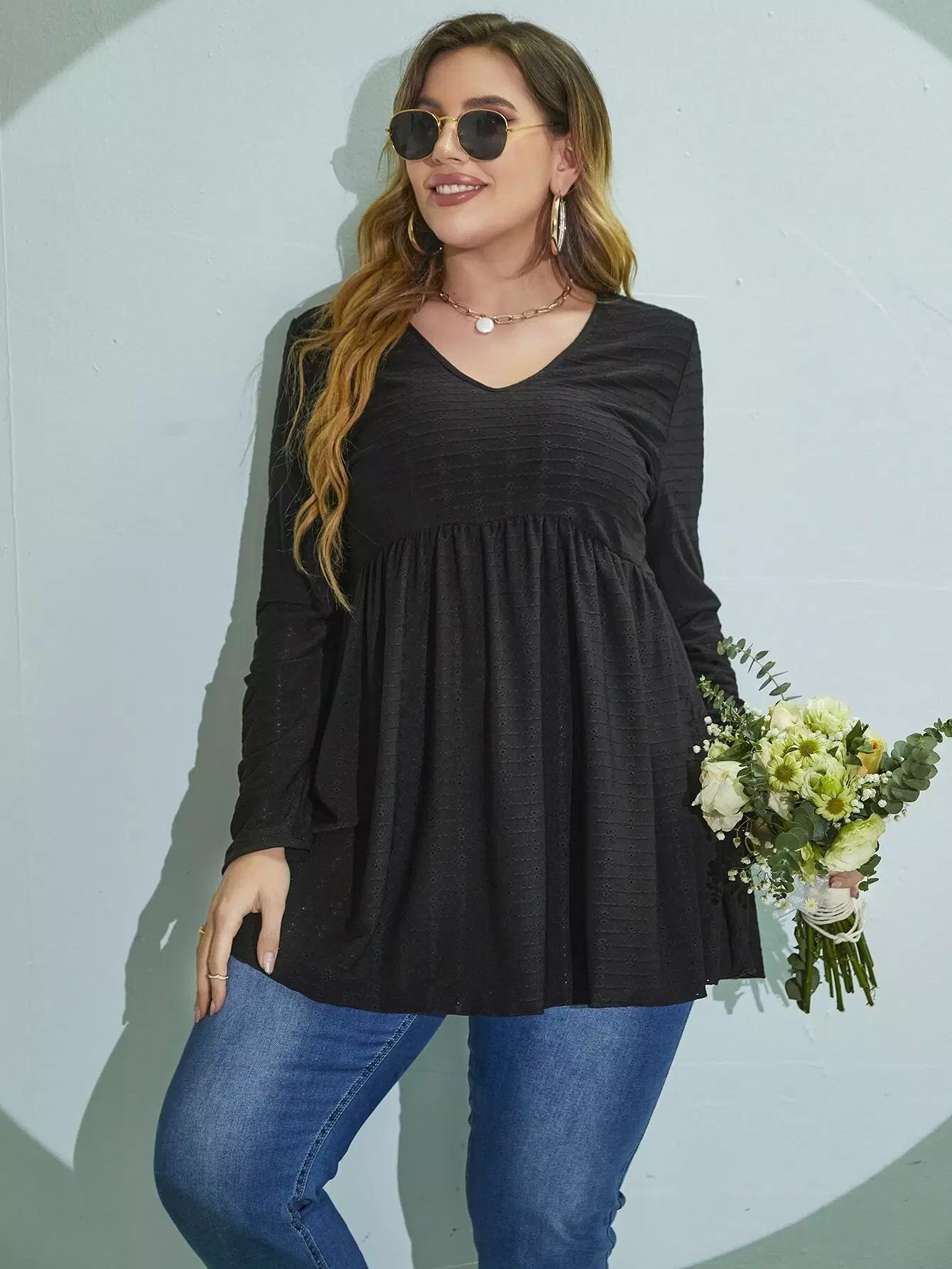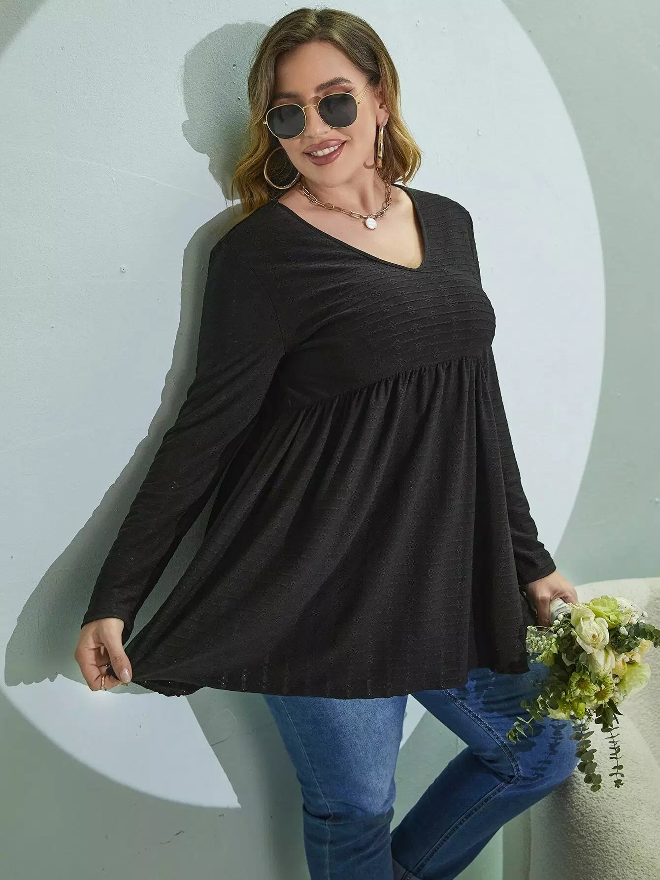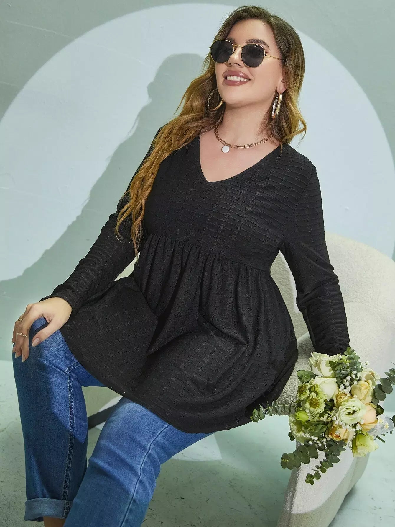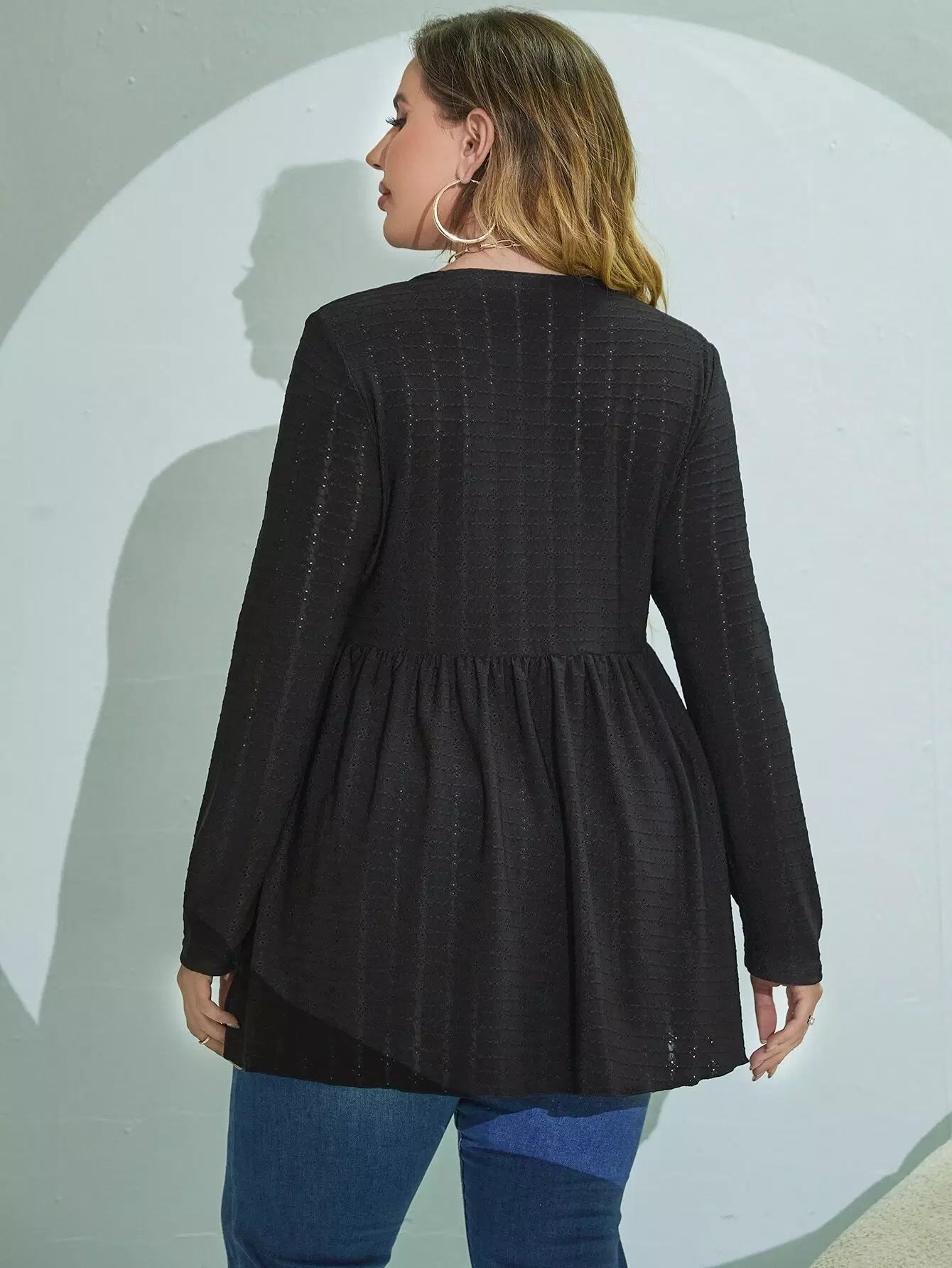 Plus Eyelet Embroidery Peplum Tee