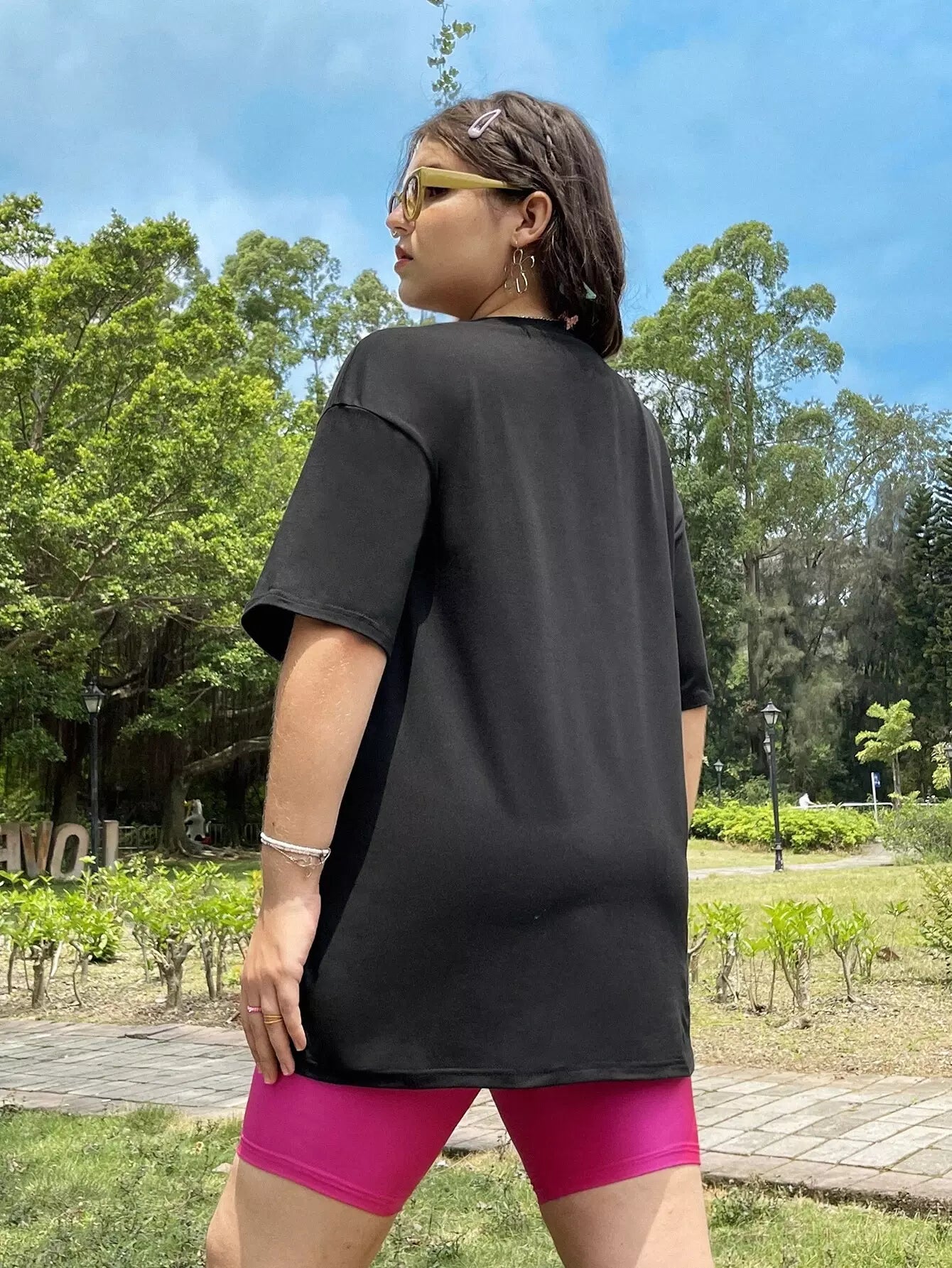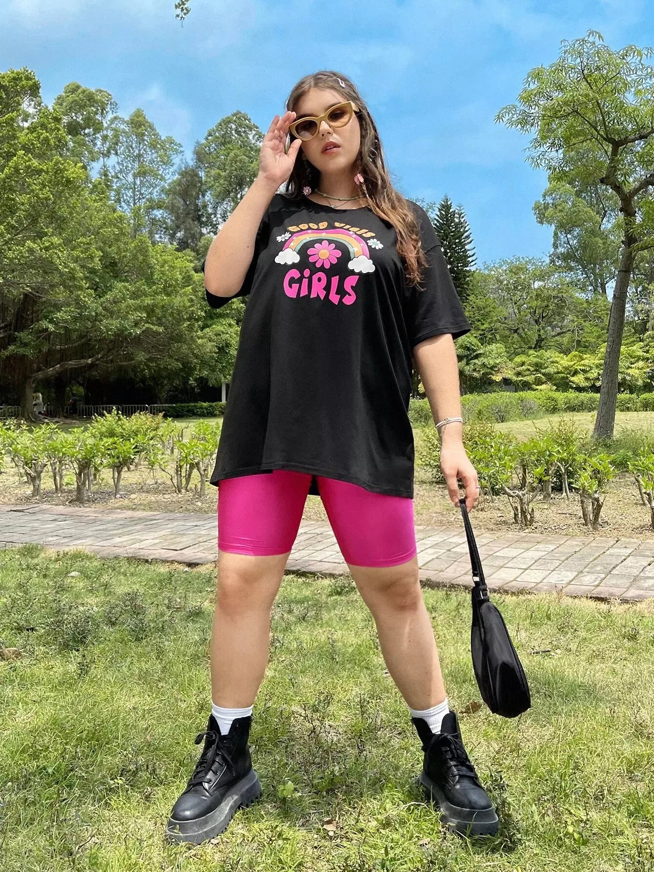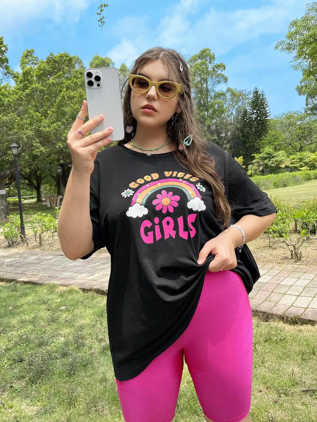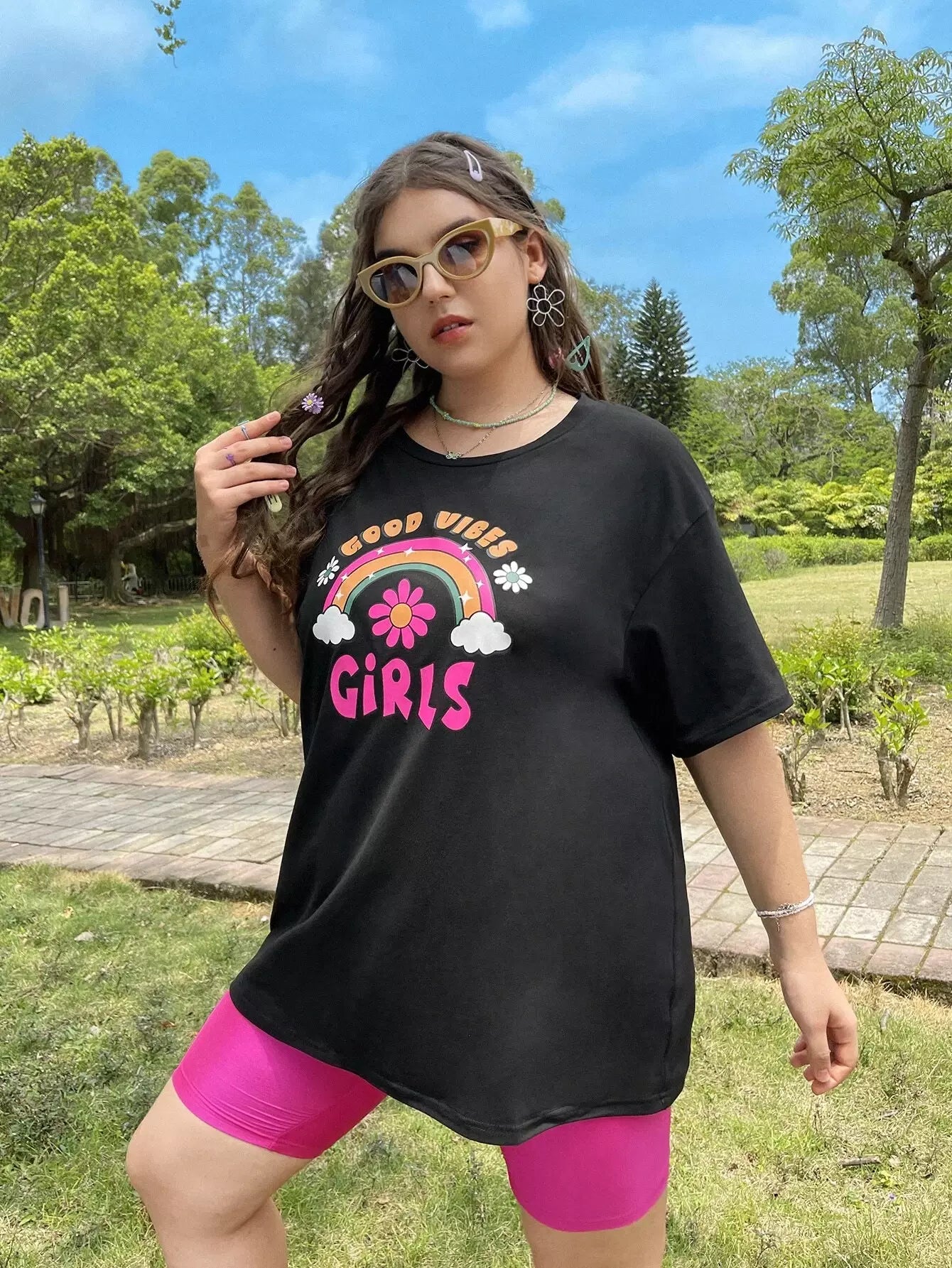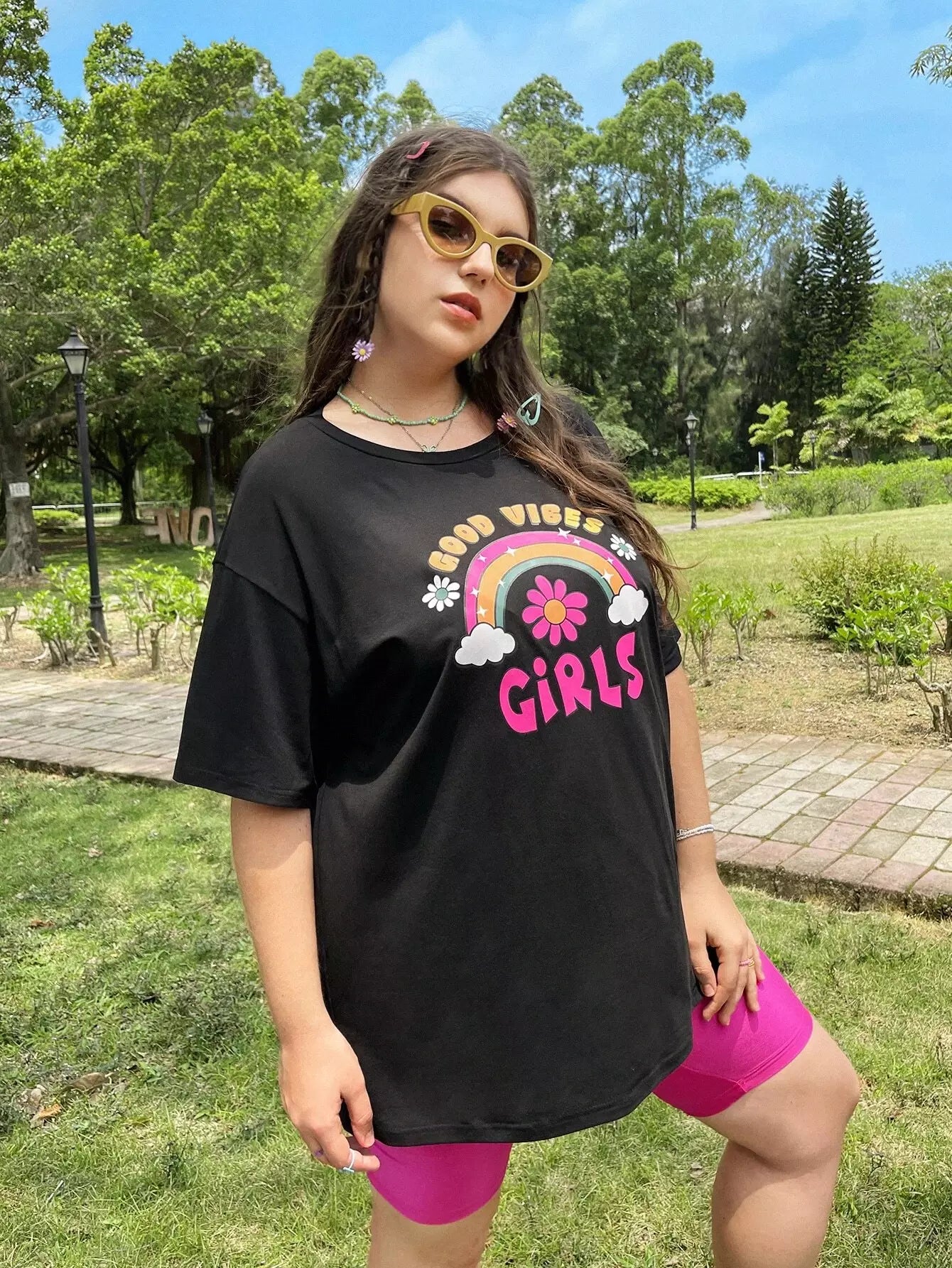 Plus Floral & Letter Graphic Drop Shoulder Tee