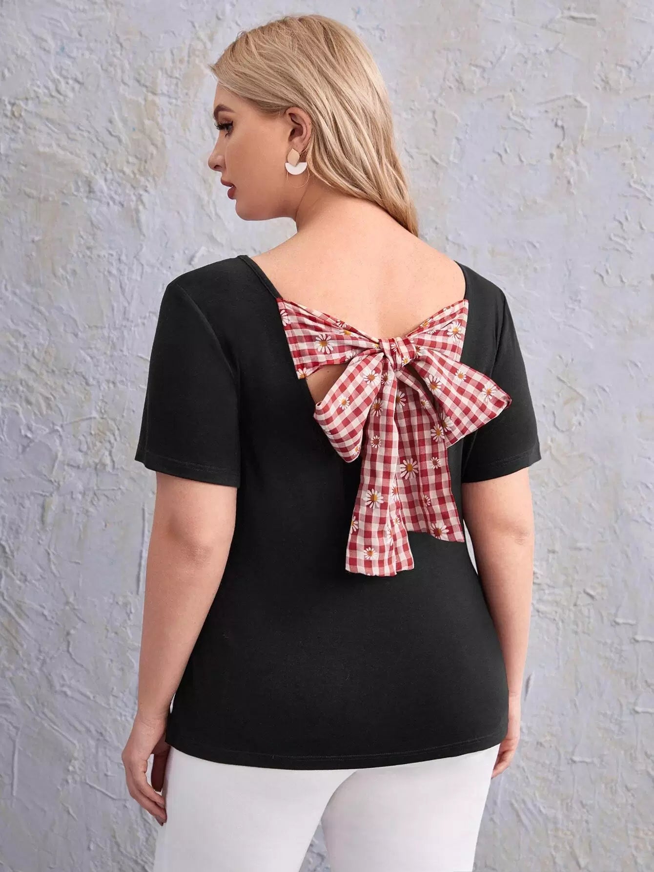 Plus Floral & Plaid Print Tie Back Tee