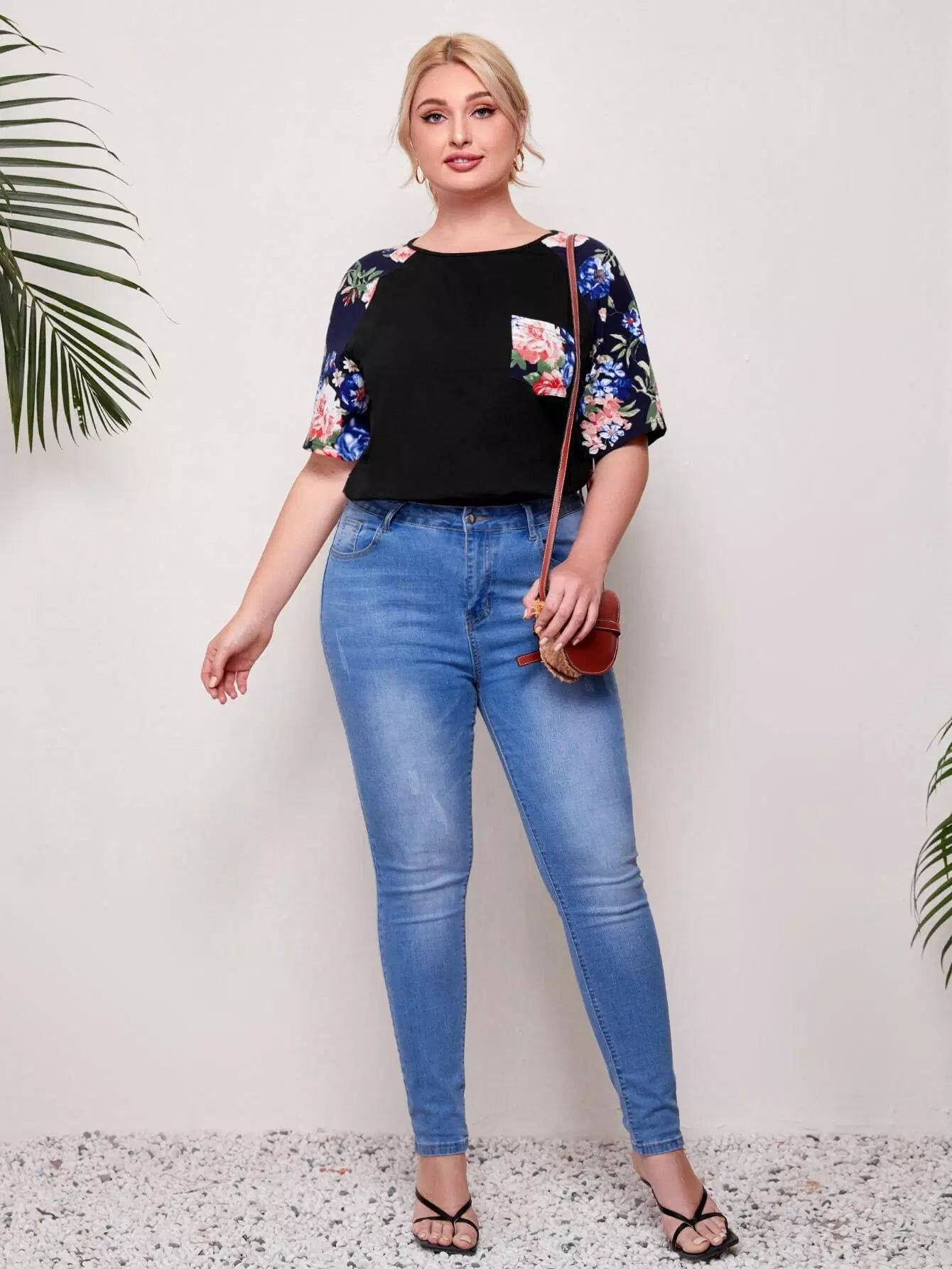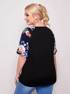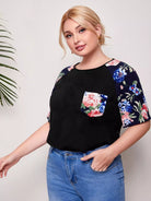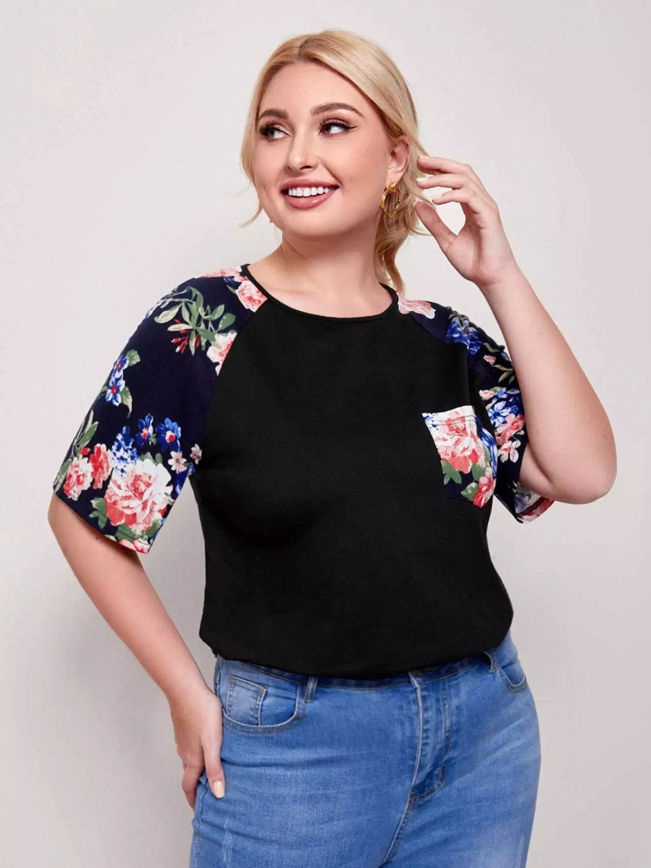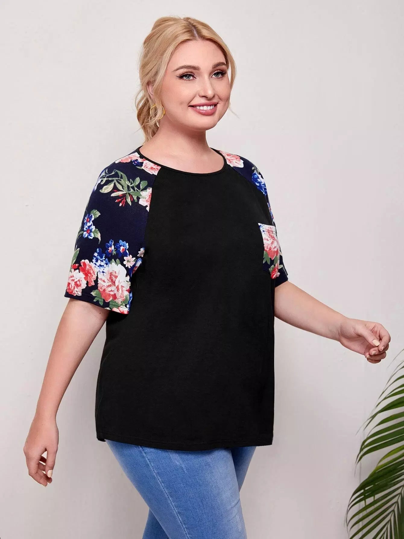 Plus Floral Raglan Sleeve Pocket Front Tee