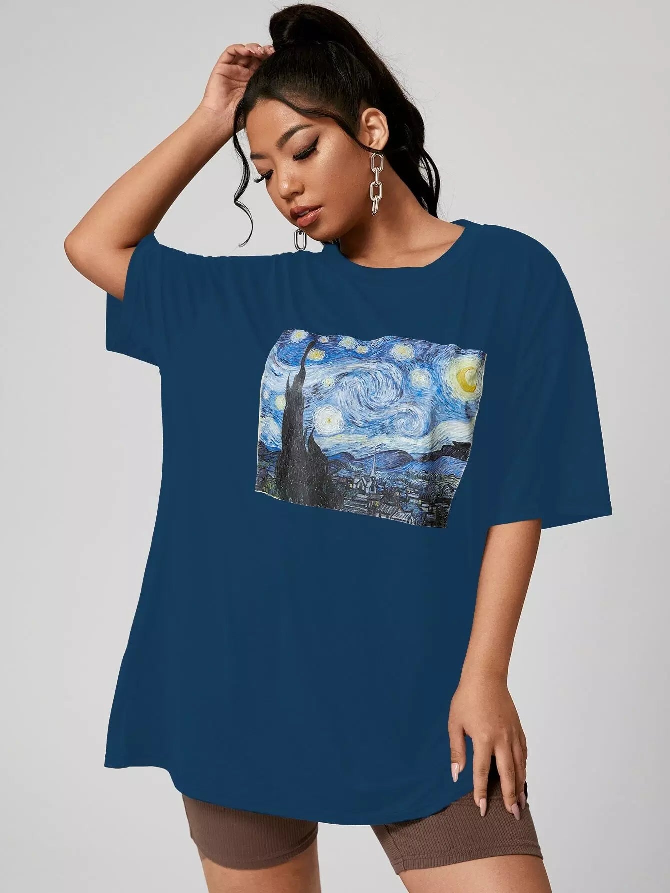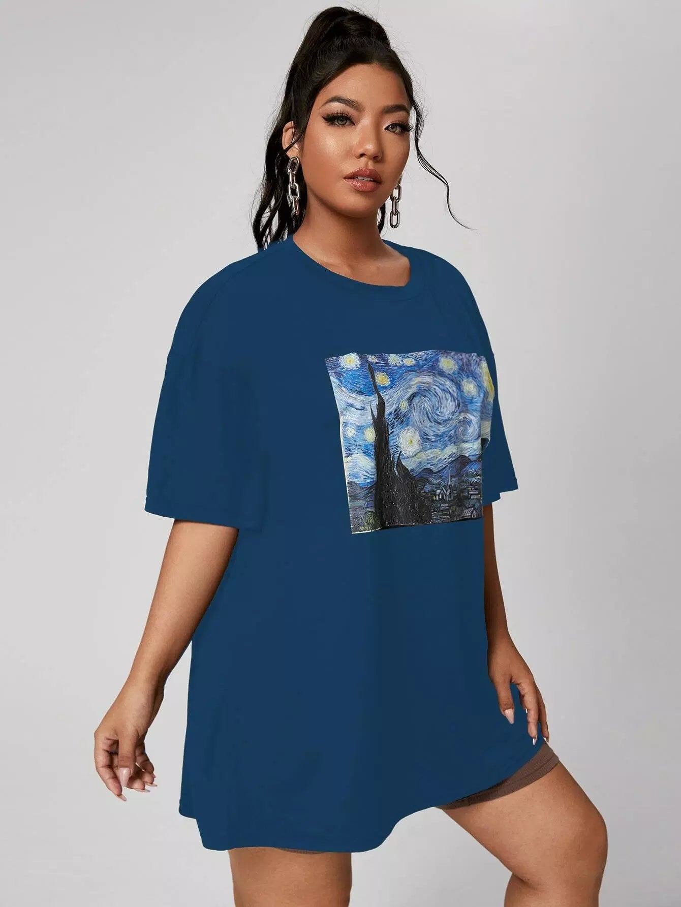 Plus Graphic Print Drop Shoulder Longline Tee