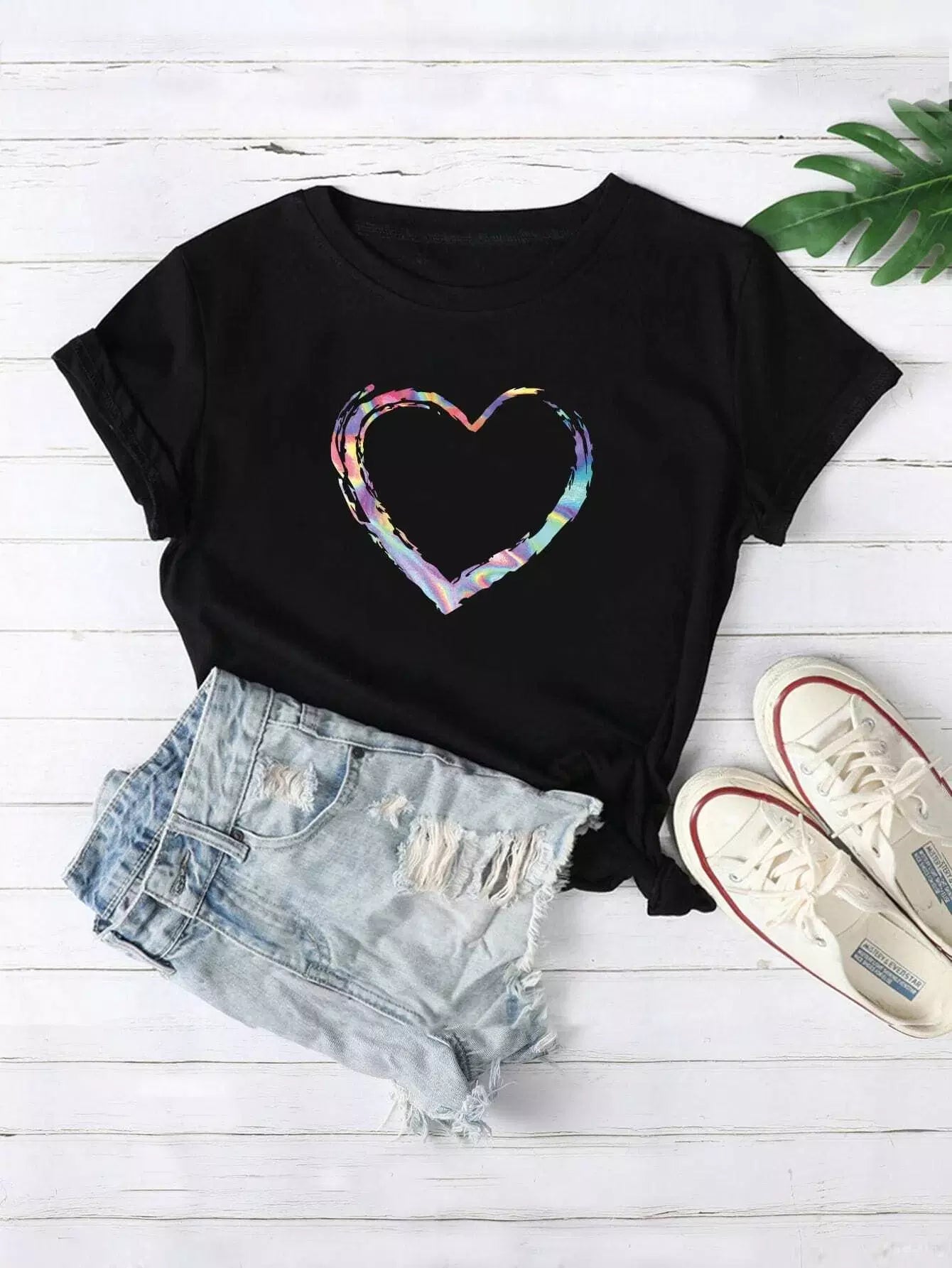 Plus Heart Print Round Neck Tee