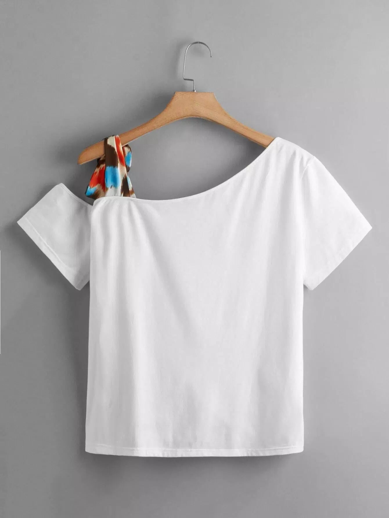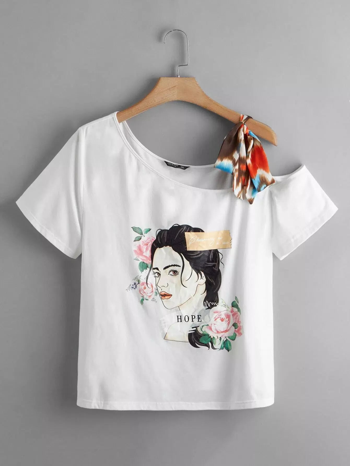 Plus Knot Asymmetrical Shoulder Figure Graphic Tee