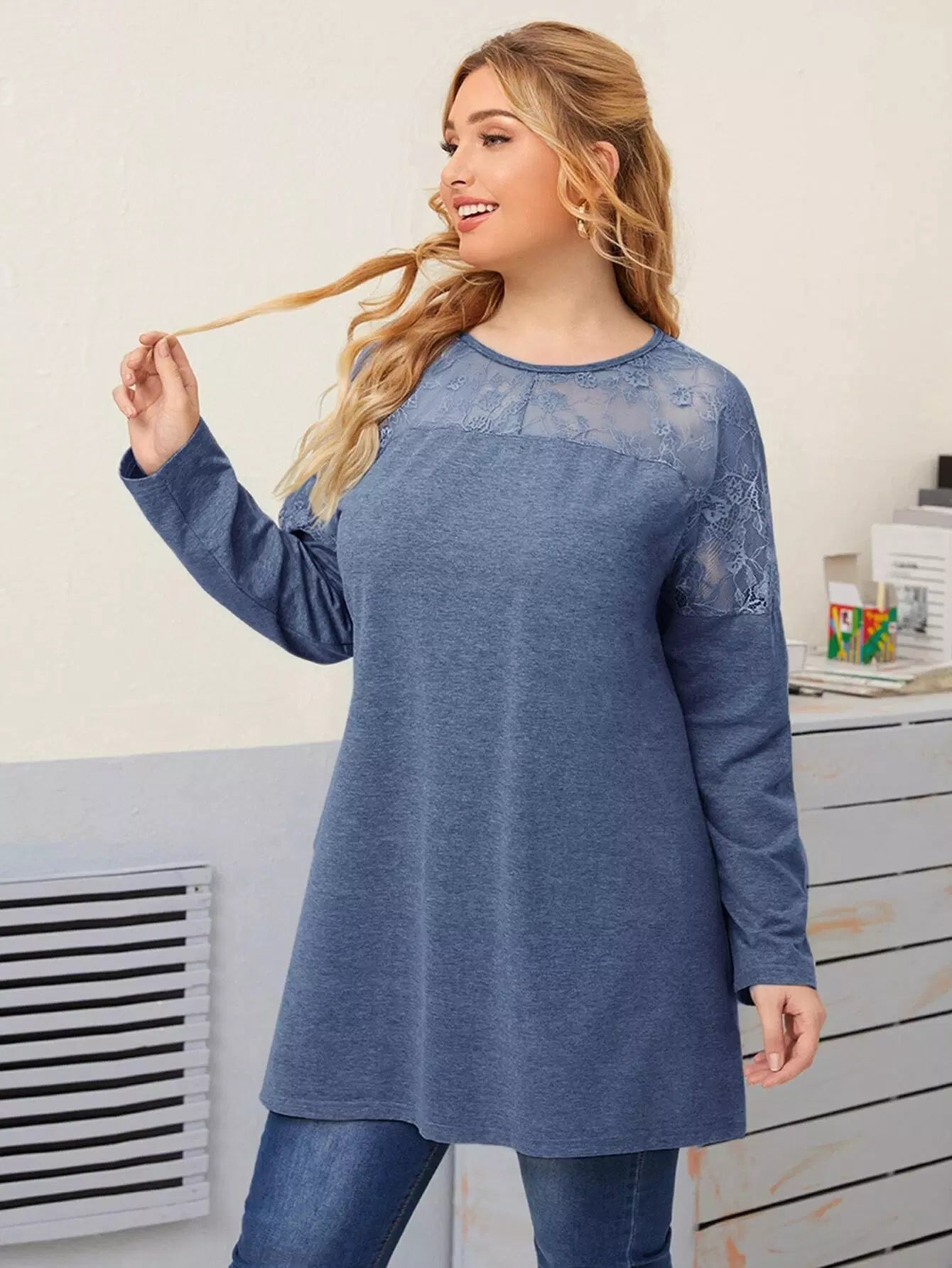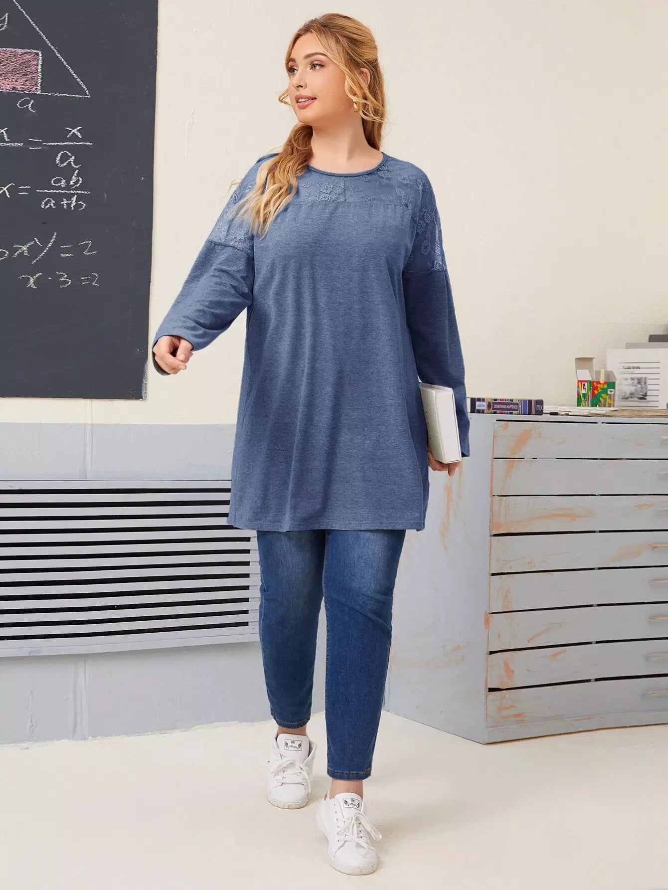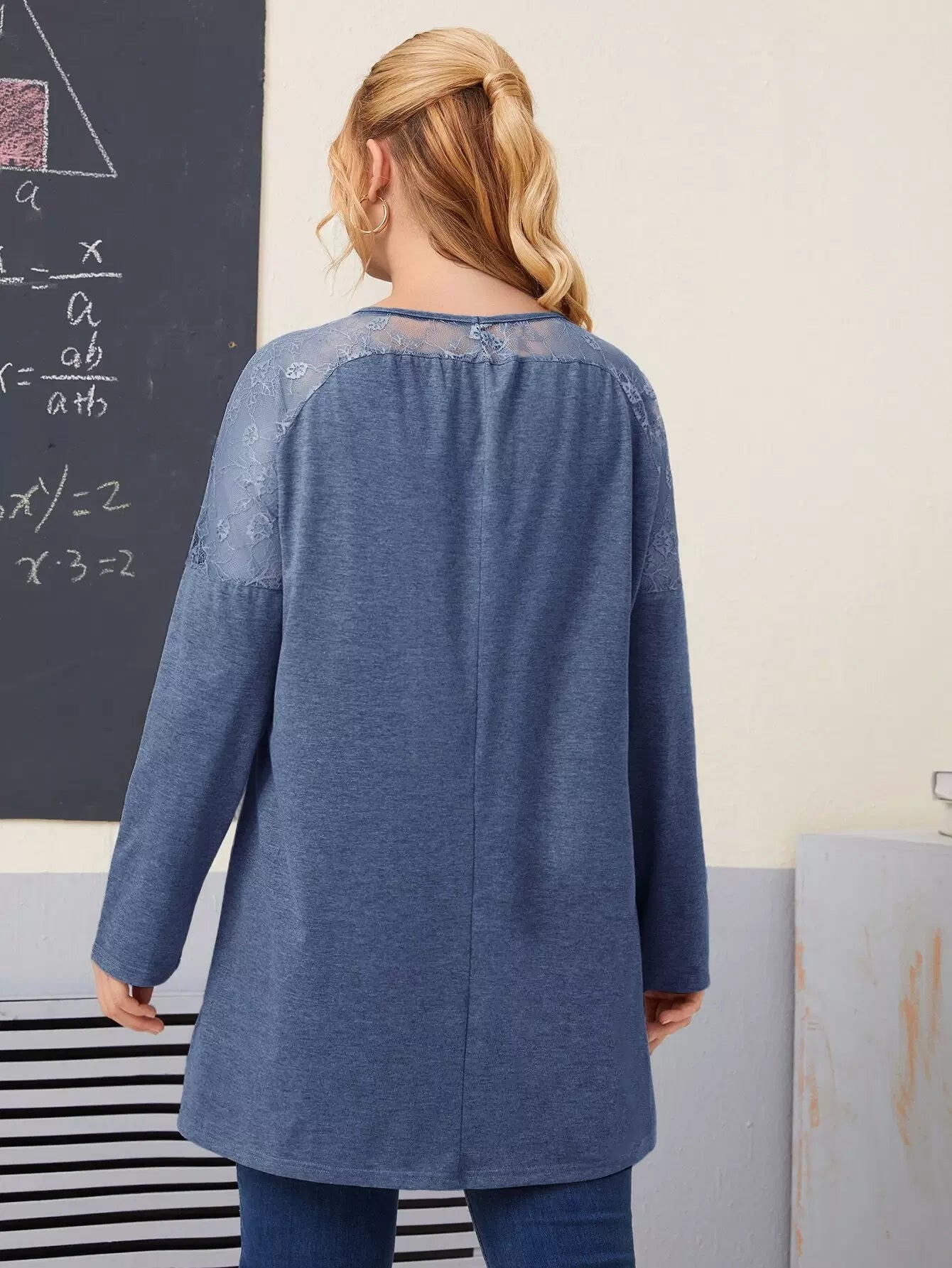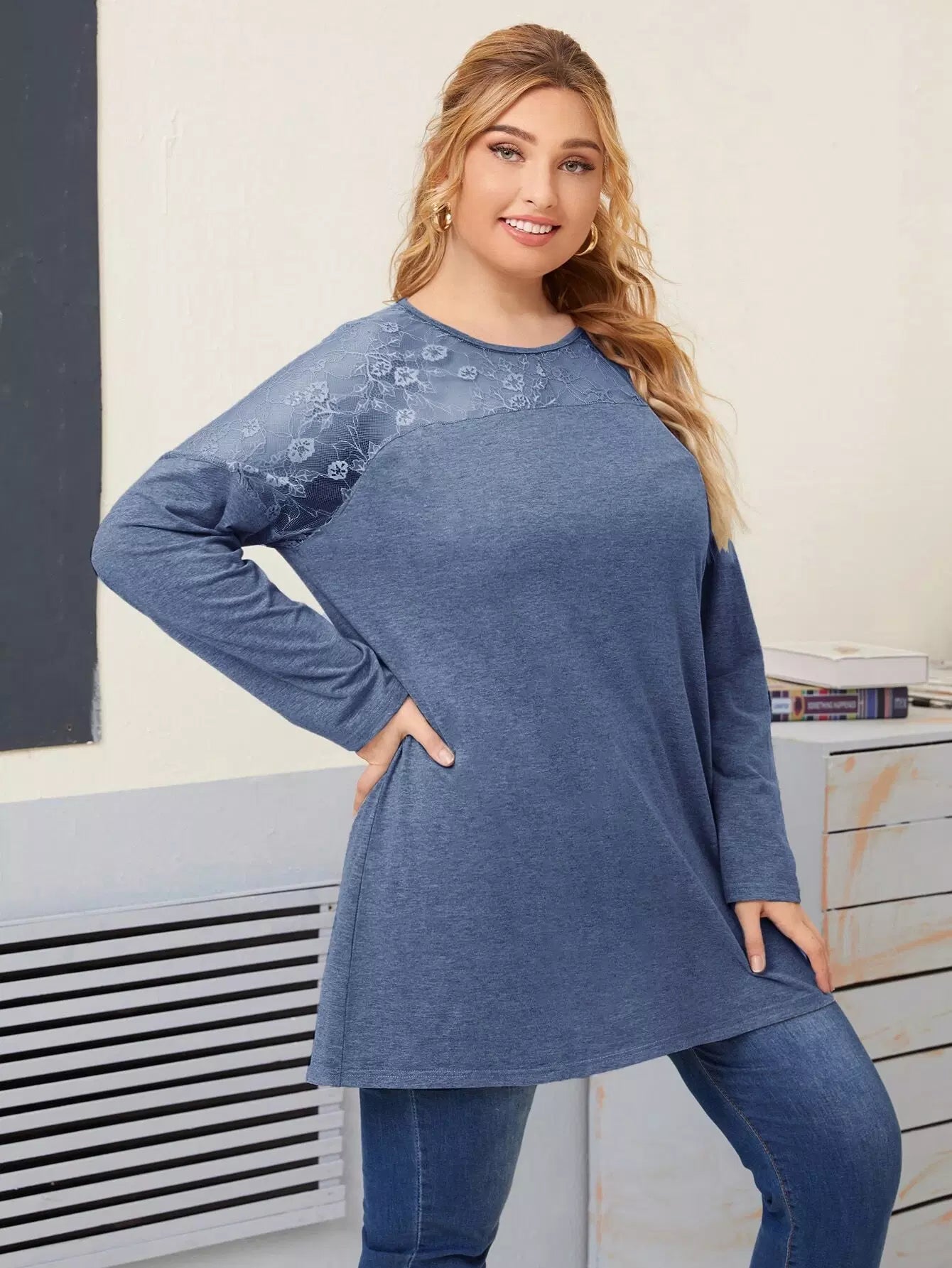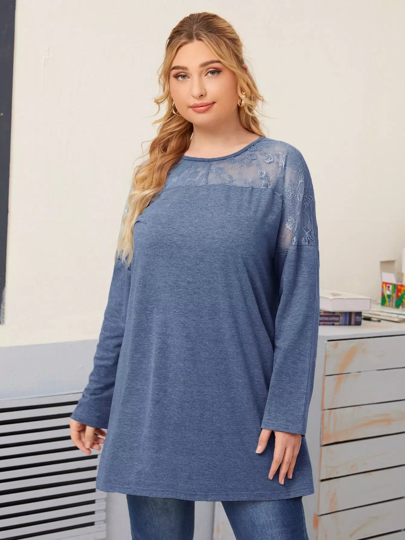 Plus Lace Yoke Drop Shoulder Longline Tee