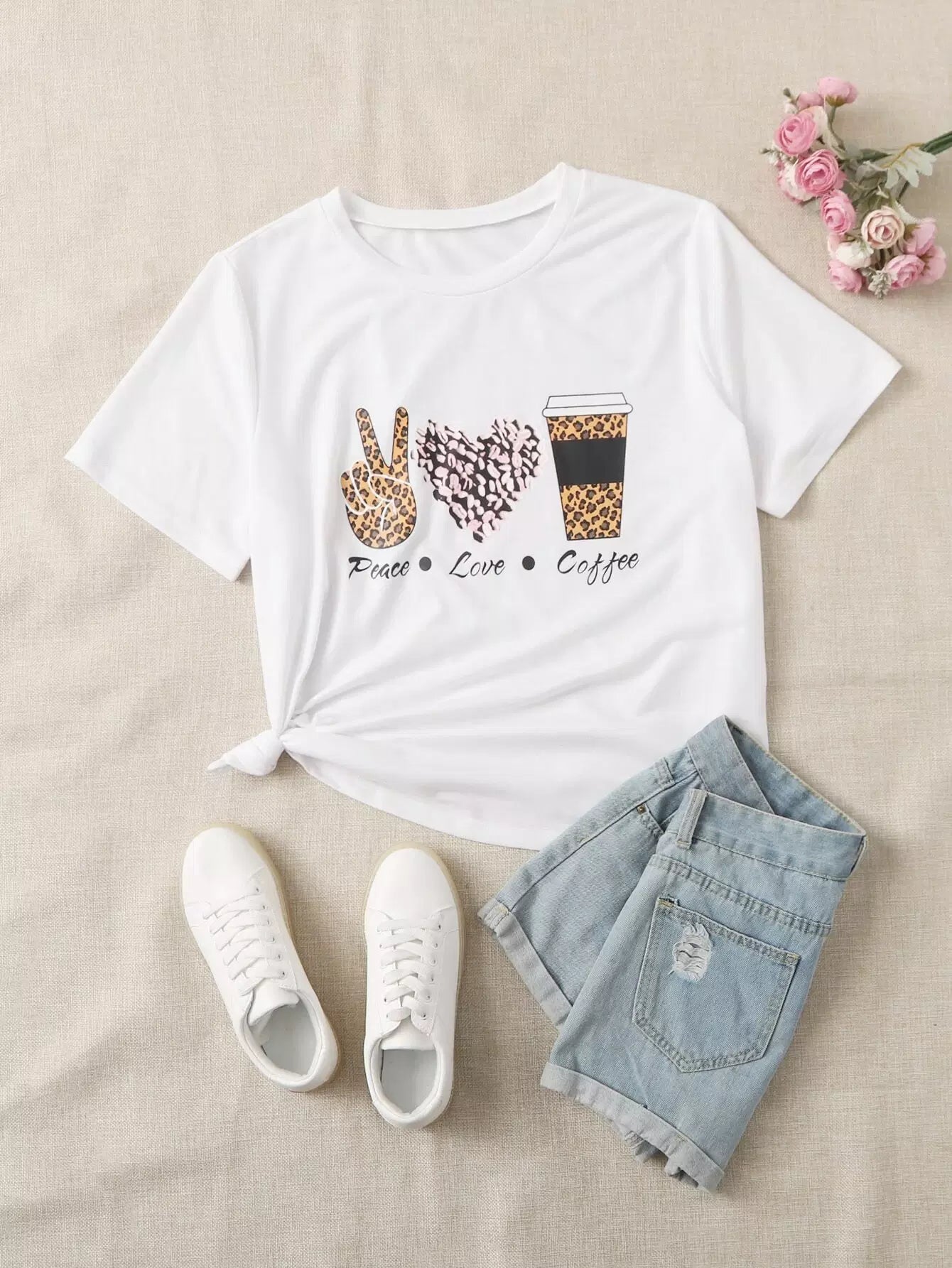 Women - Plus Letter & Leopard Print Tee