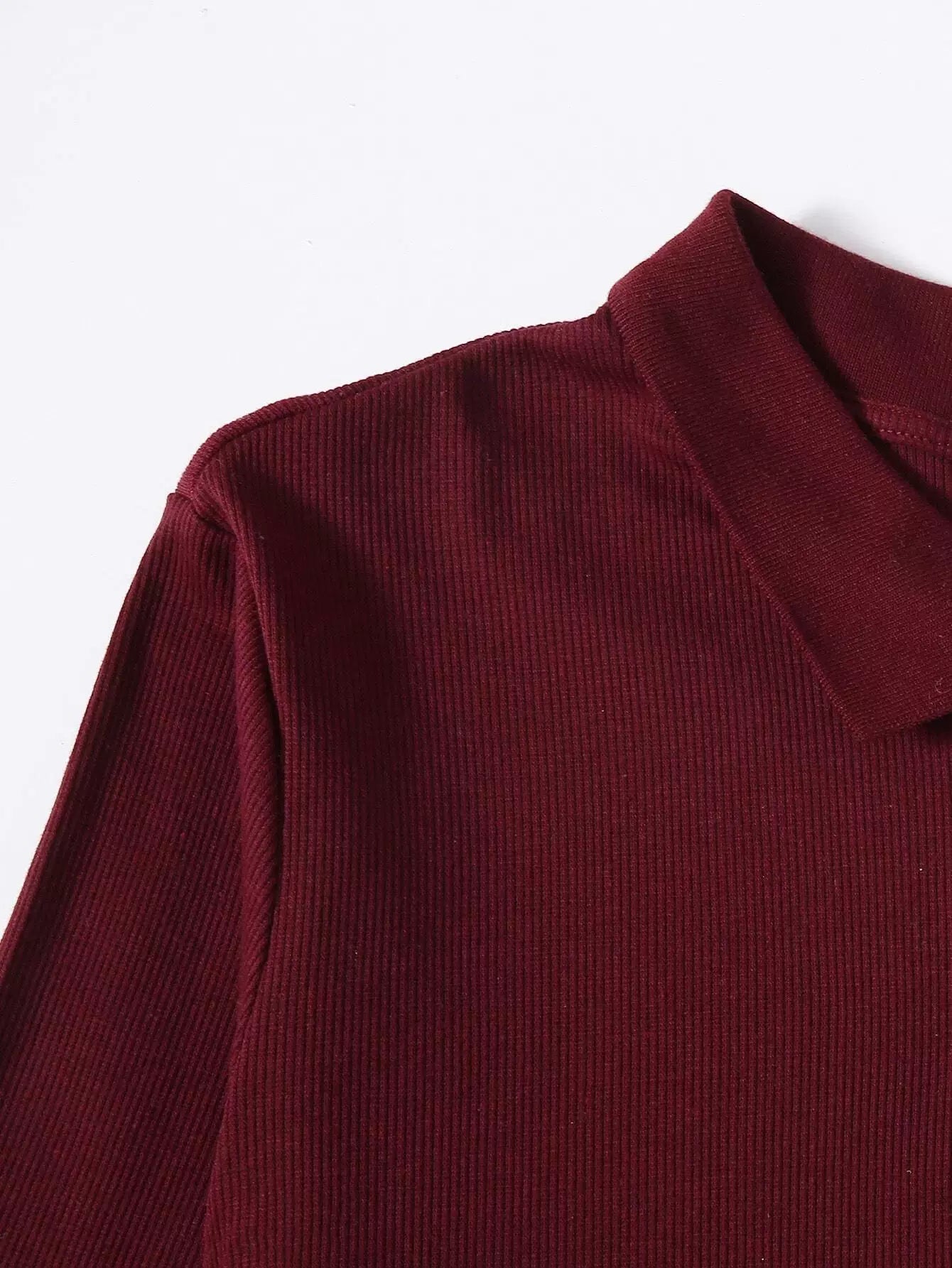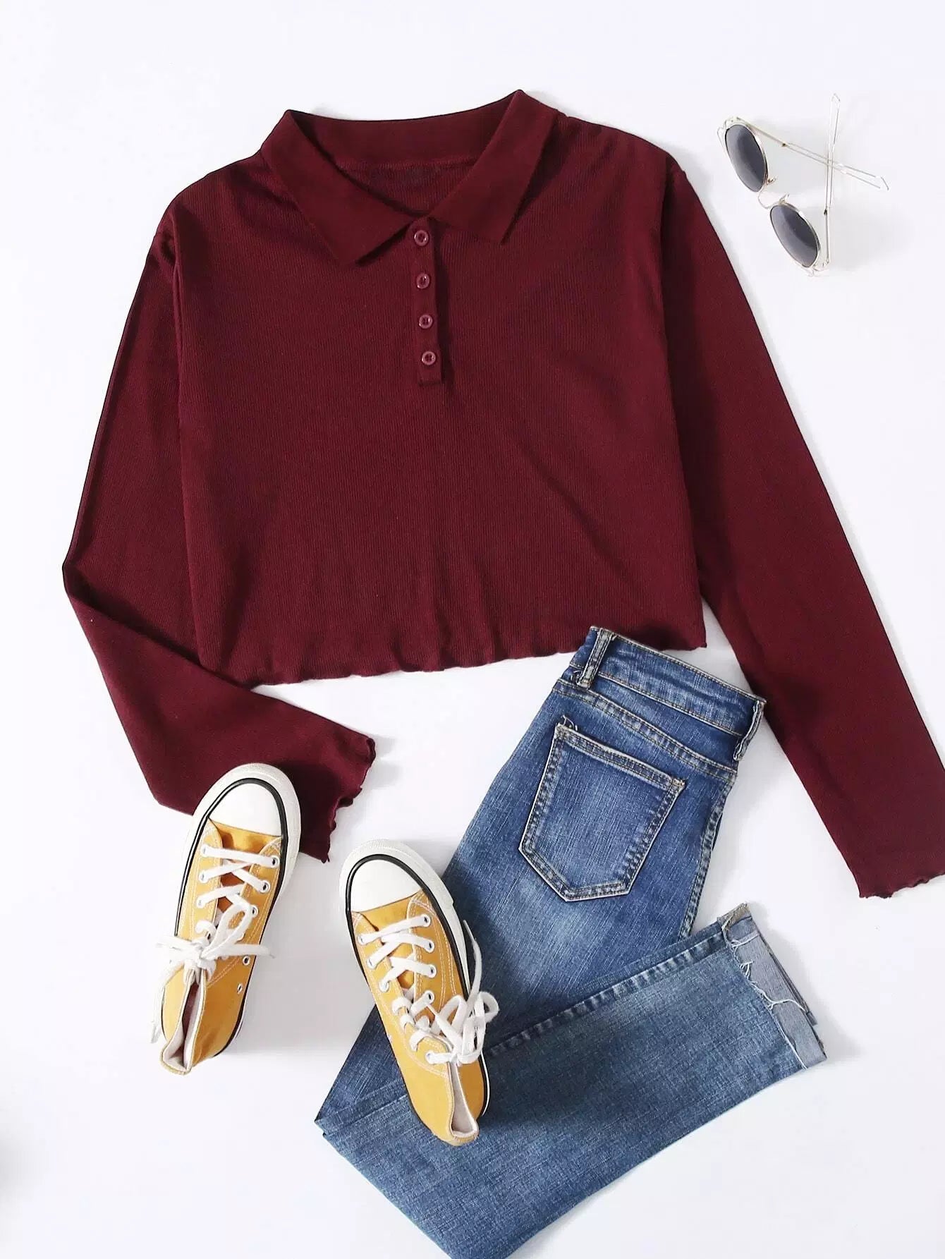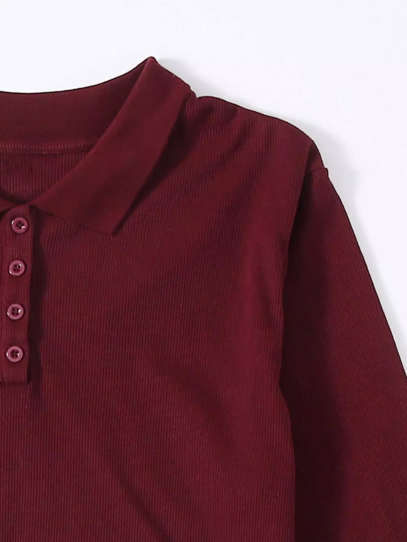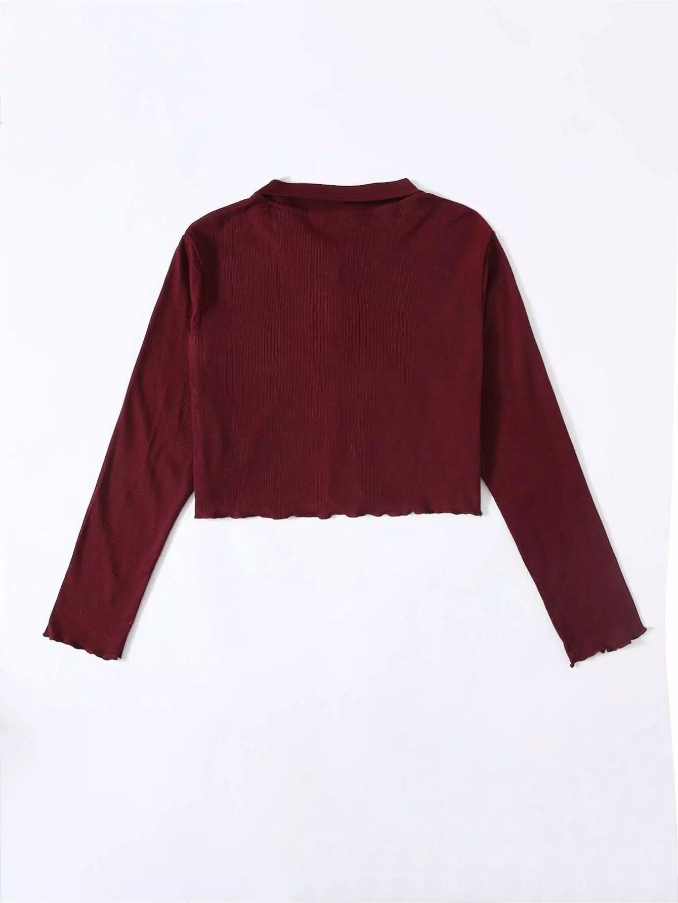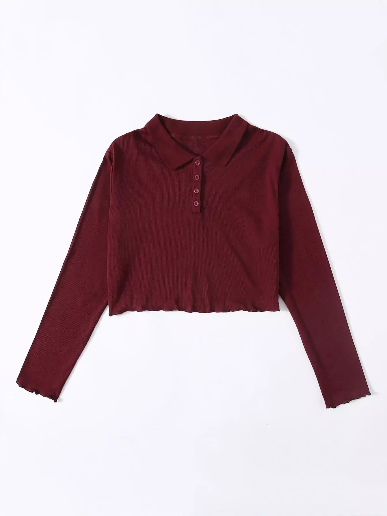 Plus Lettuce Trim Rib-knit Half Button Placket Crop Tee