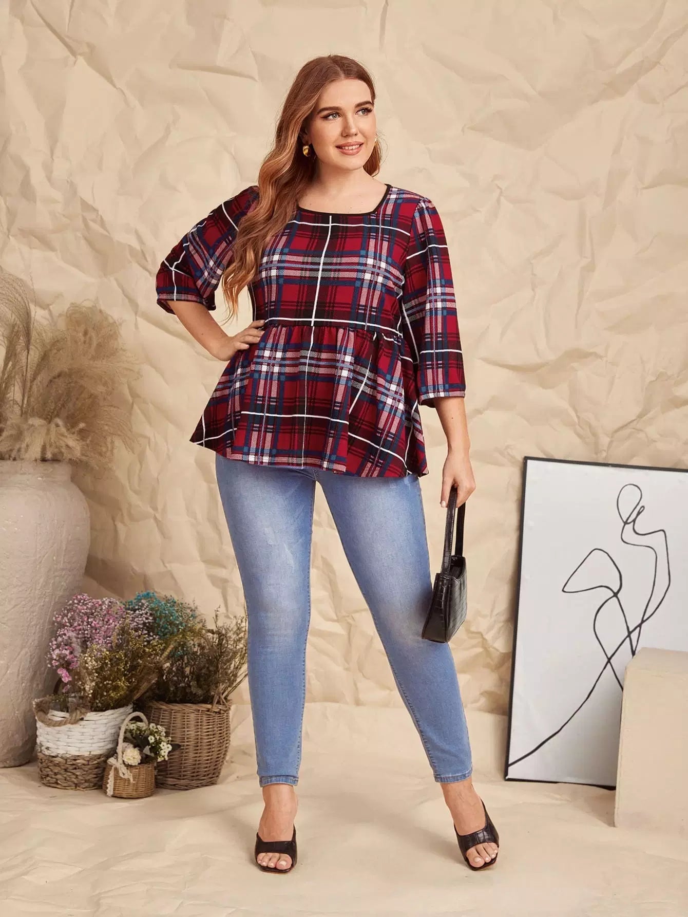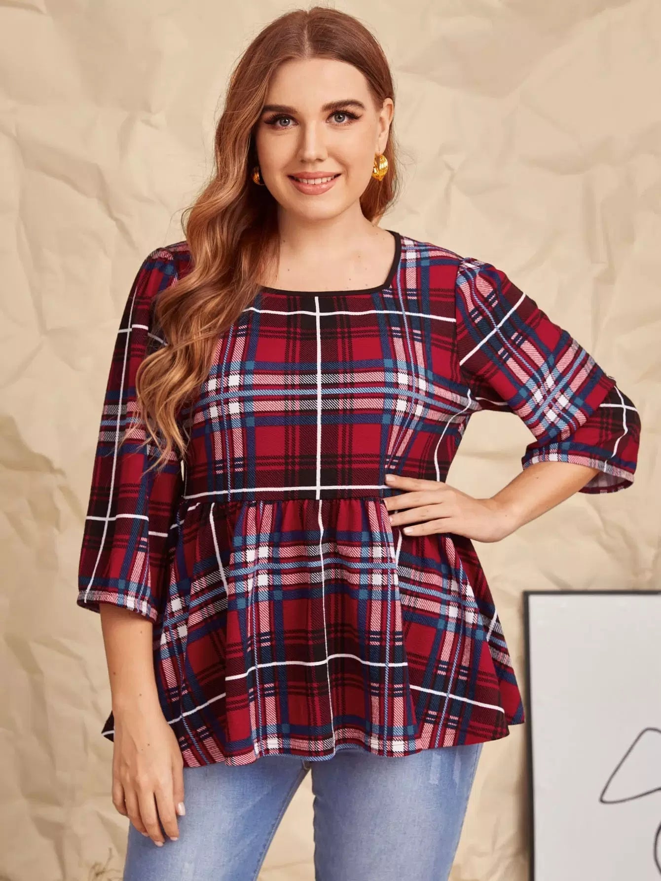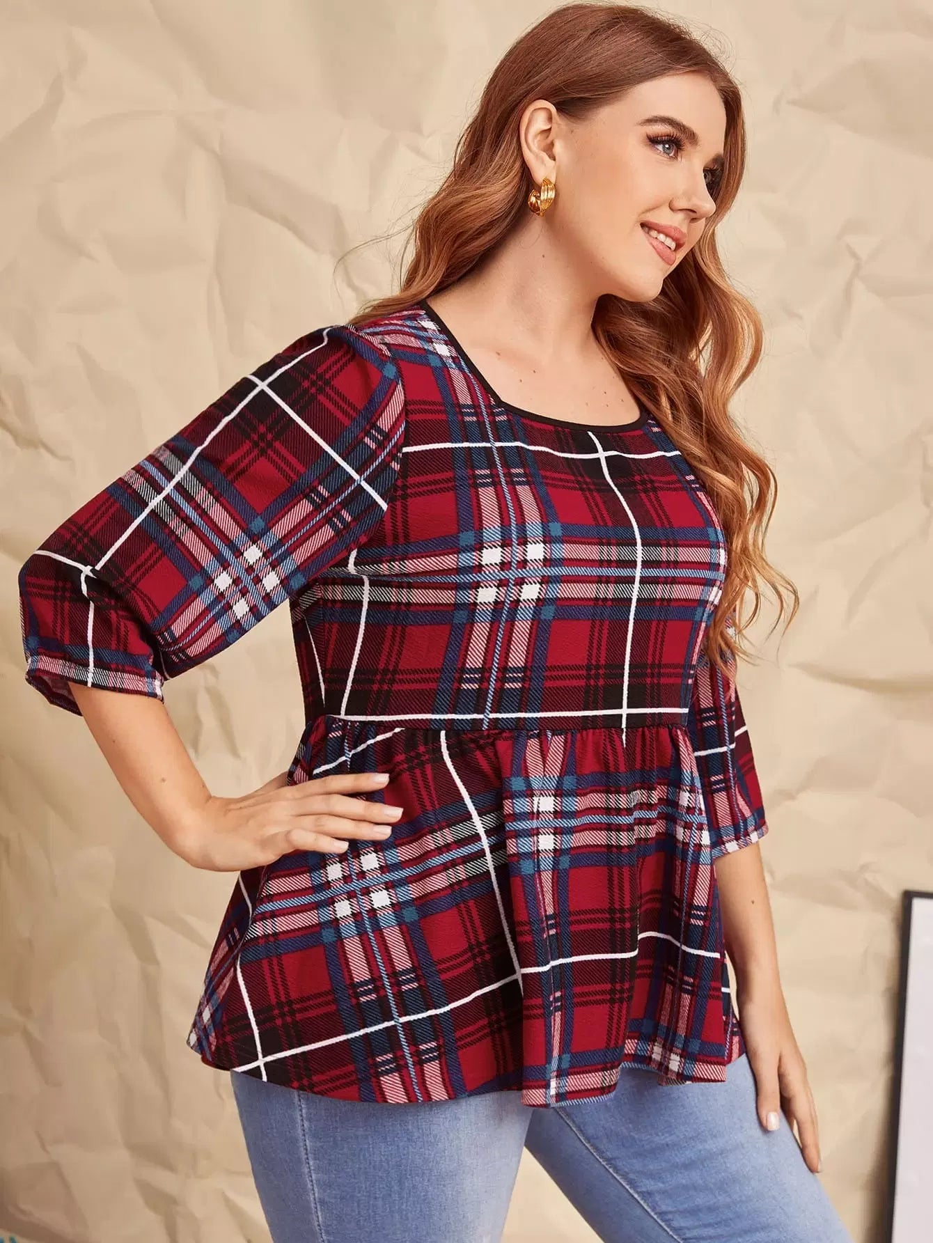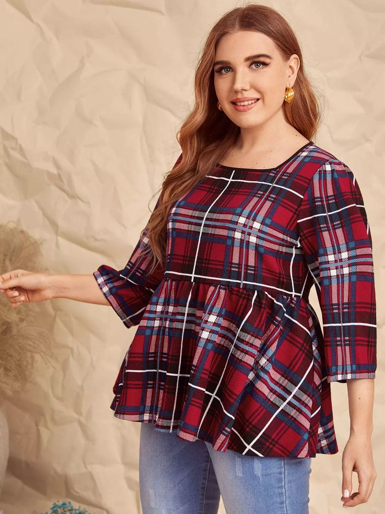 Plus Plaid Peplum Top