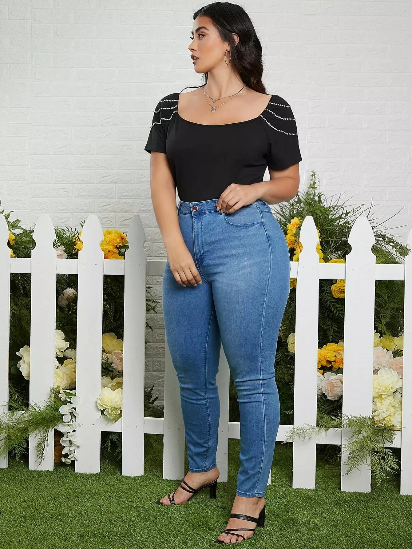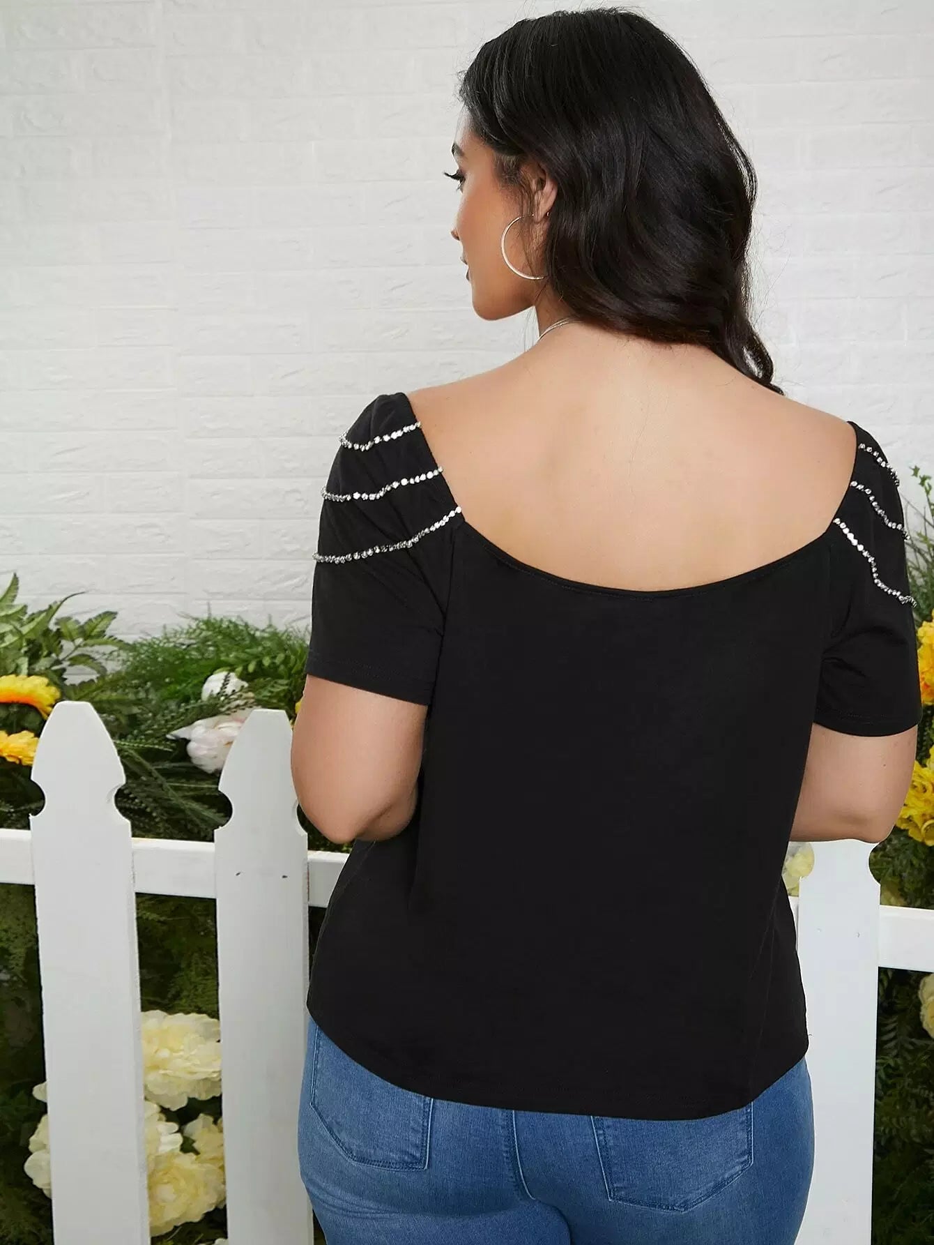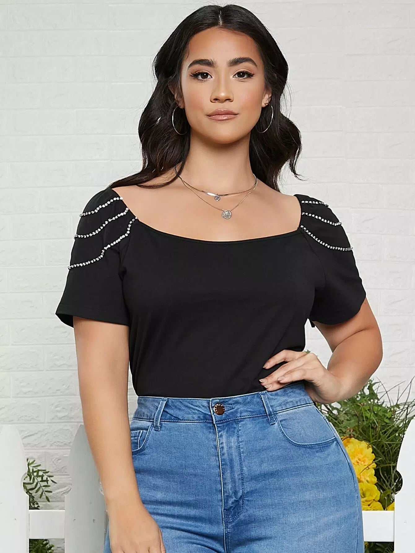 Plus Raglan Sleeve Rhinestone Detail Tee