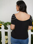 Women - Plus Raglan Sleeve Rhinestone Detail Tee