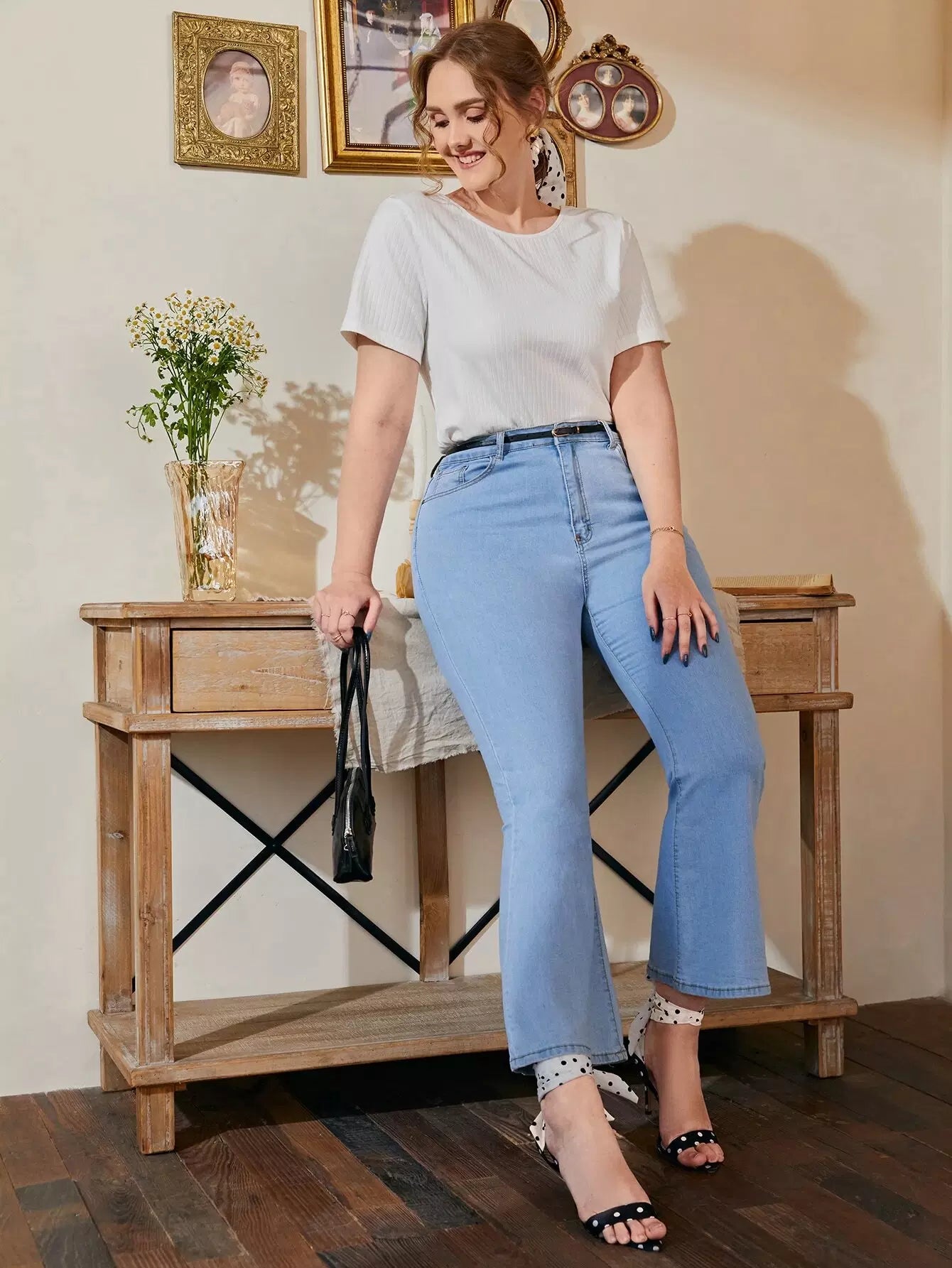 Plus Ribbed Knit Tie Back Tee