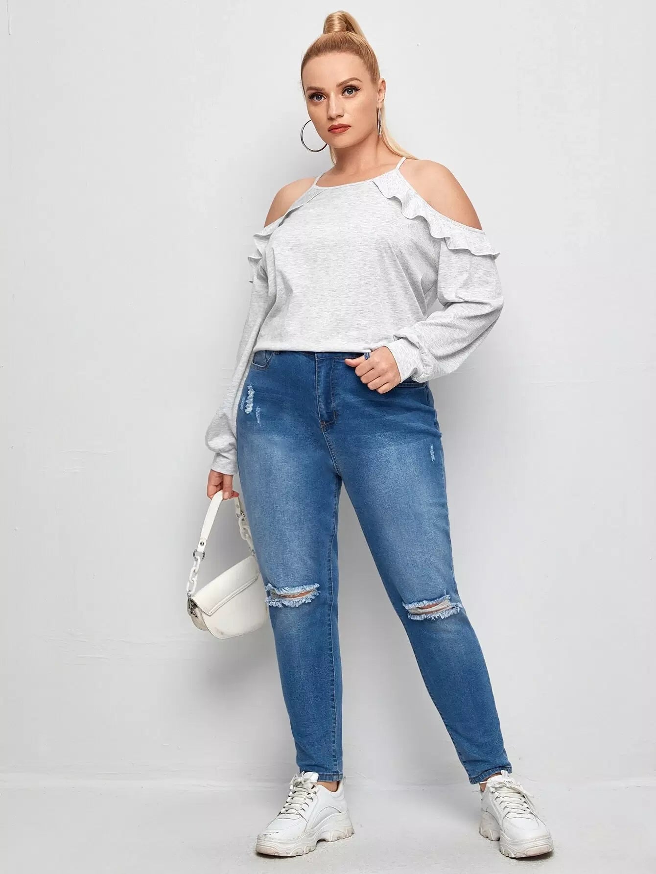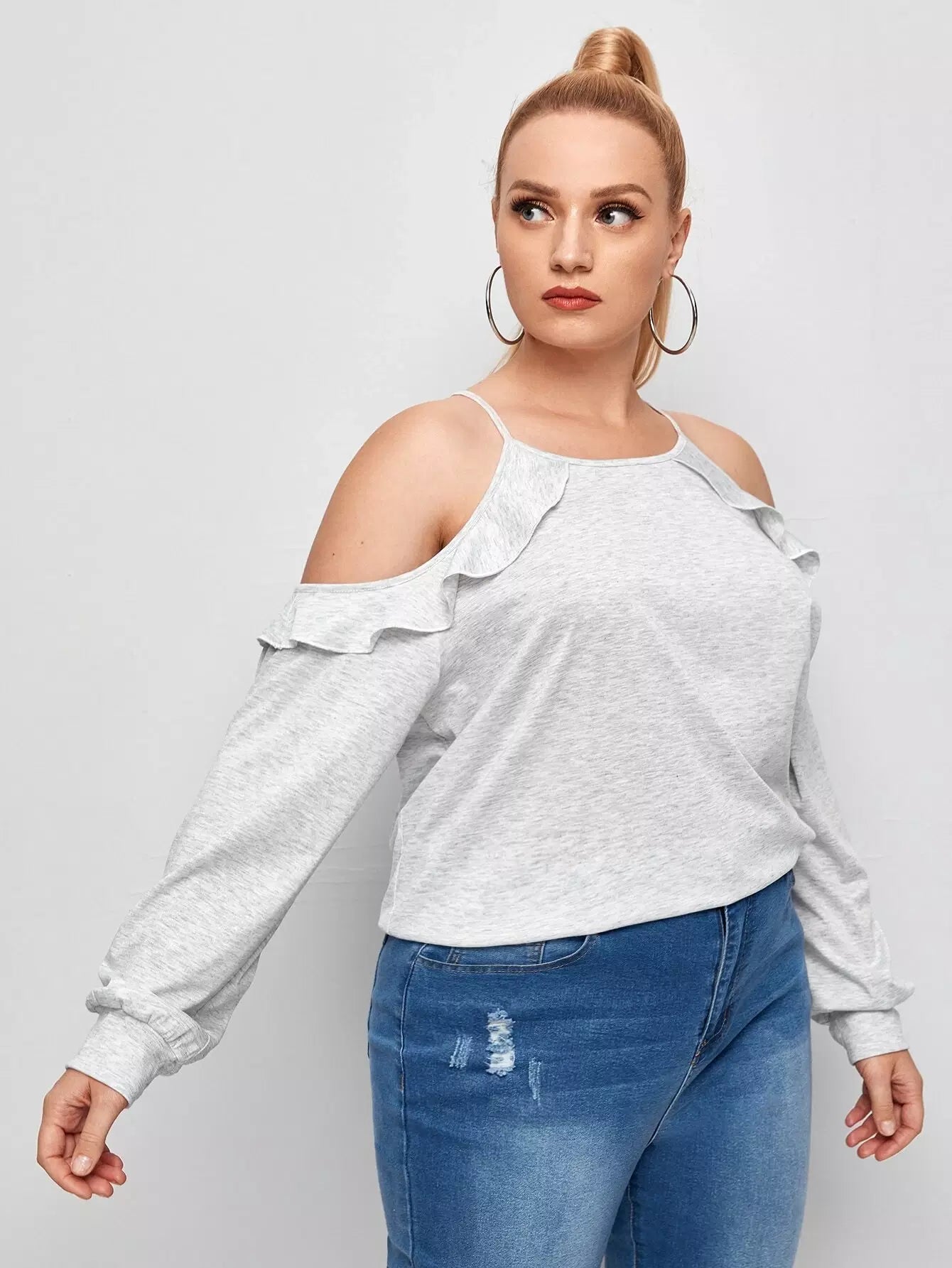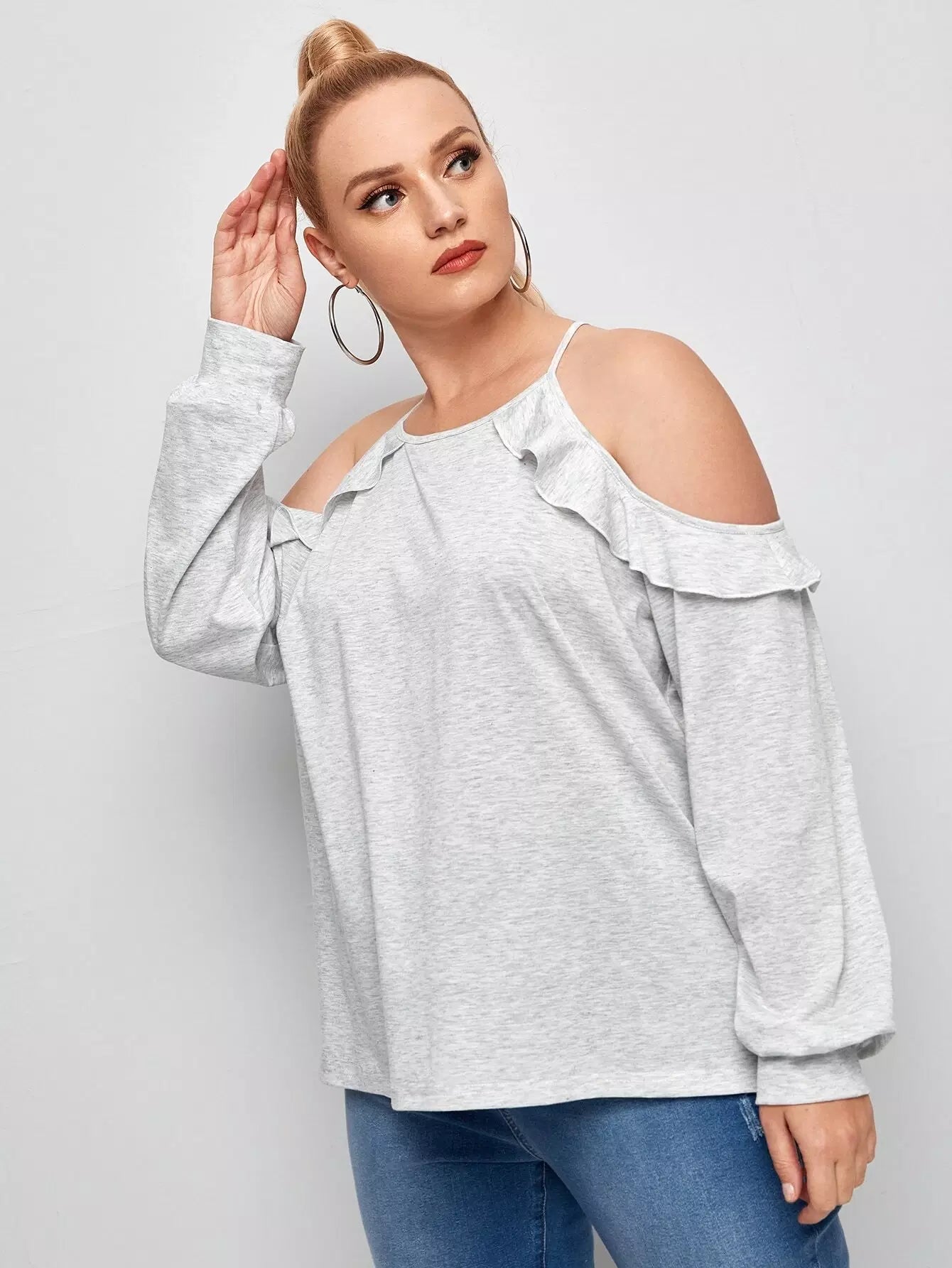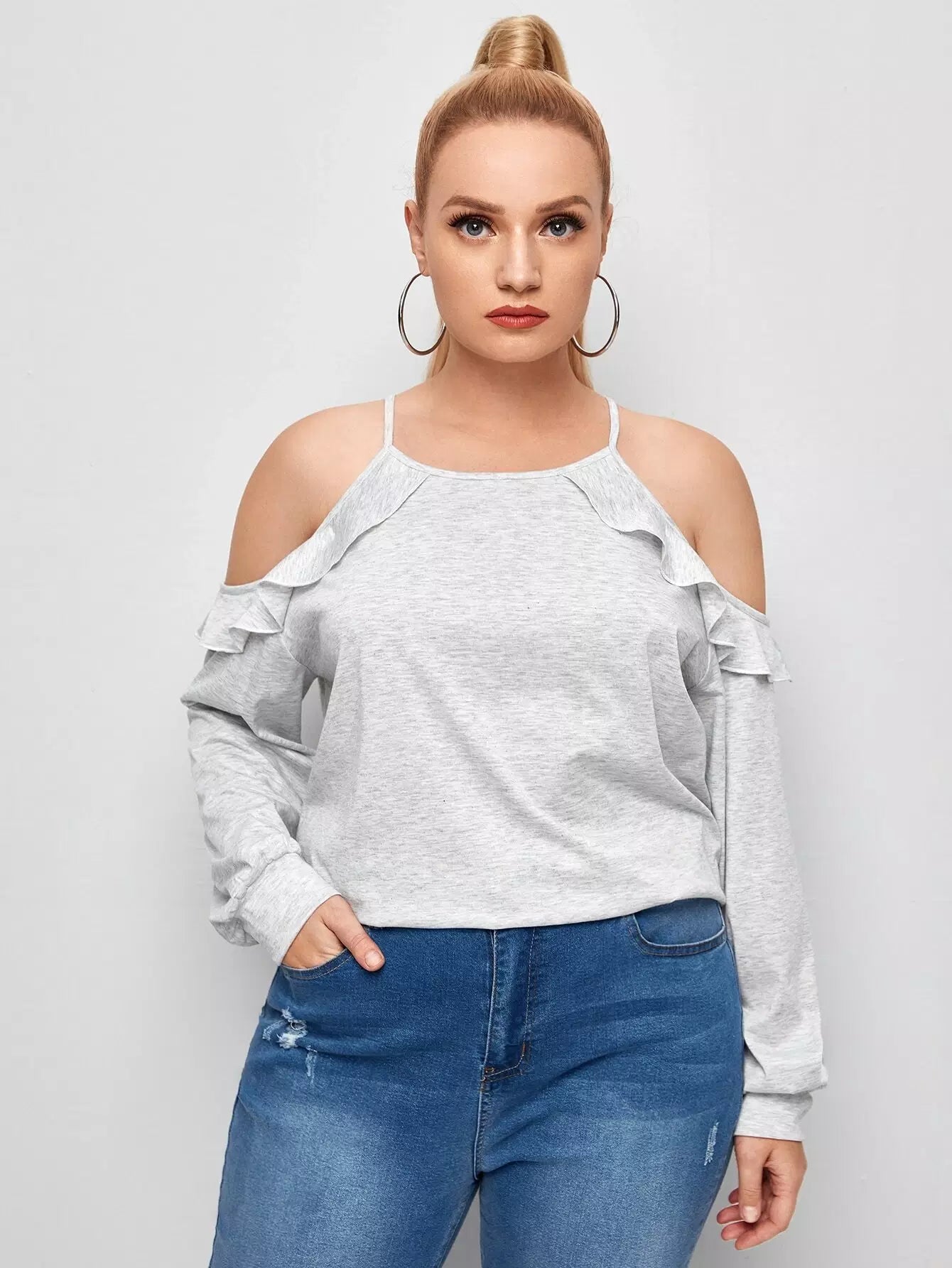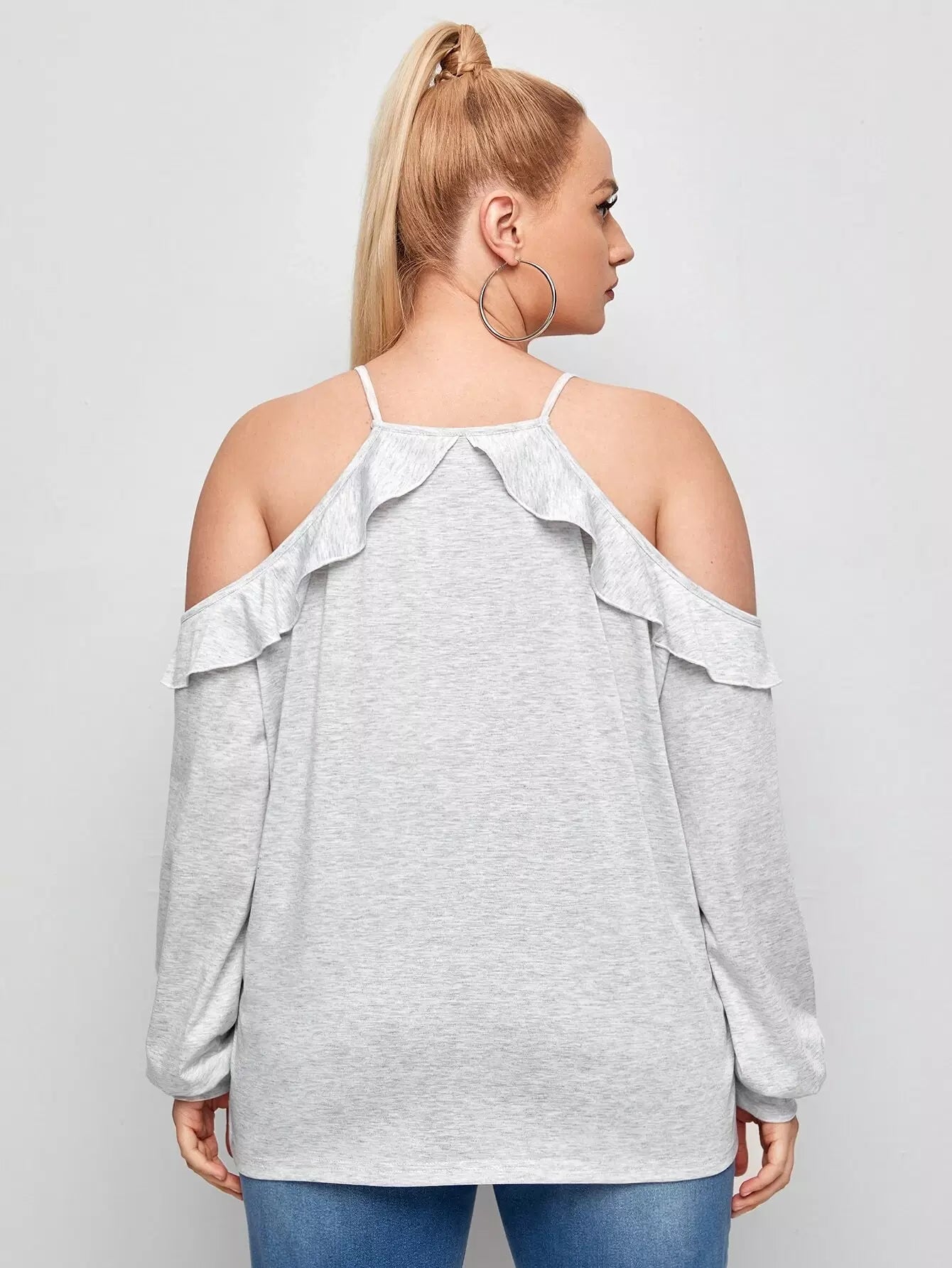 Women - Plus Ruffle Trim Cold Shoulder Tee