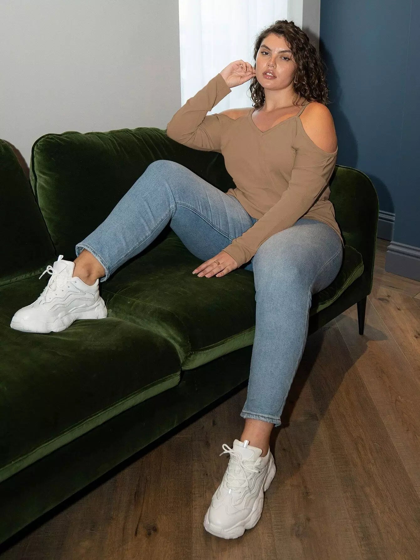 Plus Solid Cold Shoulder Tee