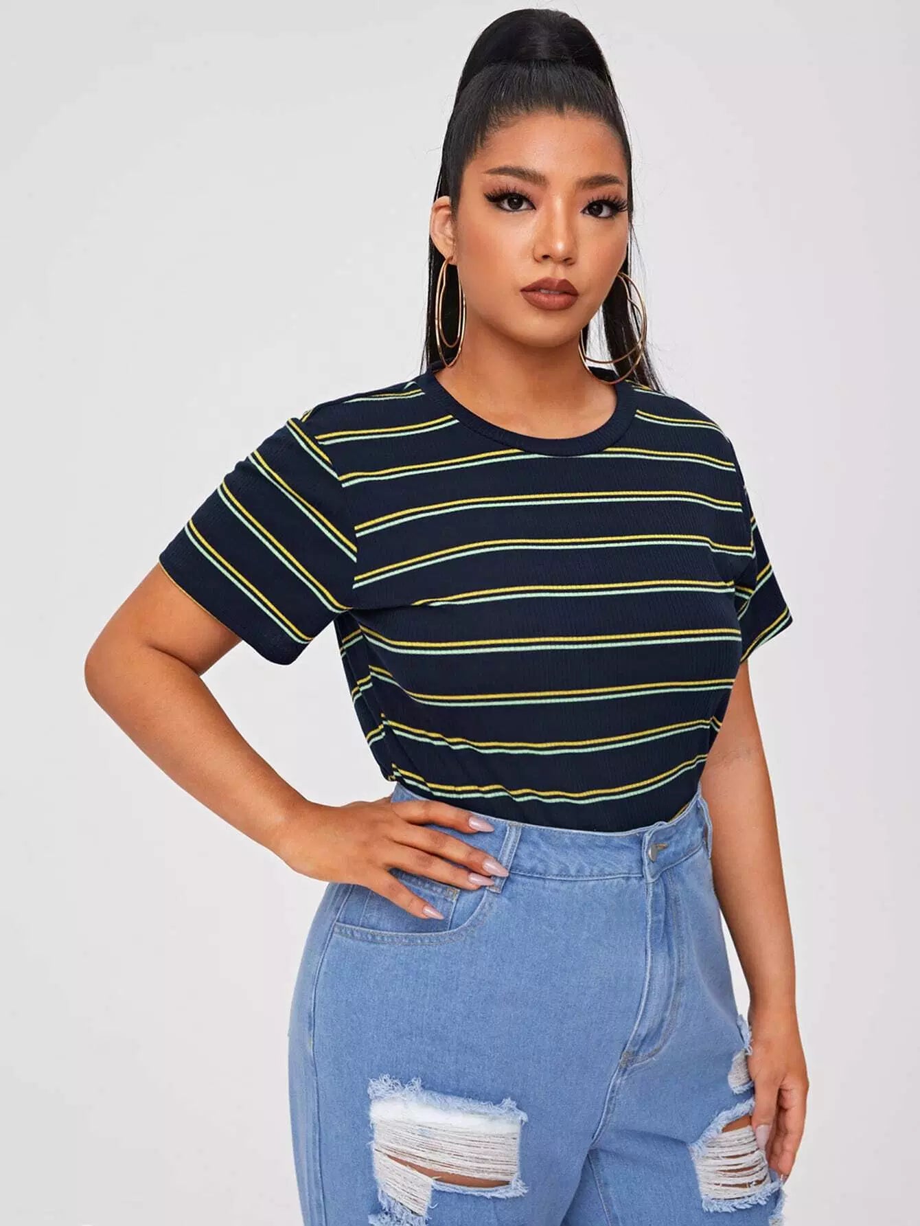 Plus Stripe Short Sleeve Tee