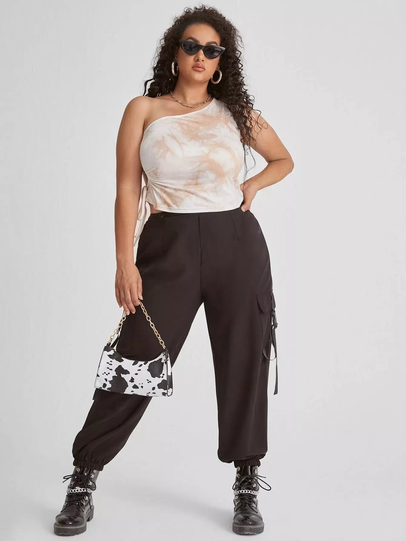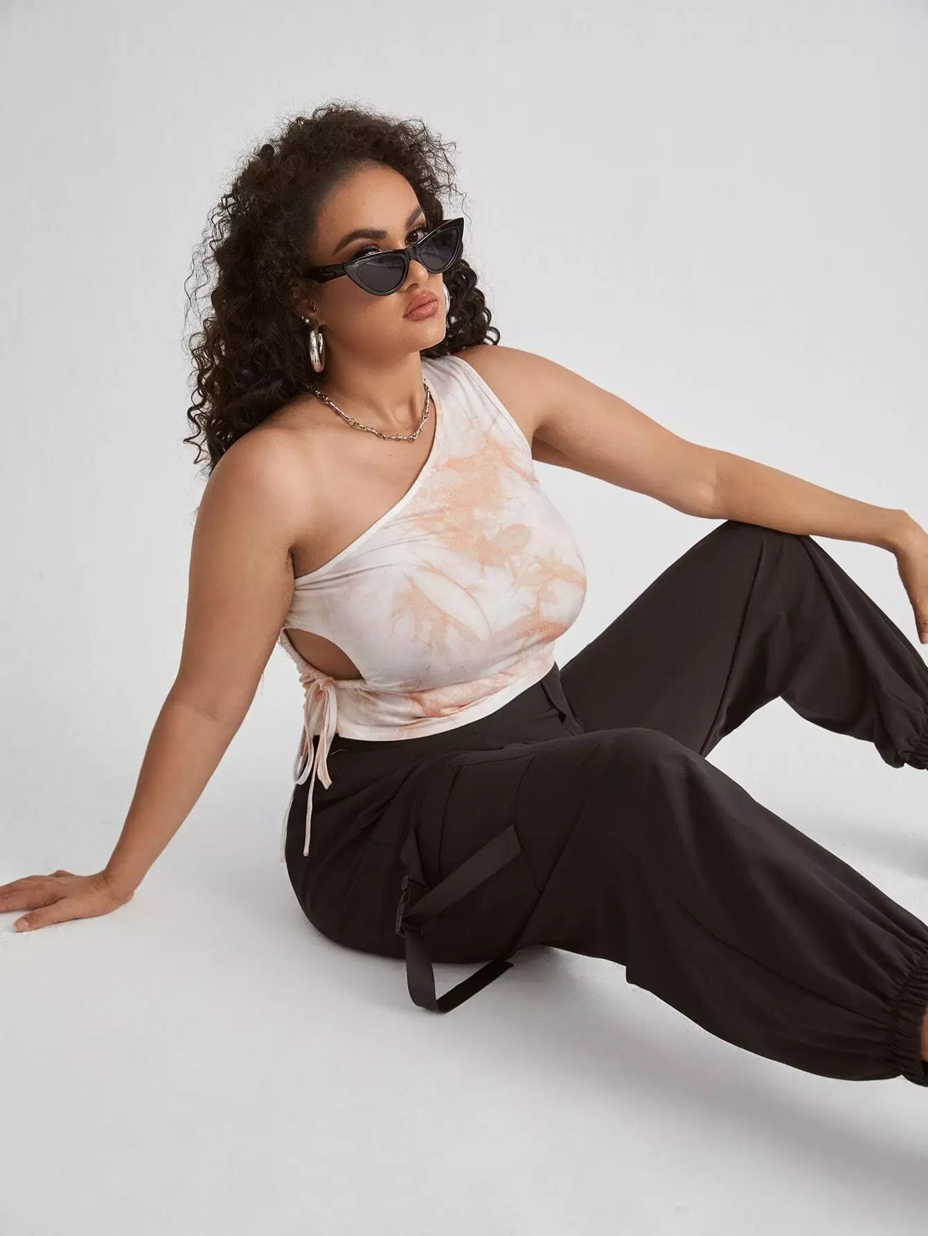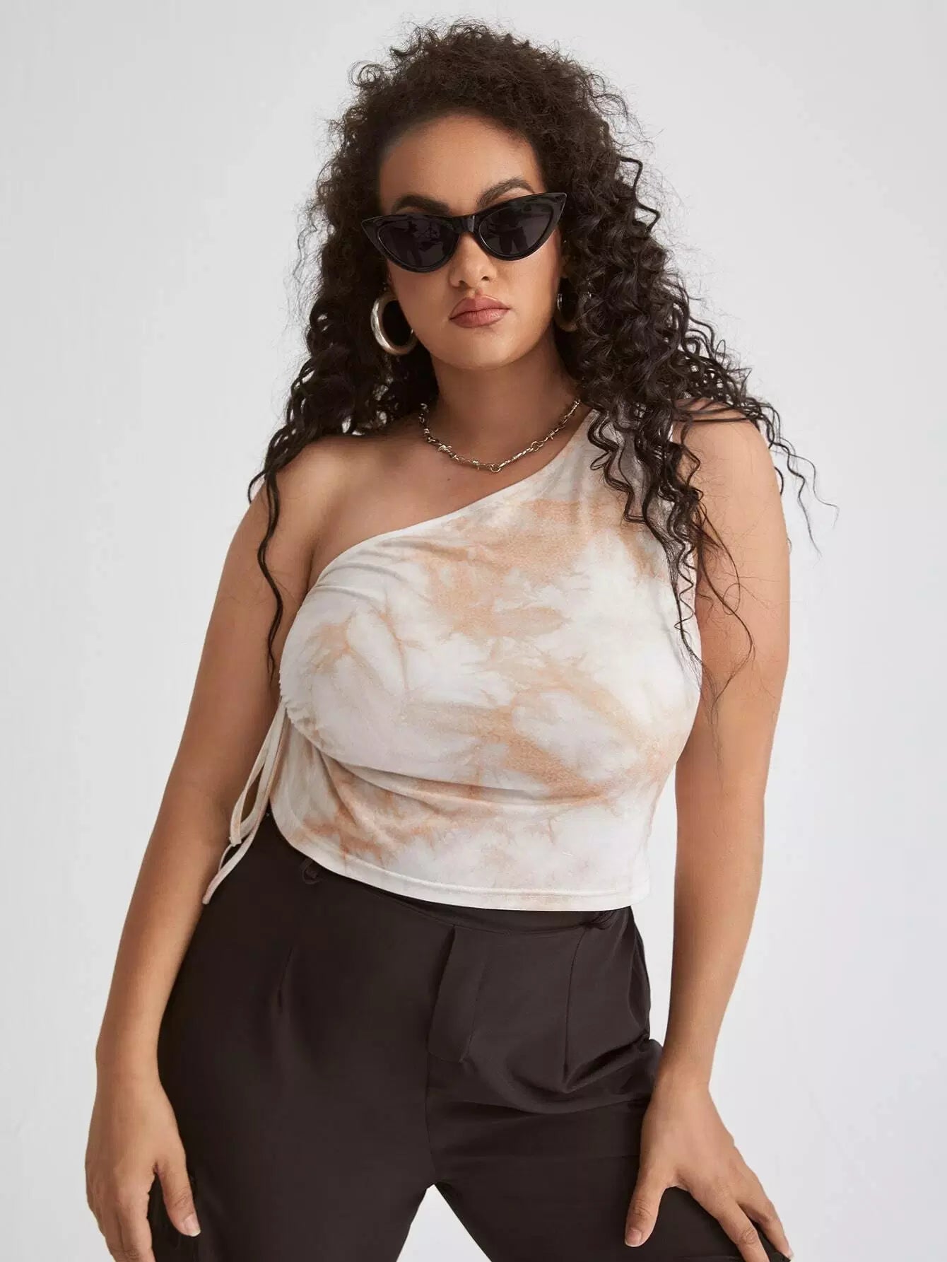 Plus Tie Dye One Shoulder Crop Top