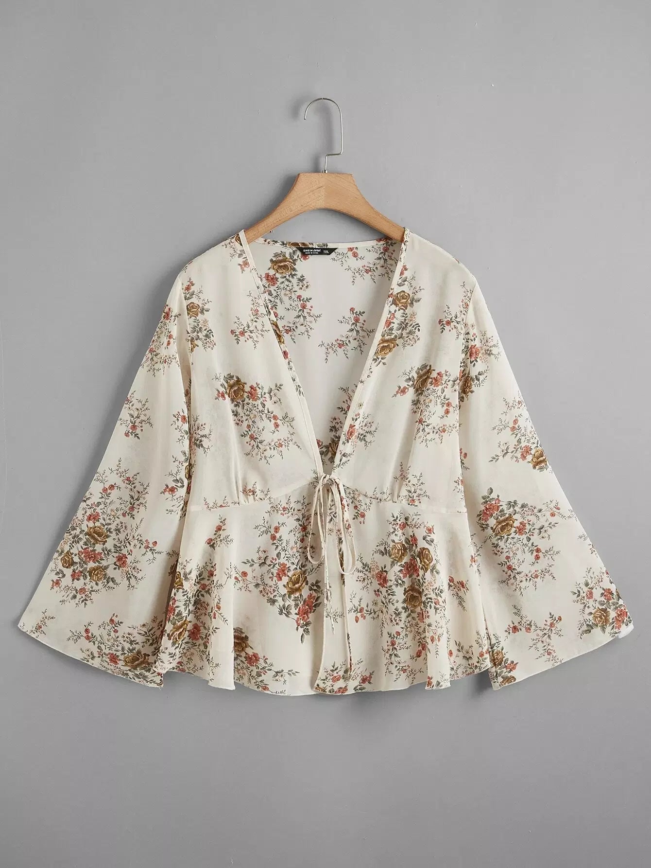 Women - Plus Tie Front Floral Print Top