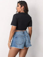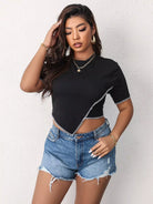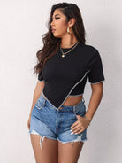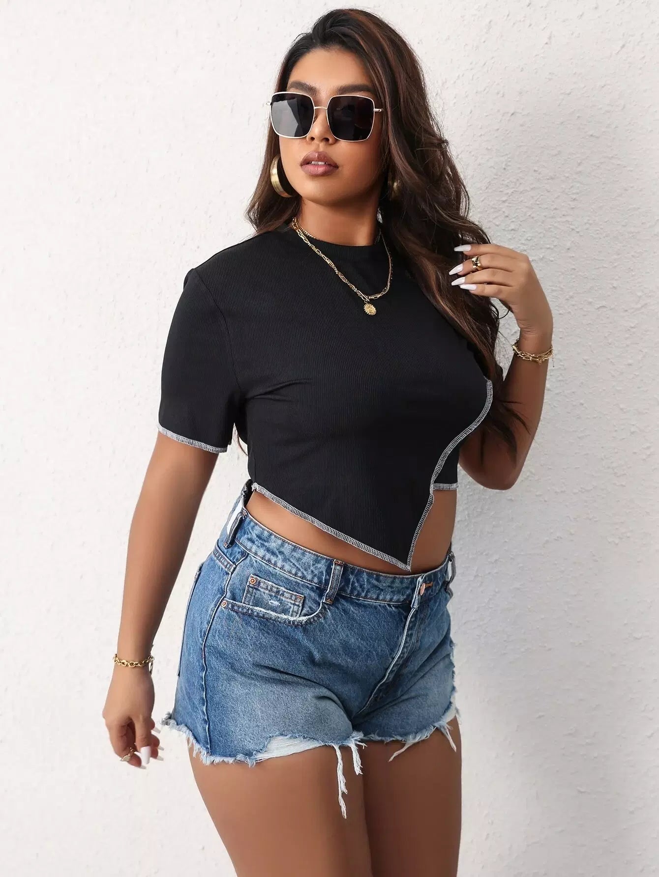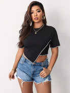 Plus Top-stitching Asymmetrical Hem Crop Tee