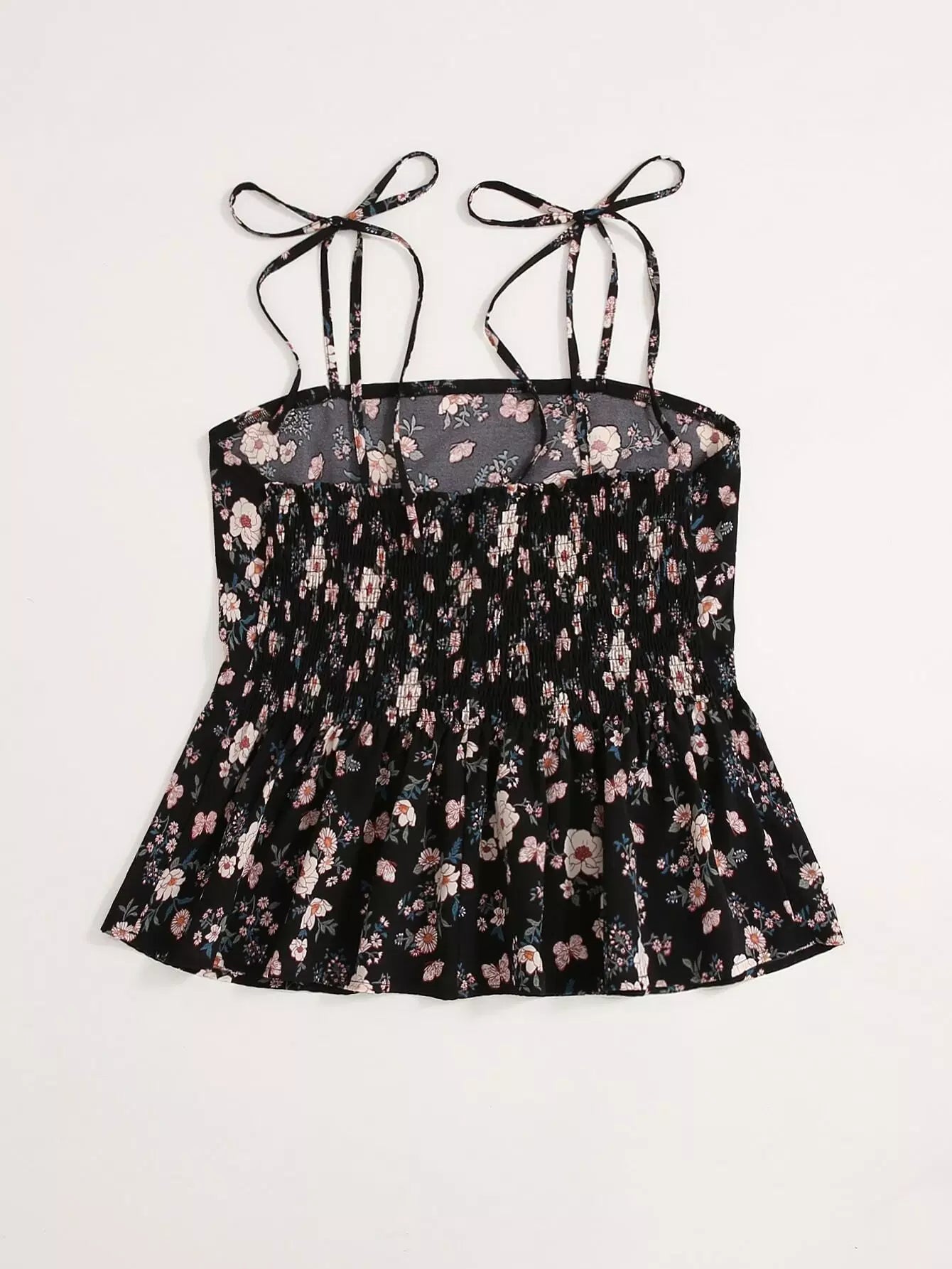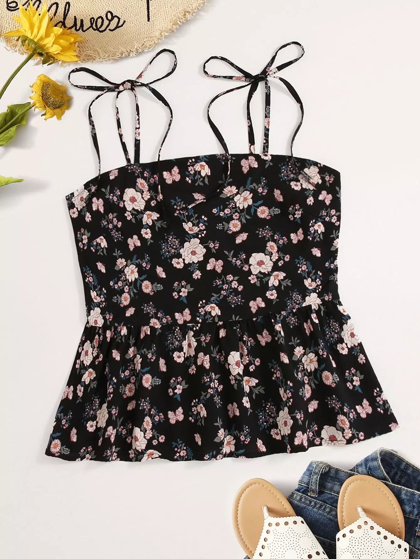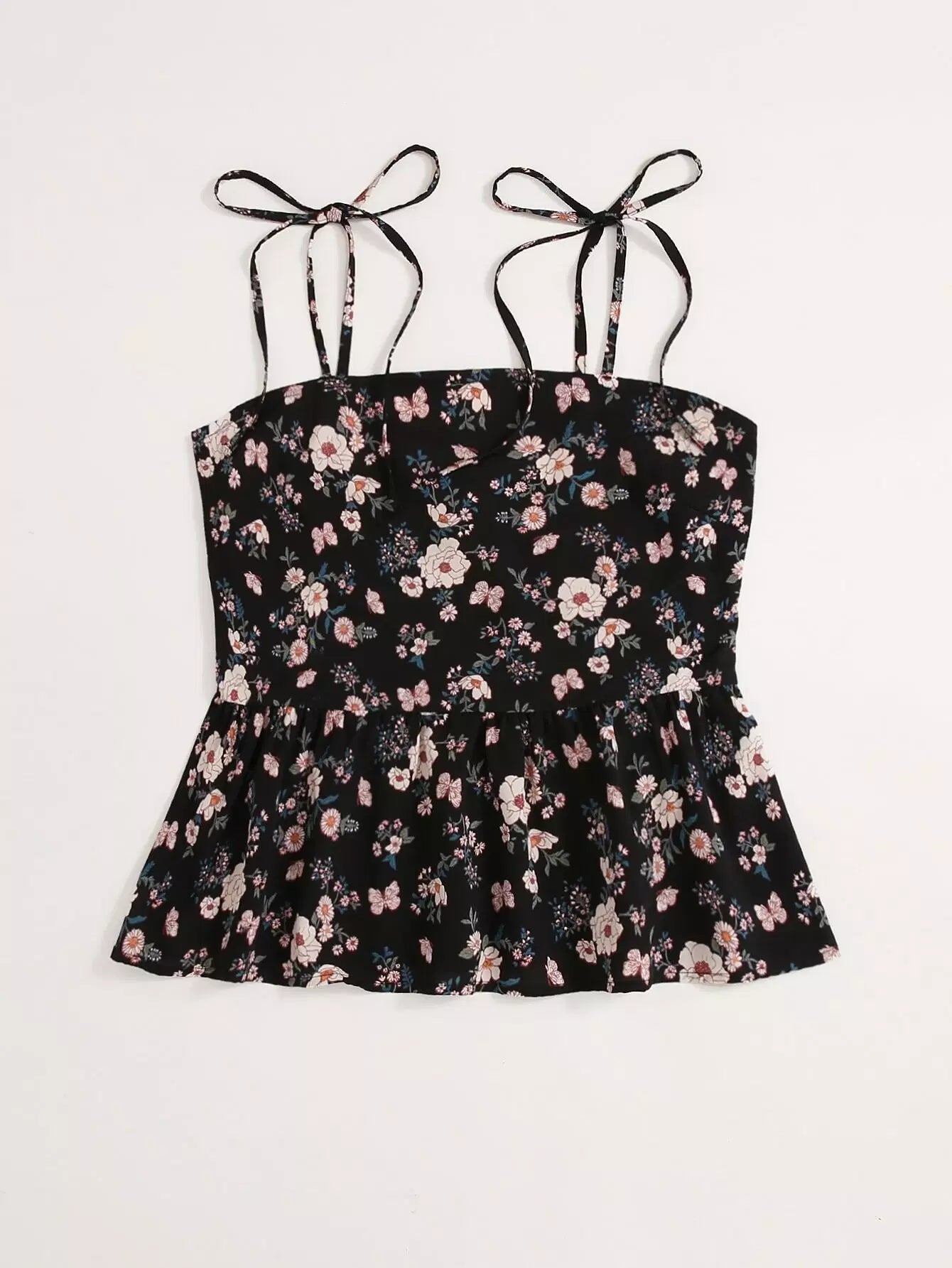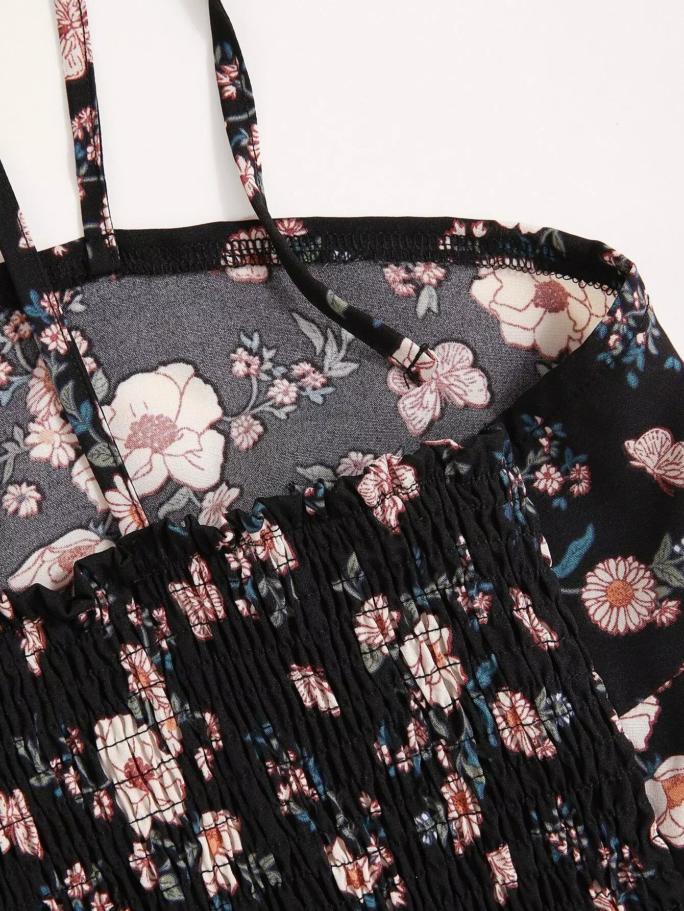 Plus All Over Floral Print Ruffle Hem Crop Cami Top