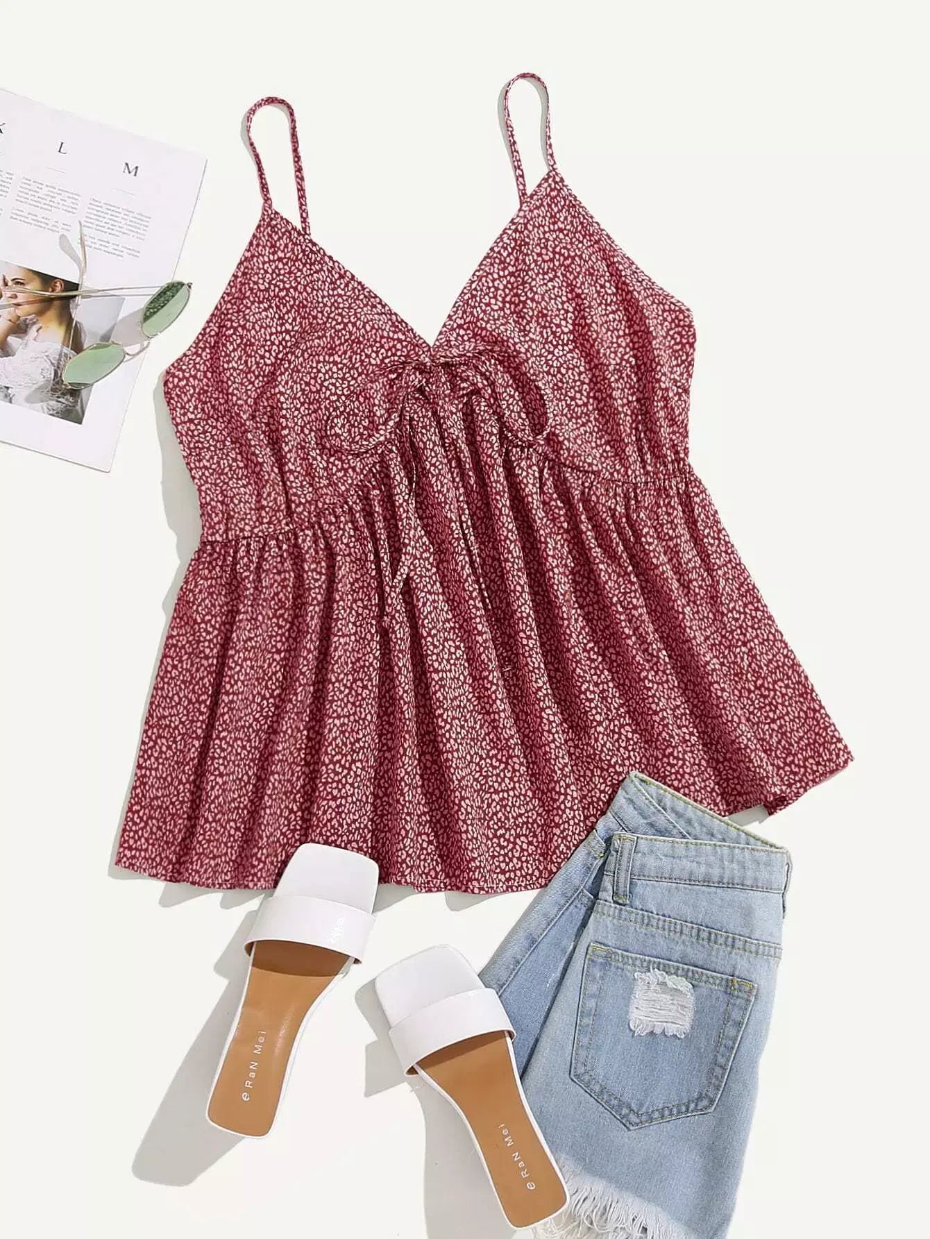 Plus All Over Print Shirred Back Cami Top