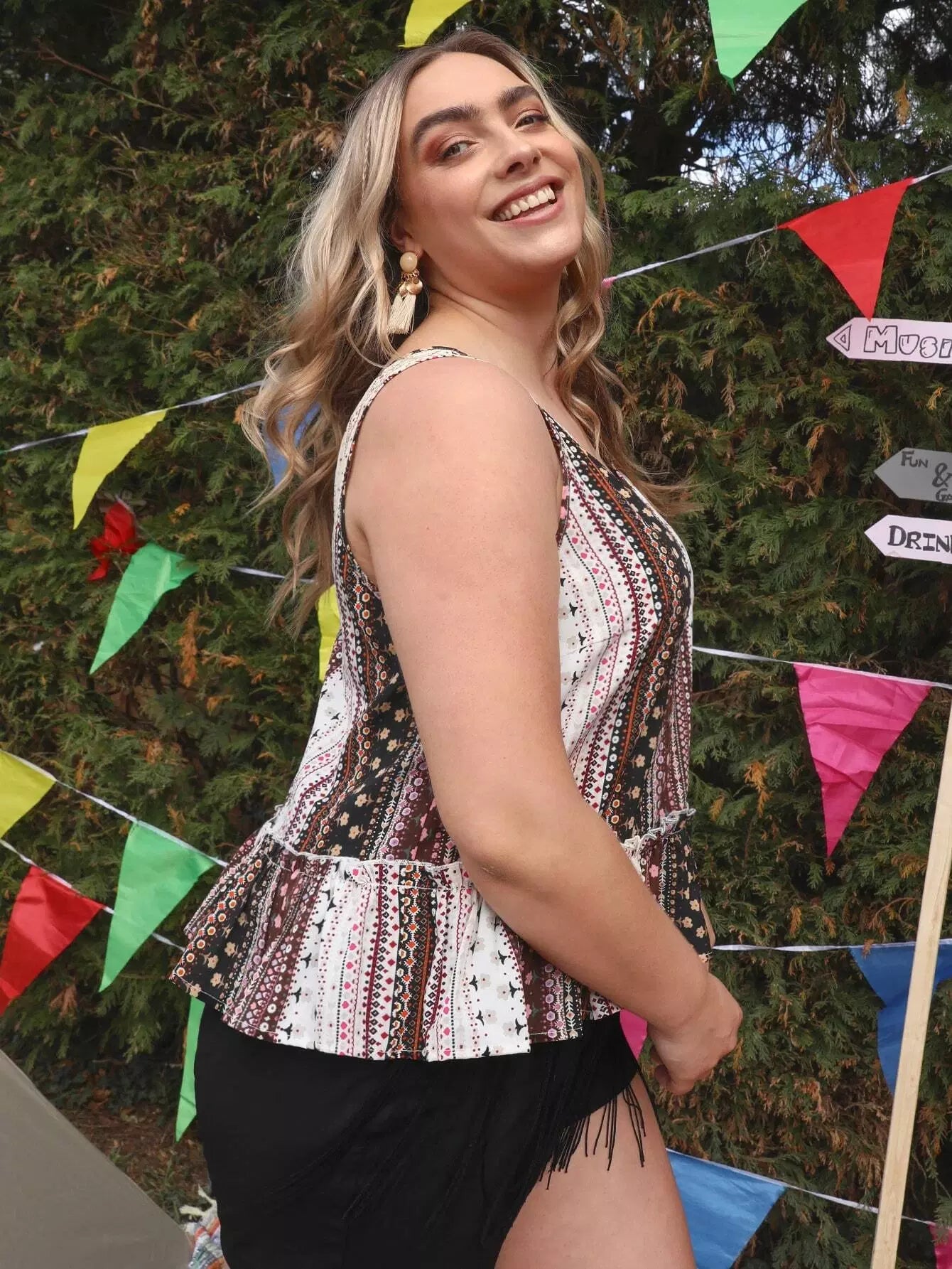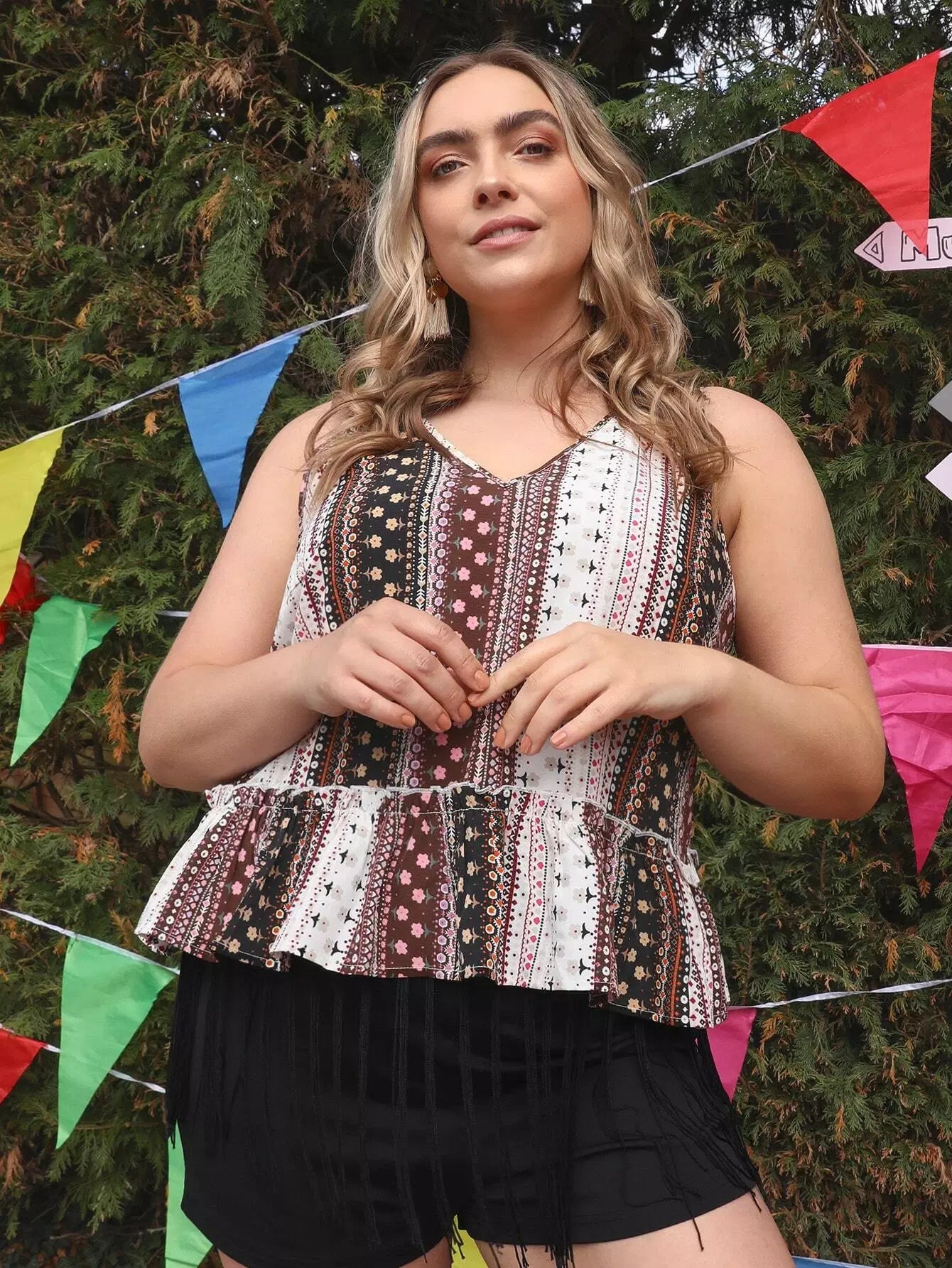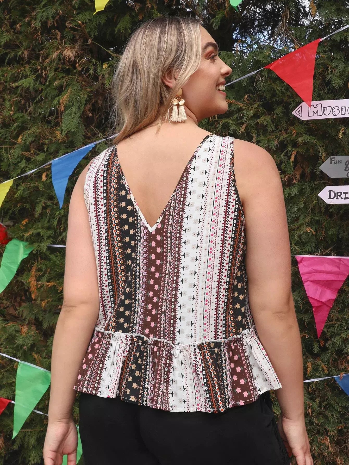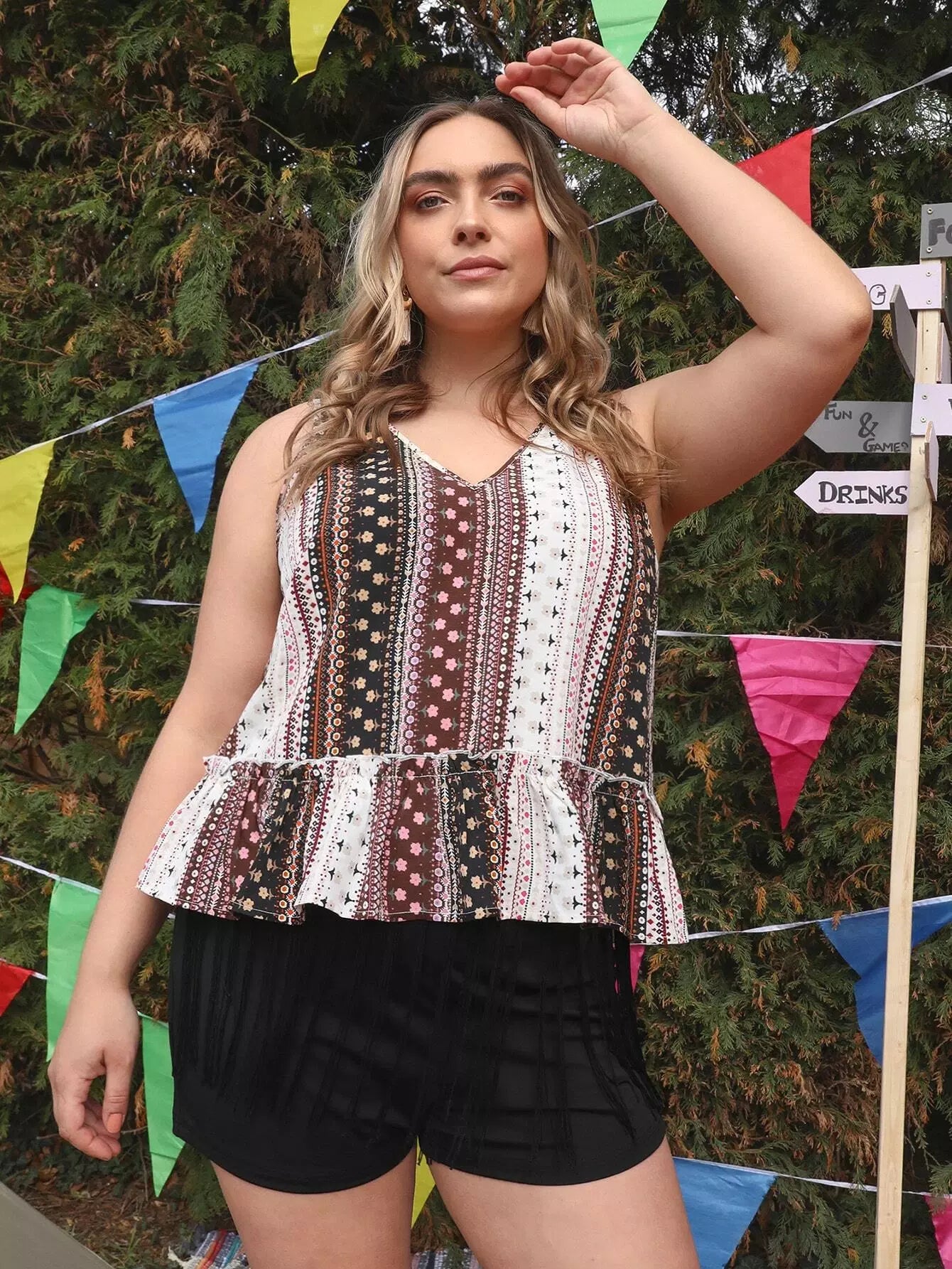 Plus Ditsy Floral Ruffle Hem Tank Top