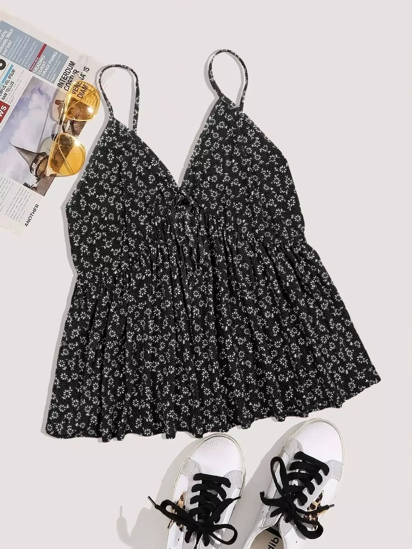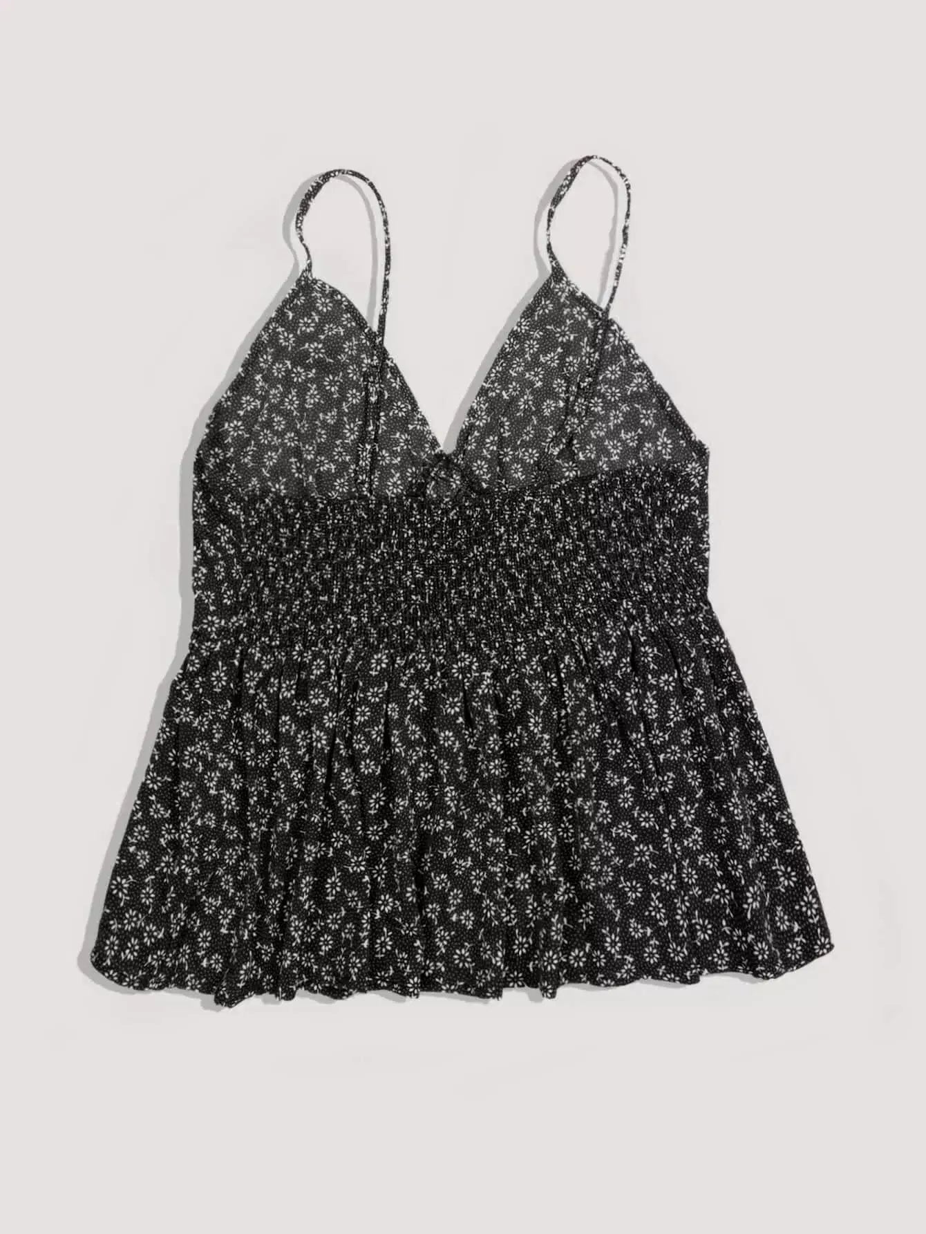 Plus Ditsy Floral Shirred Chiffon Cami Top