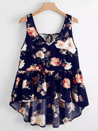 Plus Floral Print High Low Tank Top