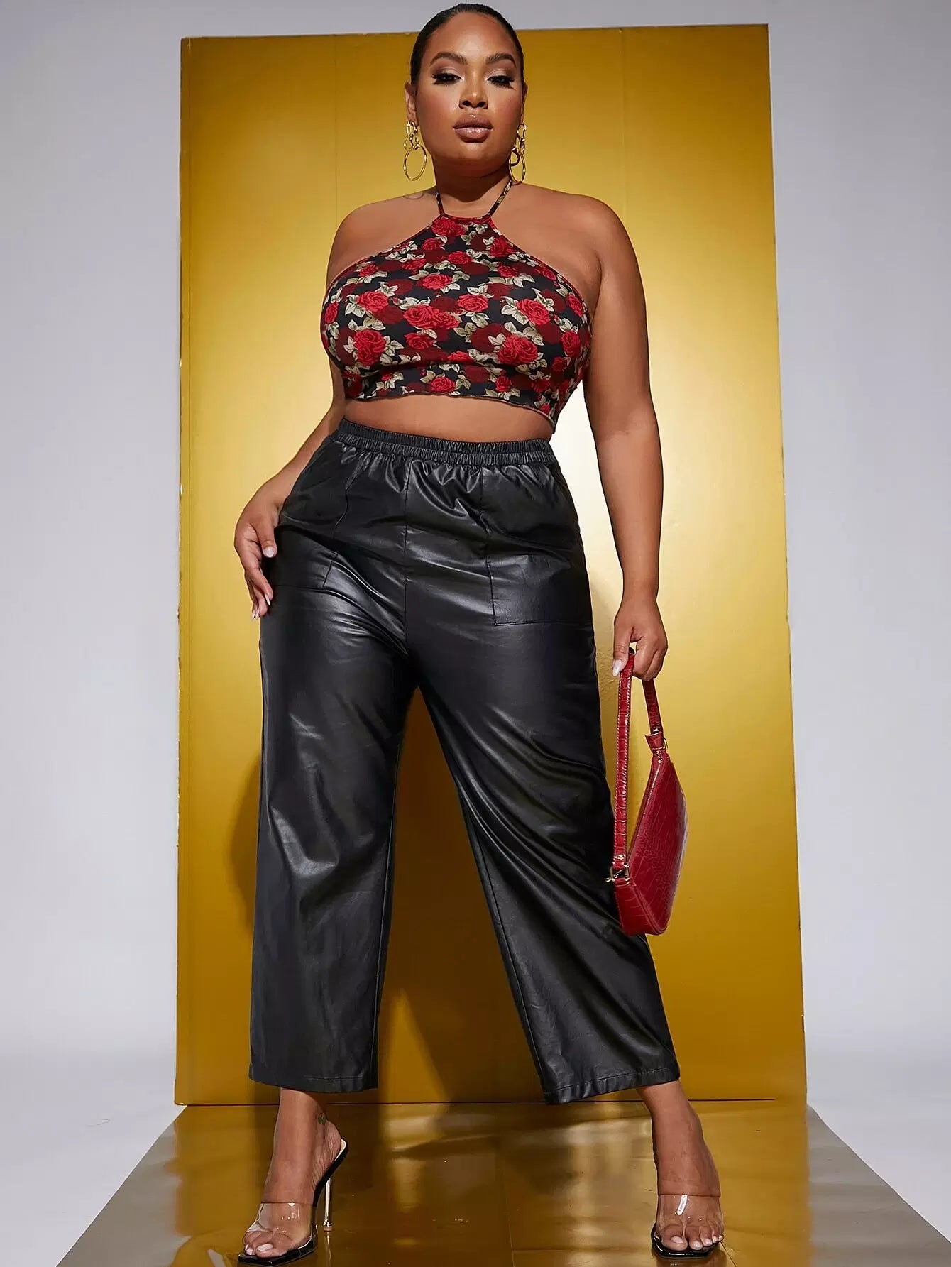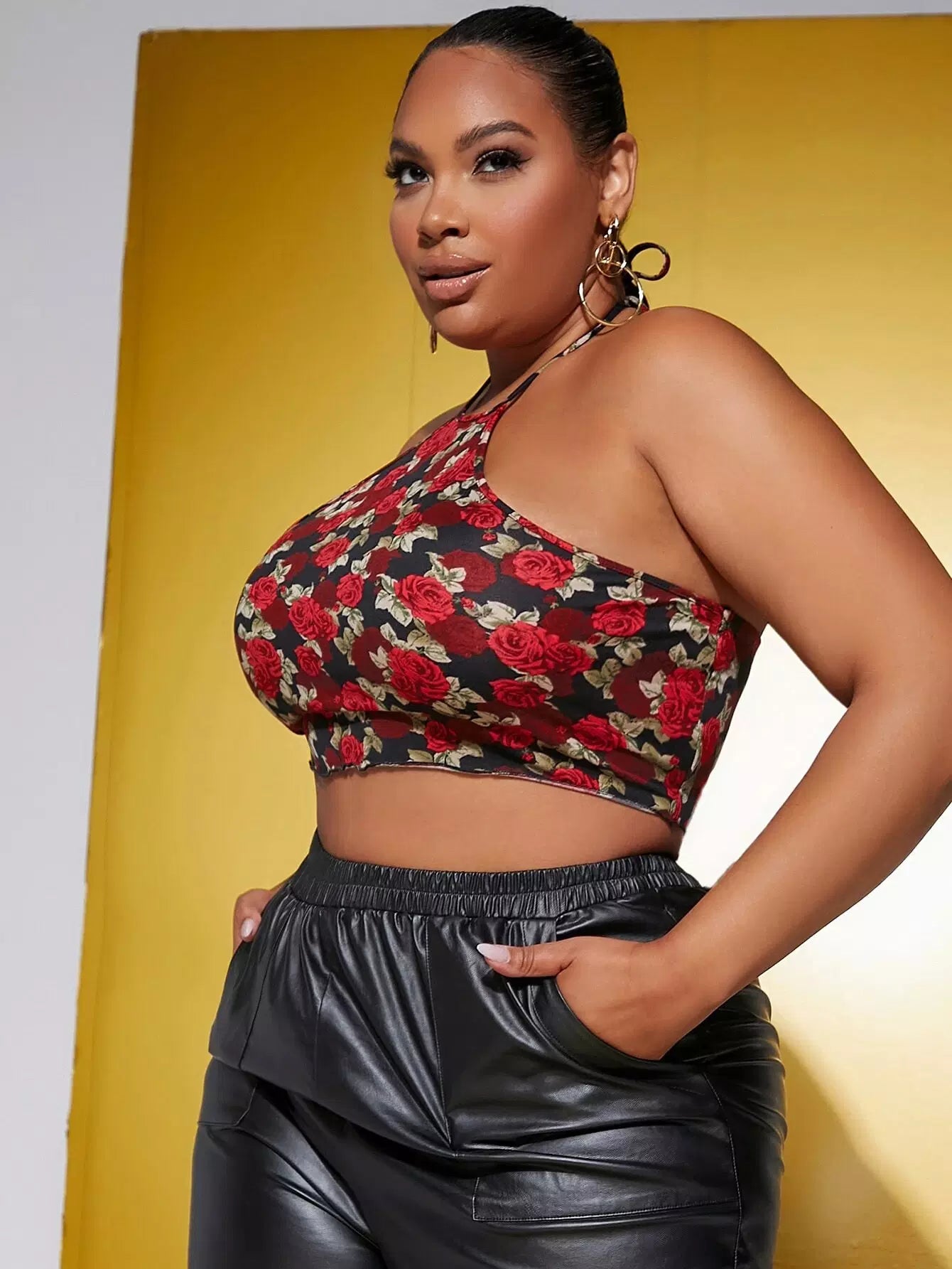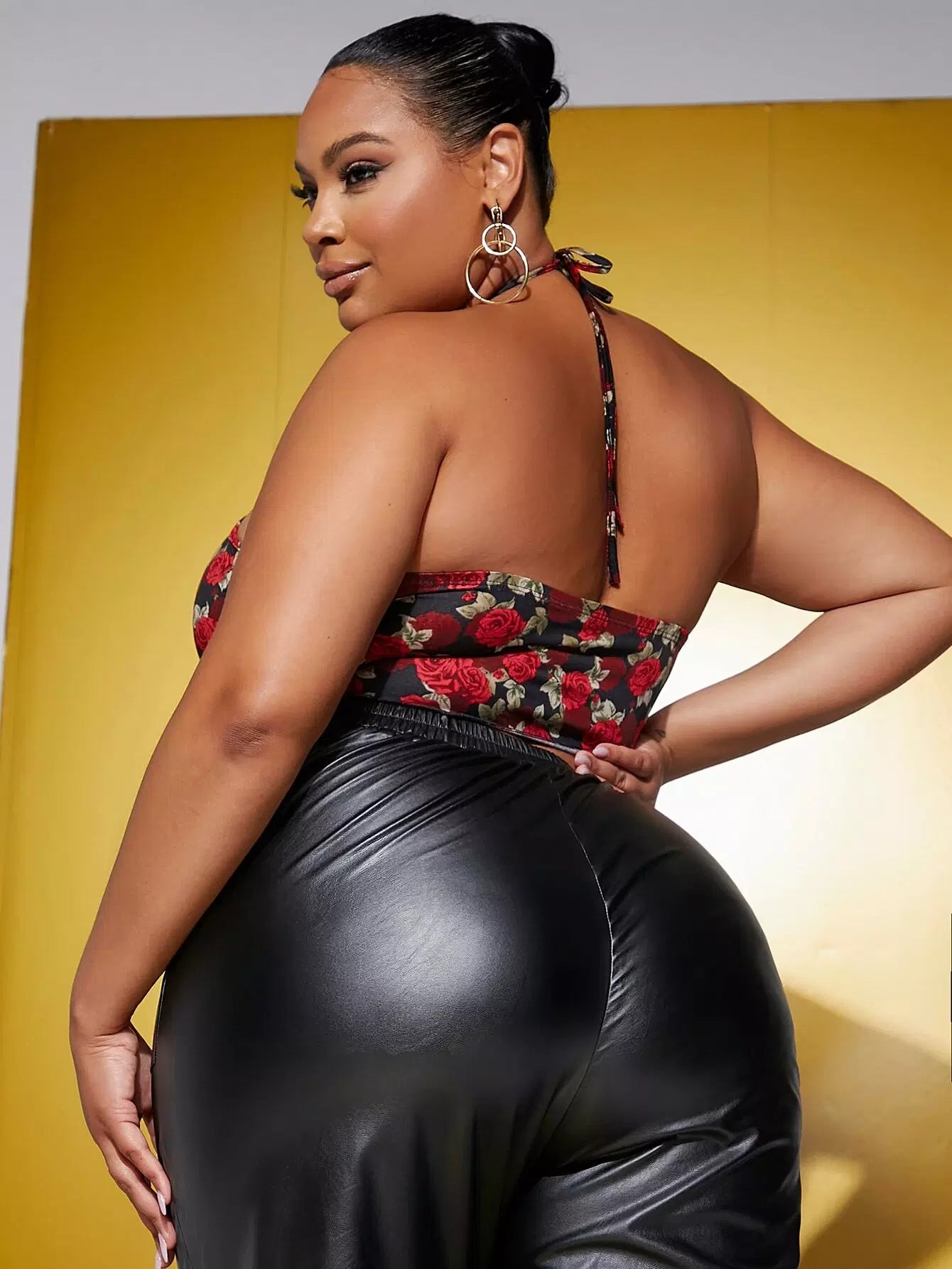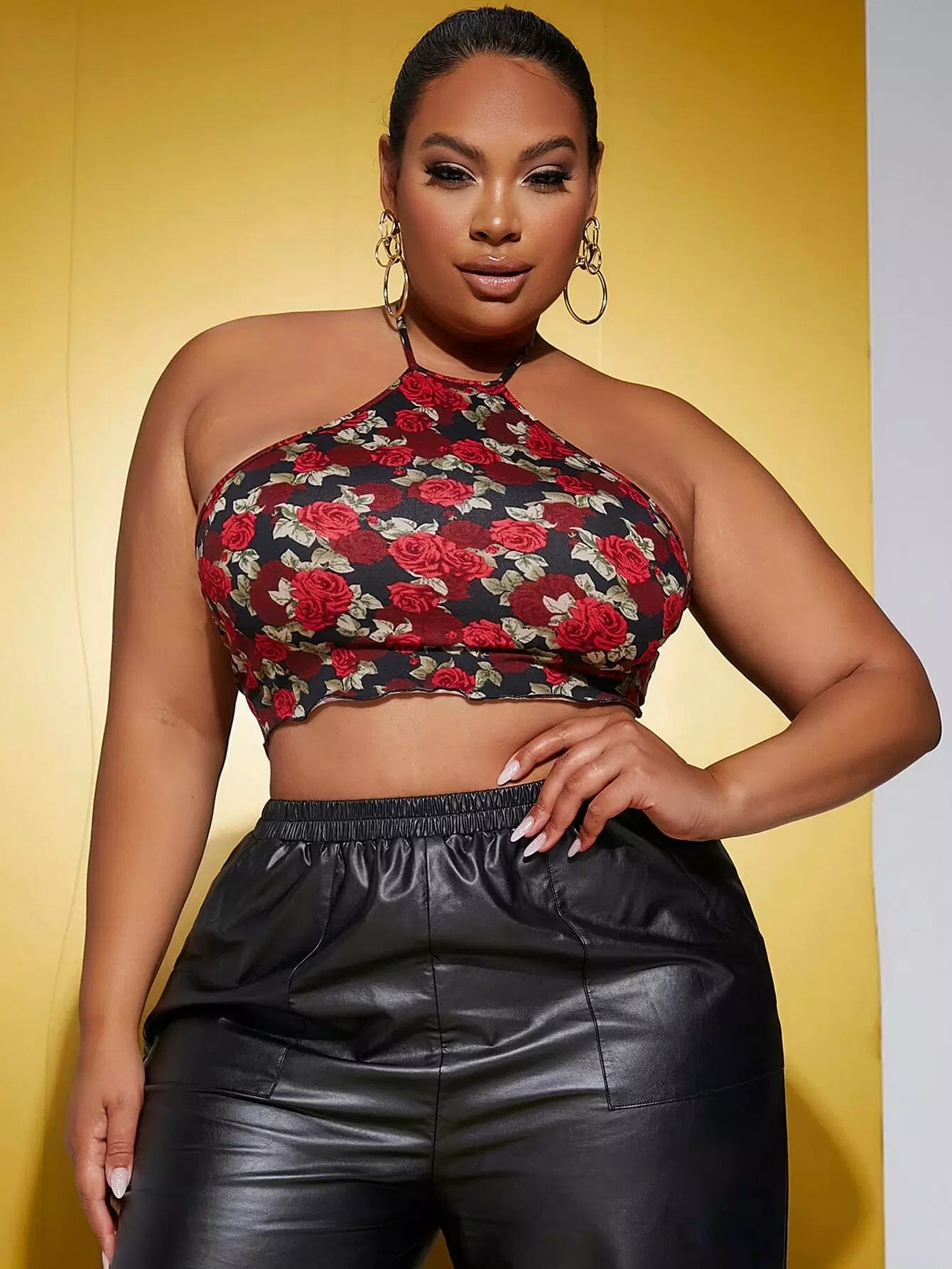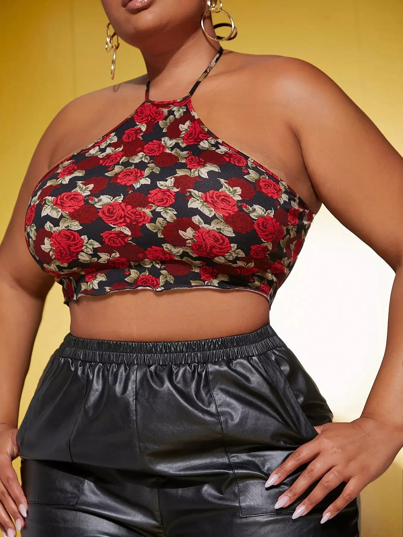 Plus Floral Print Tie Back Halter Top
