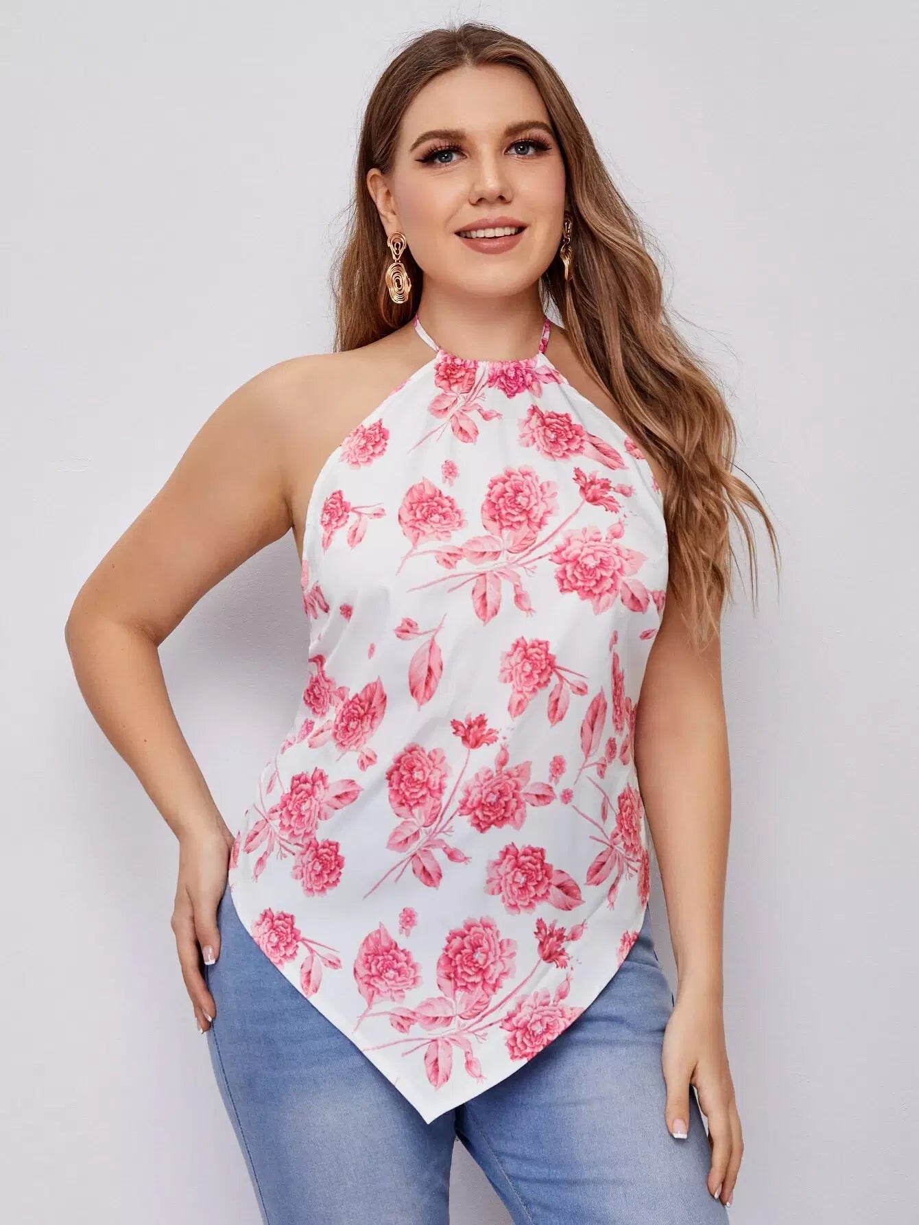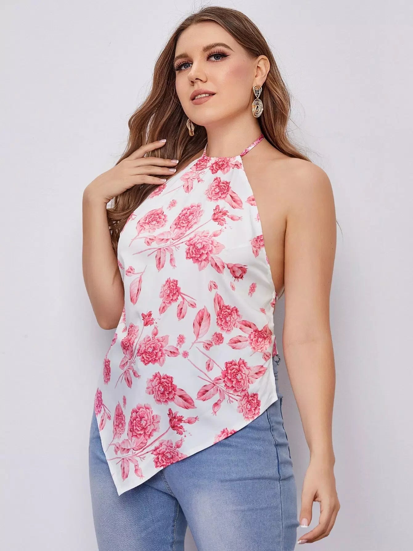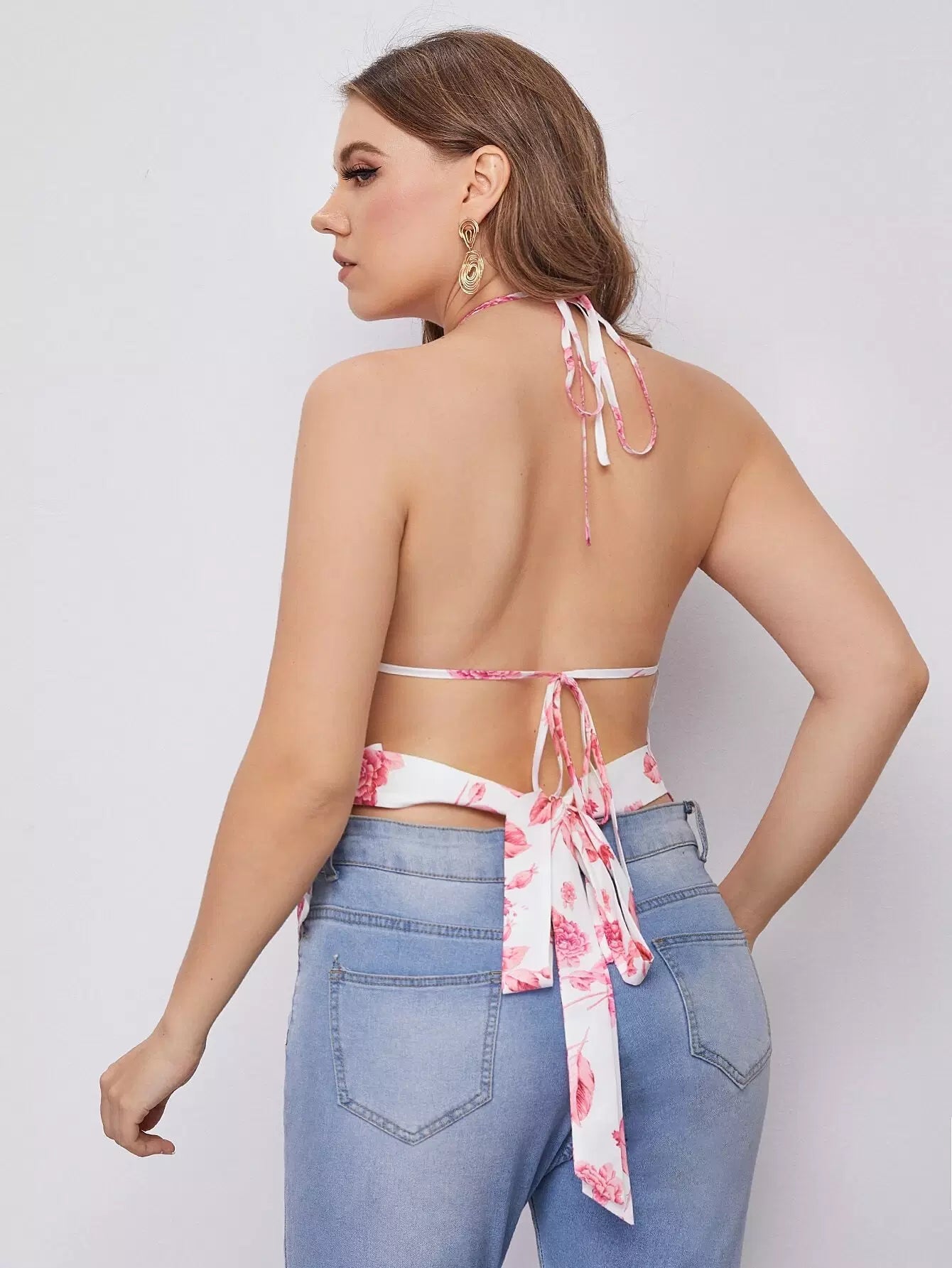 Plus Floral Print Tie Backless Halter Top