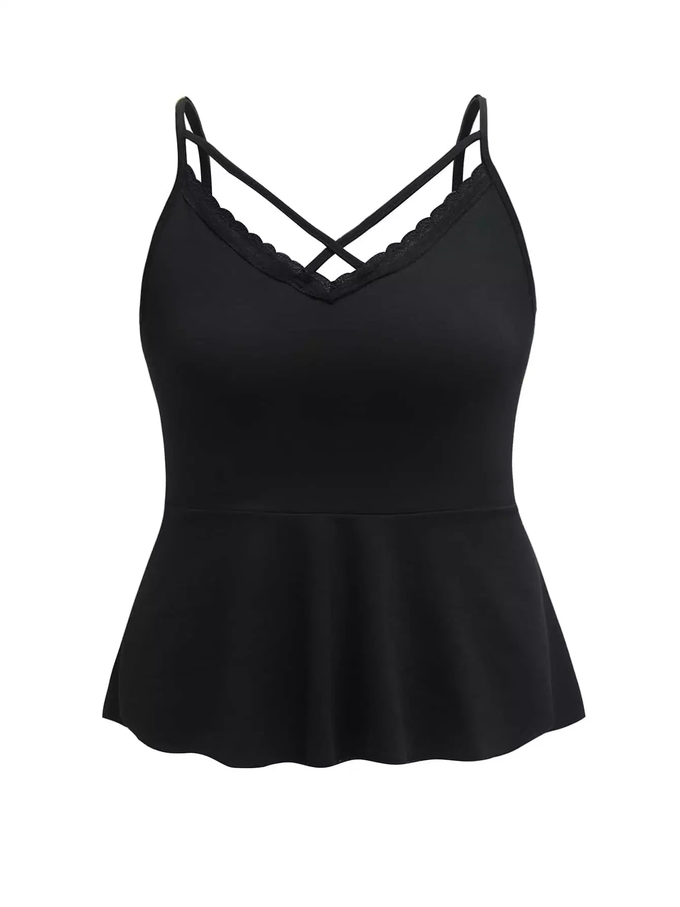 Plus Lace Trim Crisscross Peplum Hem Cami Top