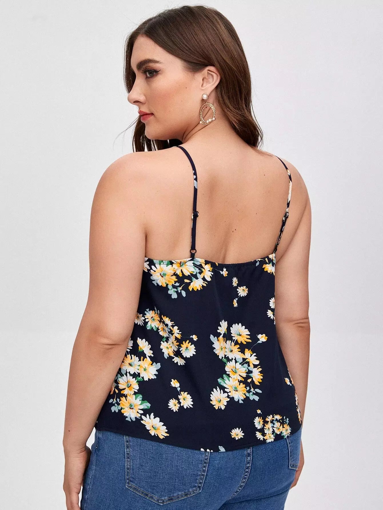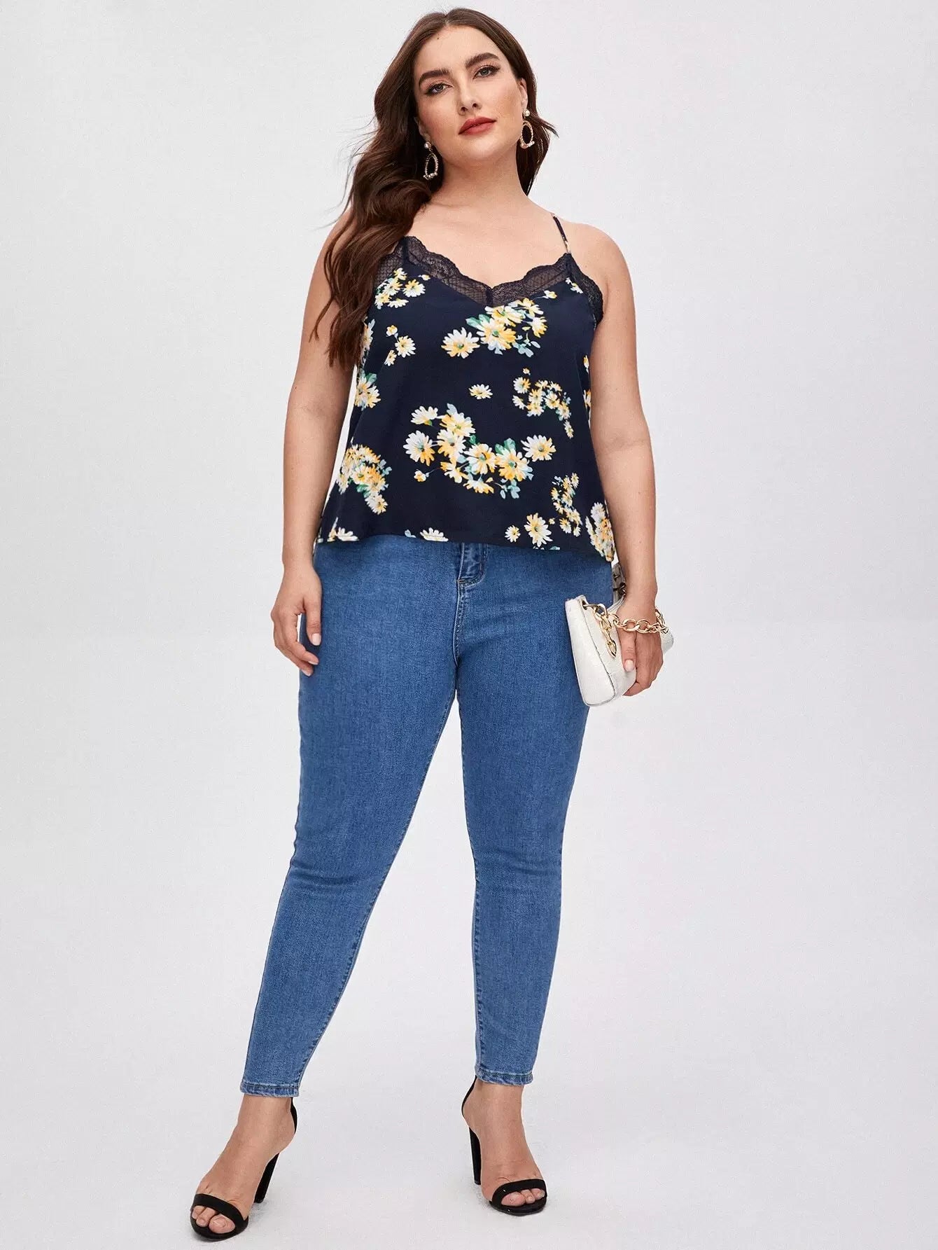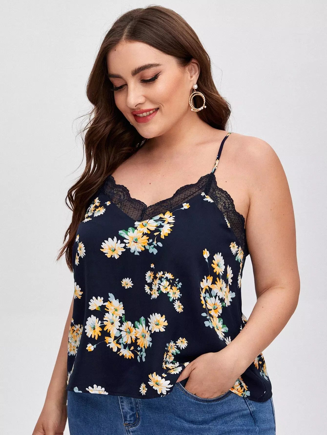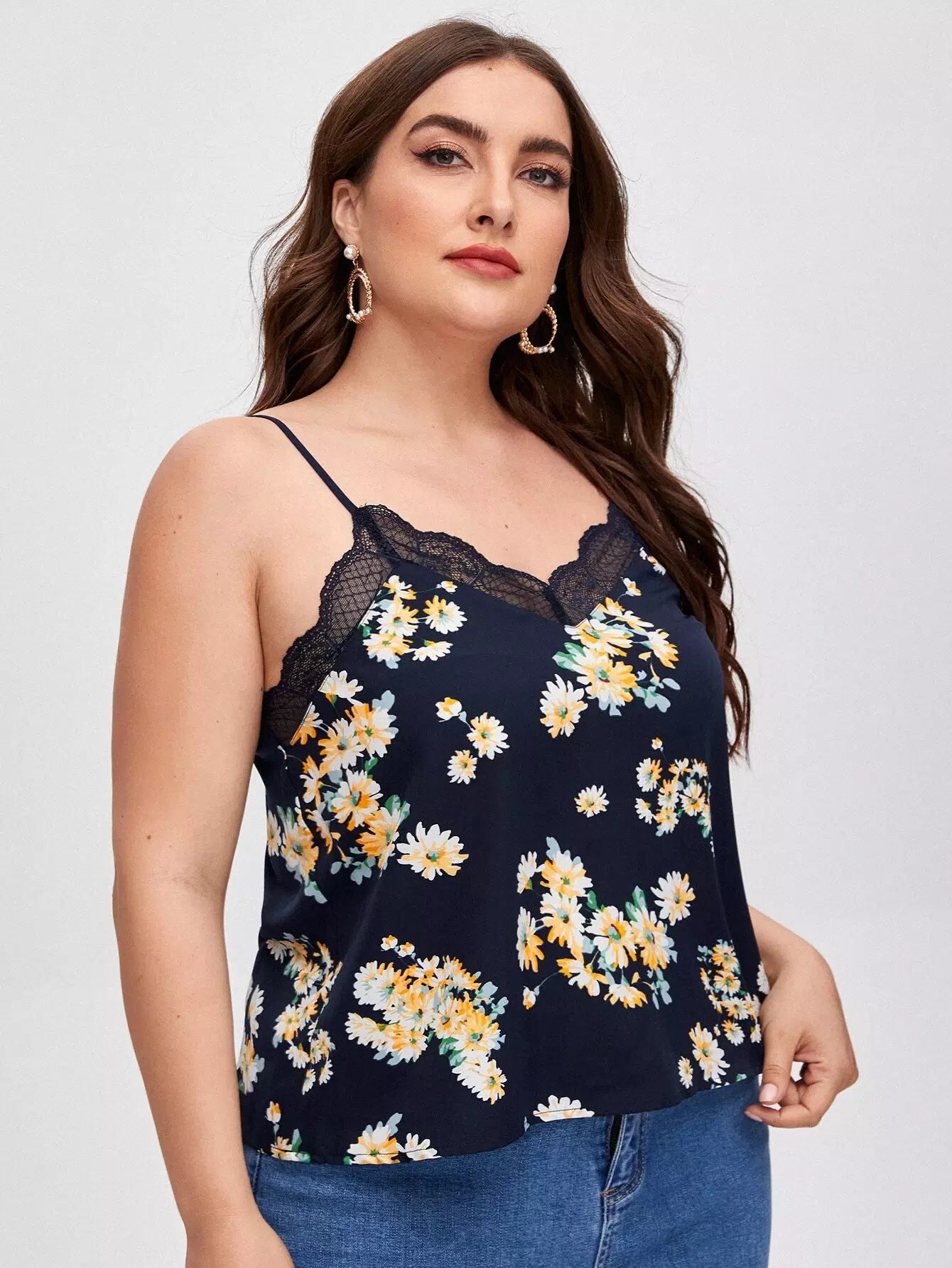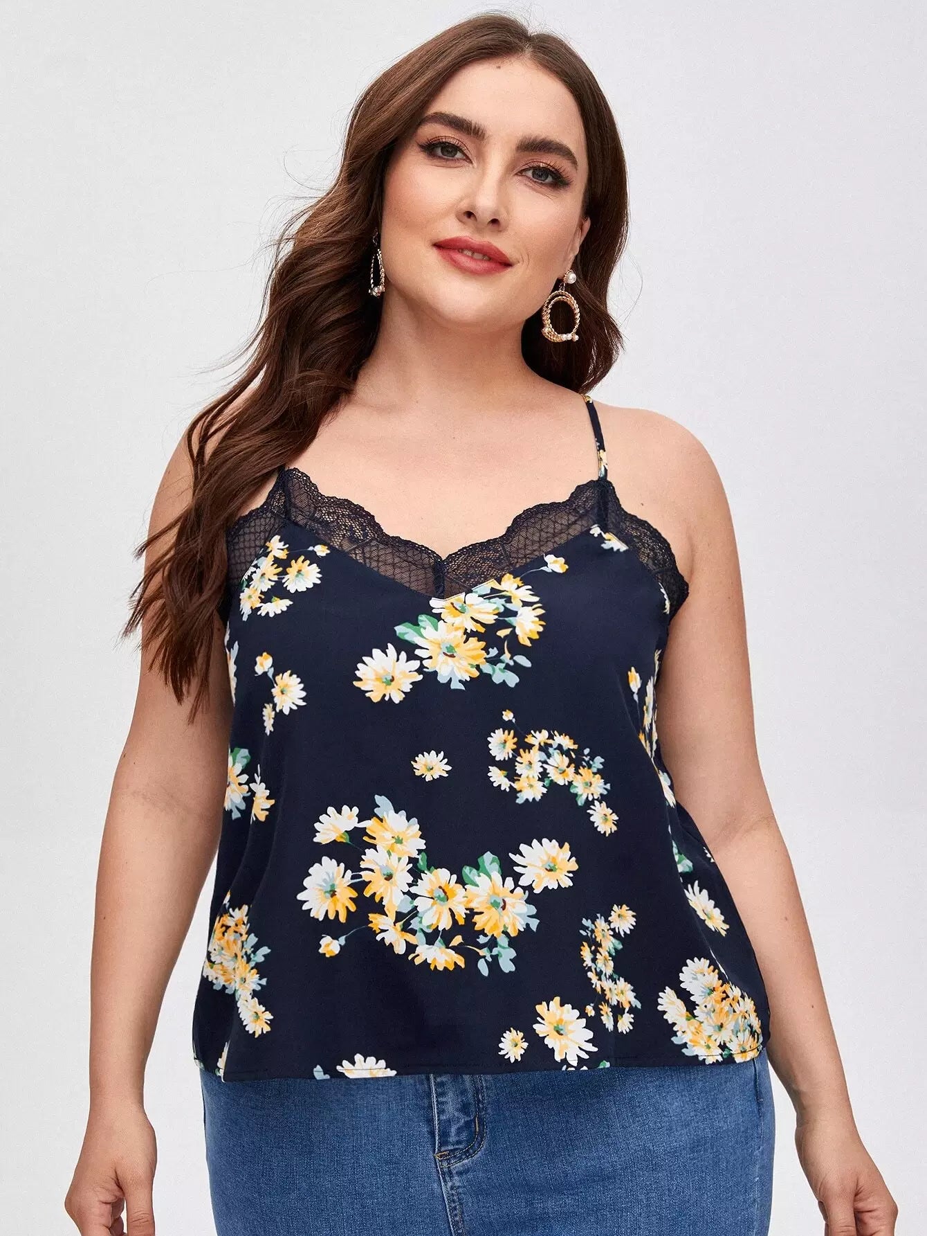 Plus Lace Trim Floral Cami Top