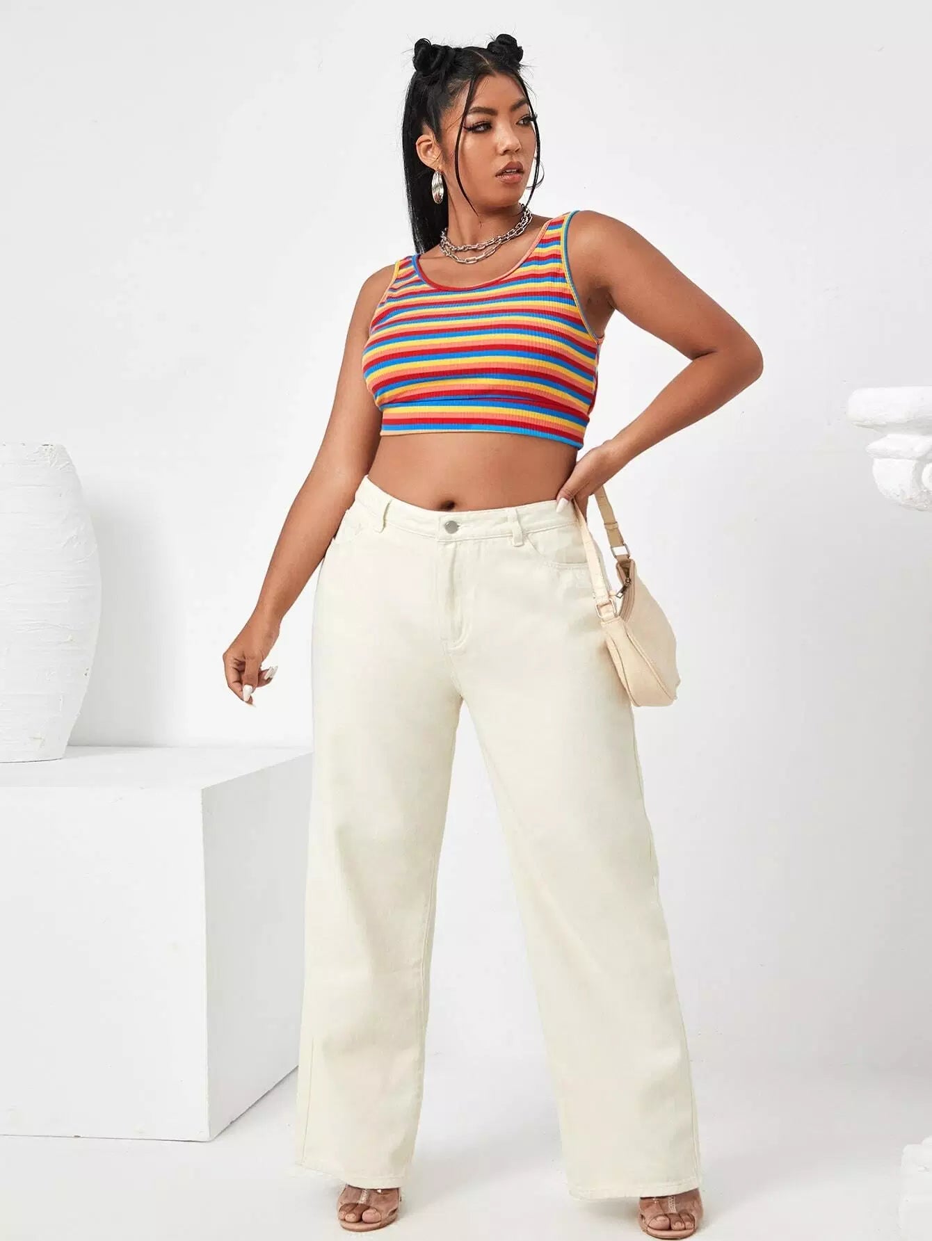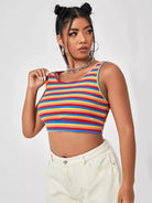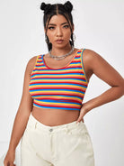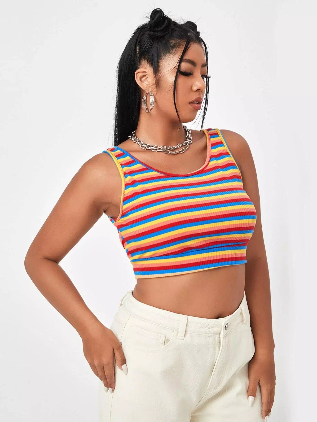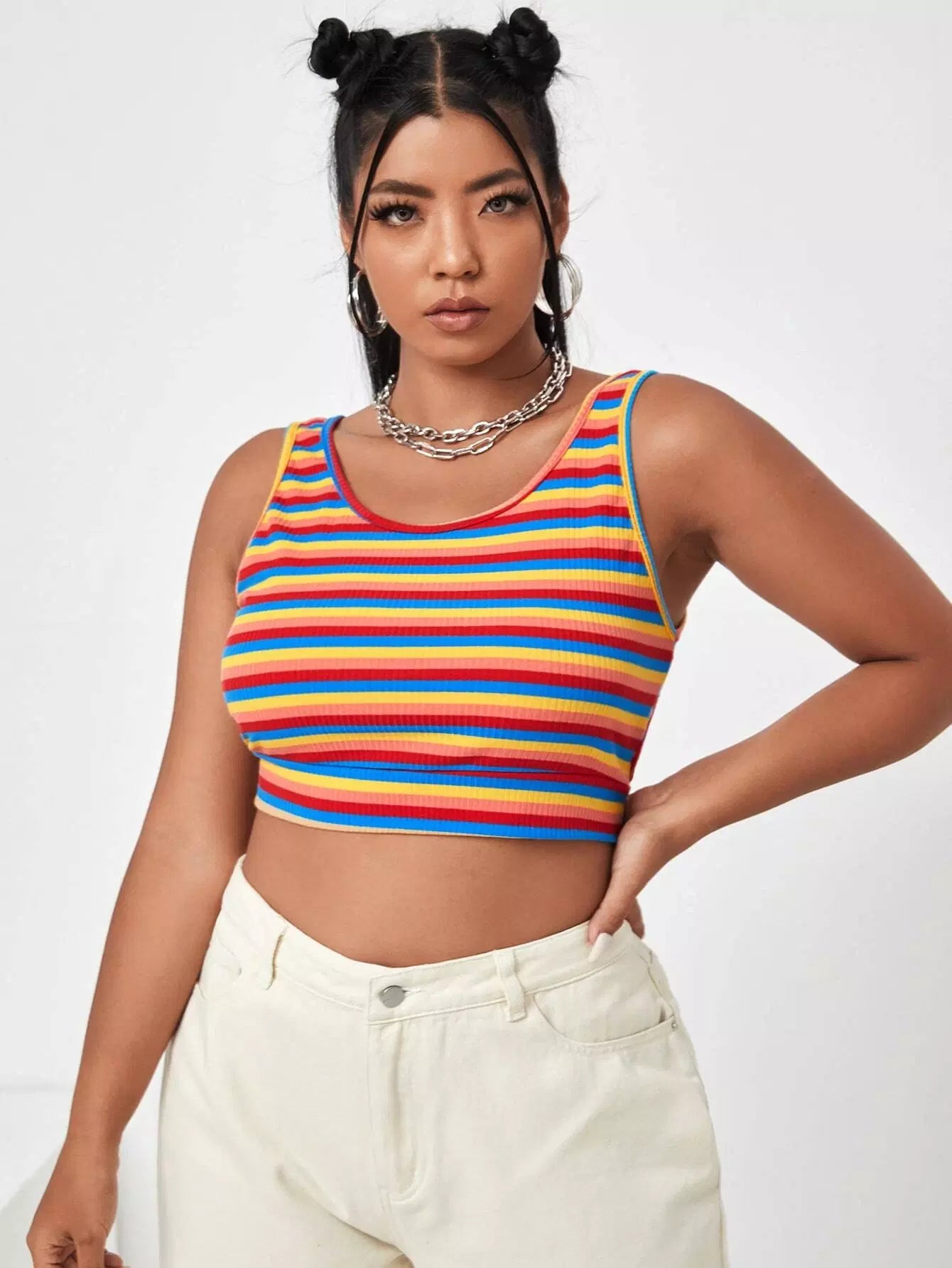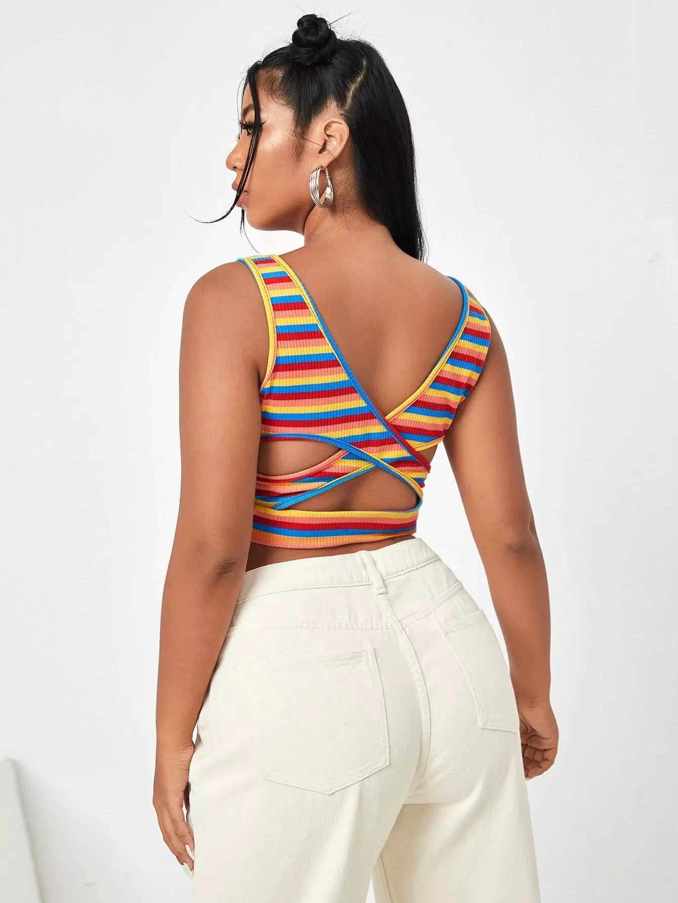Plus Rainbow Stripe Criss Cross Back Crop Tank Top