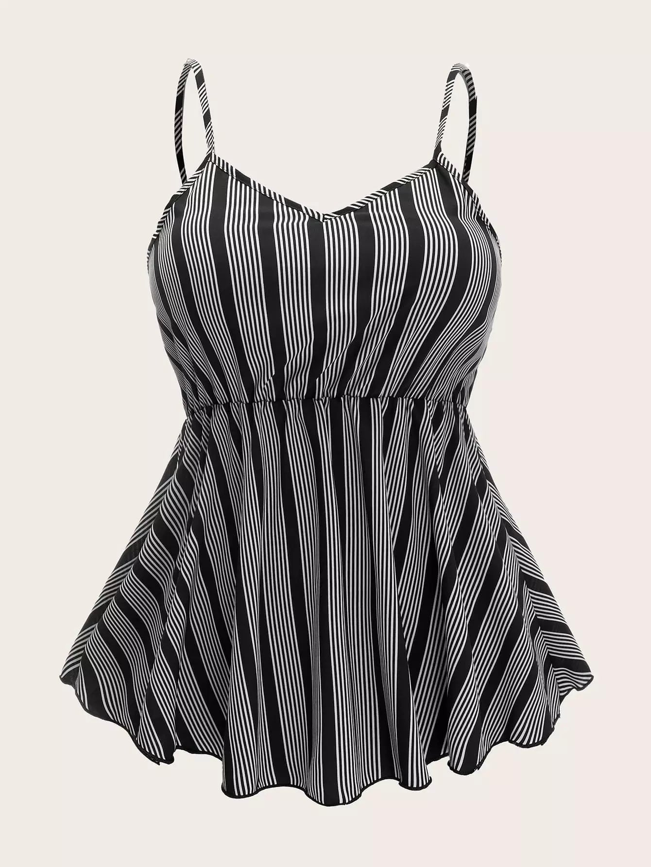 Plus Striped Ruffle Hem Cami Top